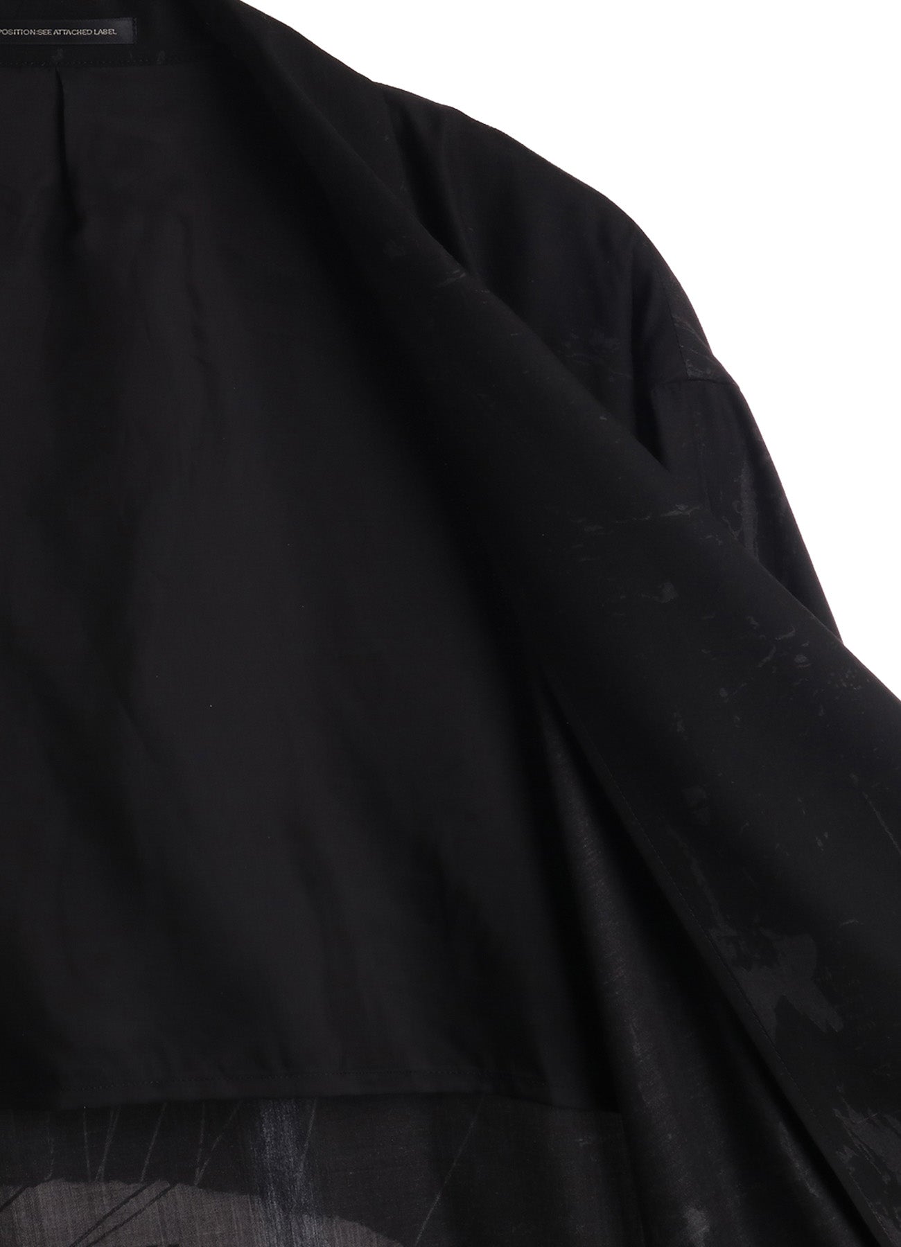 This oversized jacket in cupro features a sophisticated luster and refined texture. The back is adorned with a printed message from Yohji Yamamoto. Its roomy silhouette offers relaxed comfort.
