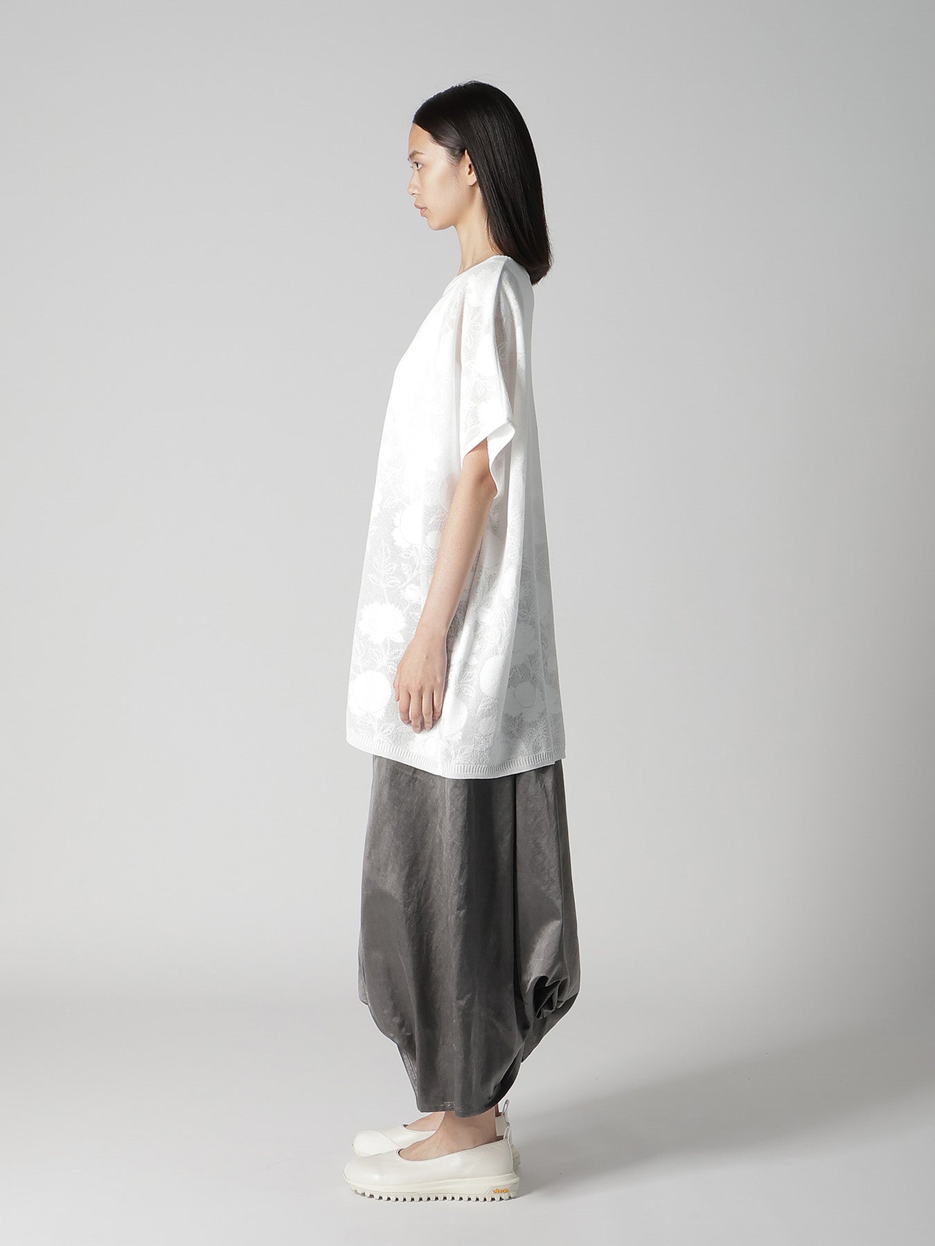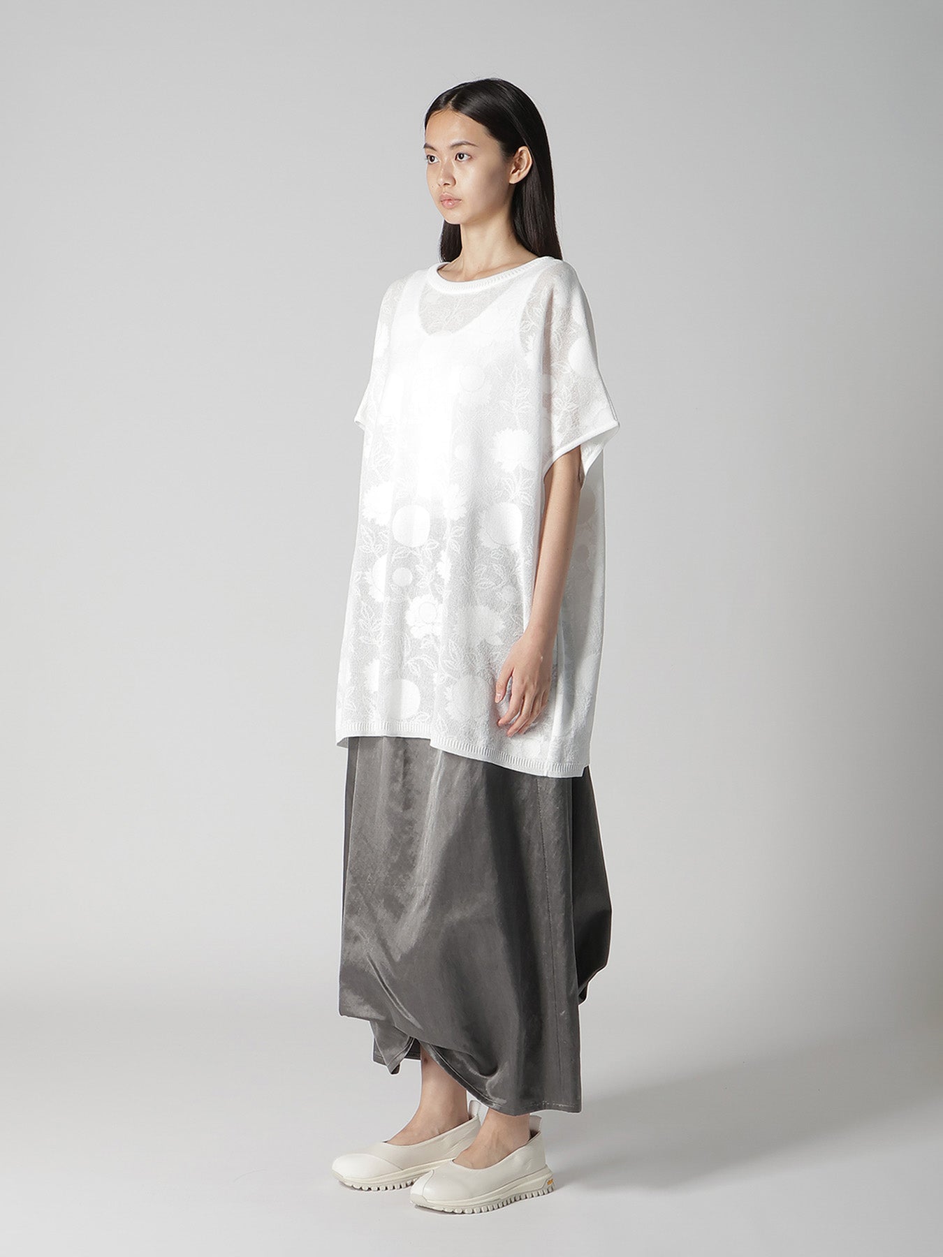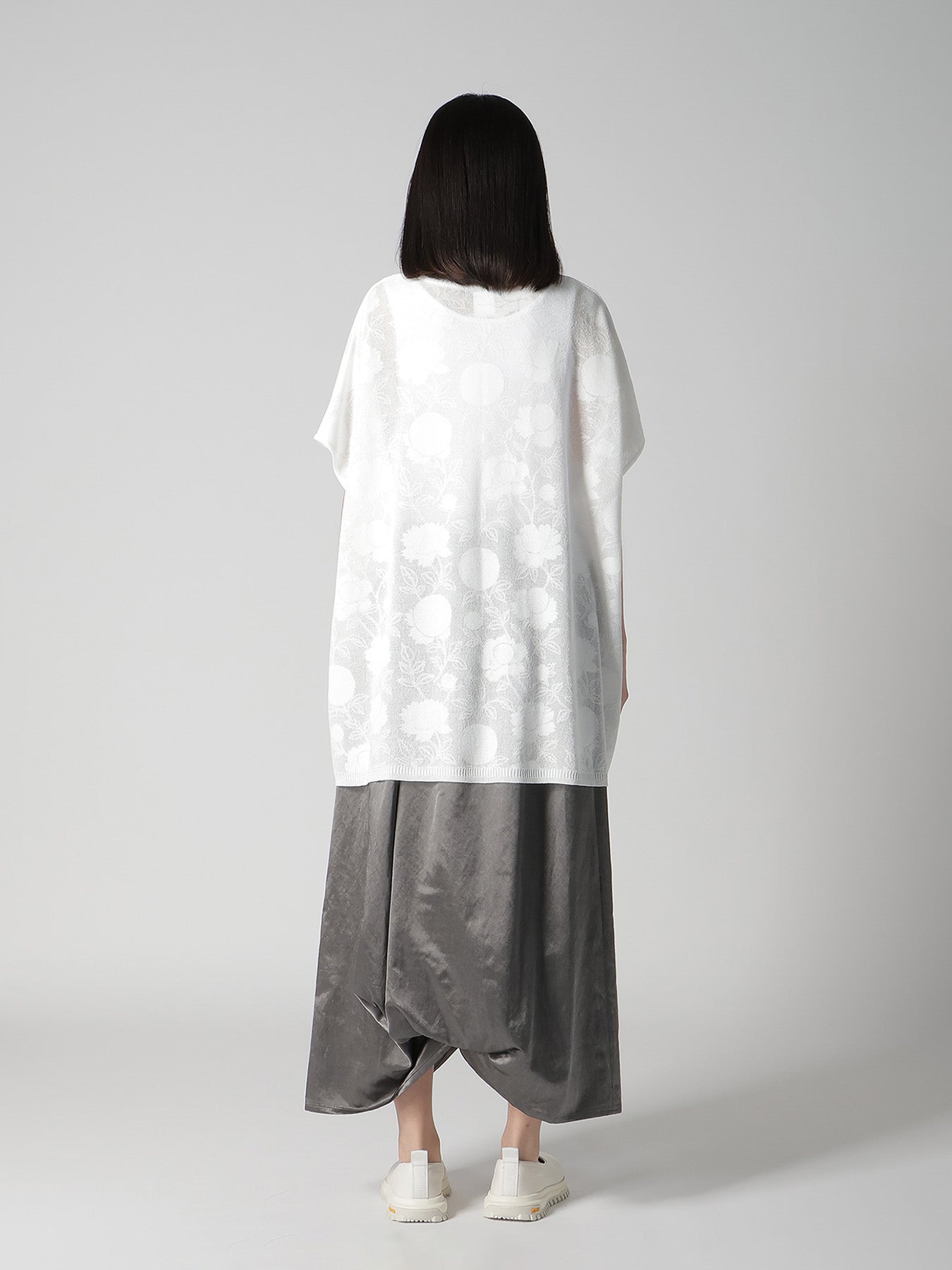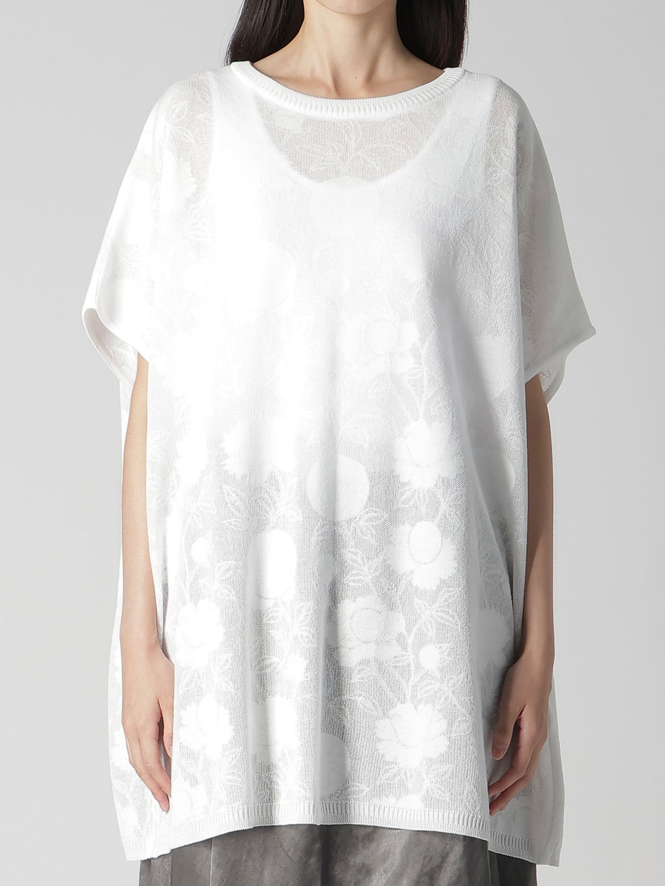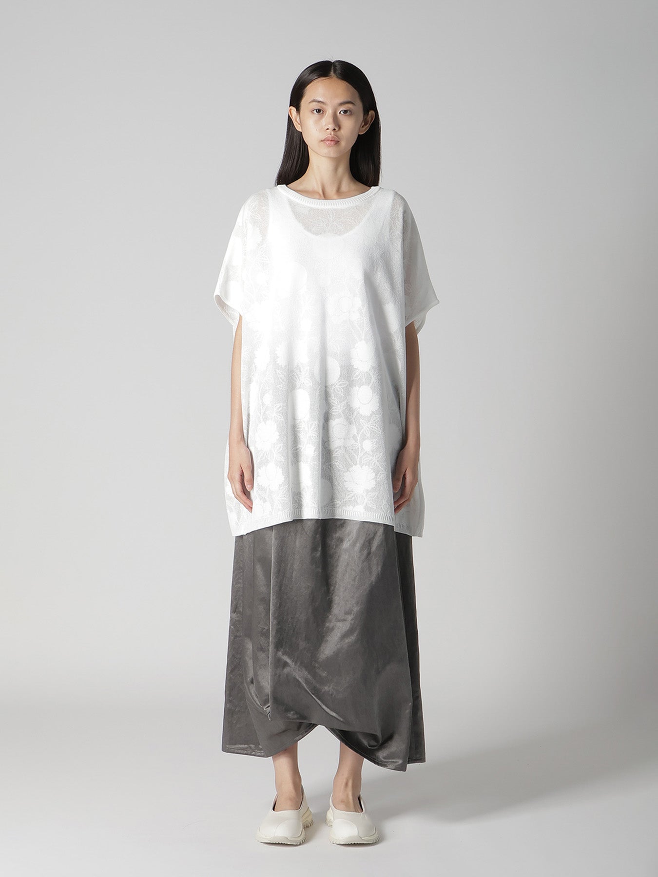 This is a stylish oversized knit featuring a unique combination of floral and polka dot patterns, characteristic of Y's design. Its relaxed oversized silhouette ensures comfort and style, making it a versatile piece for various outfits.
