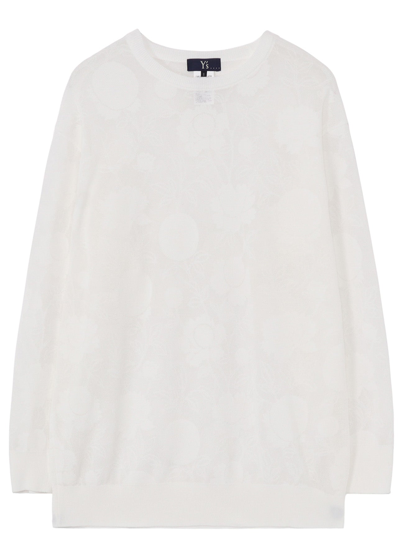 This oversized long-sleeve knit from Y's combines floral and polka dot patterns for a unique design. Featuring a relaxed oversized silhouette, this piece is ideal for creating a laid-back and stylish look.