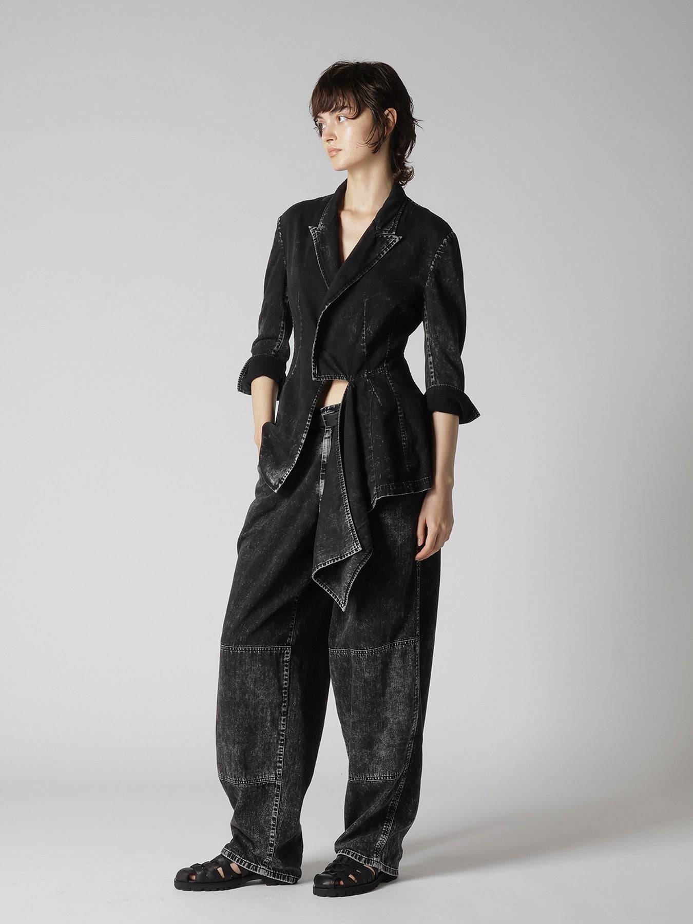 - Features a chemical wash look with unique fading patterns achieved through the kiln process.