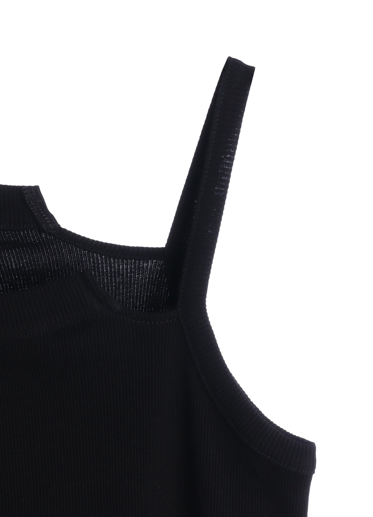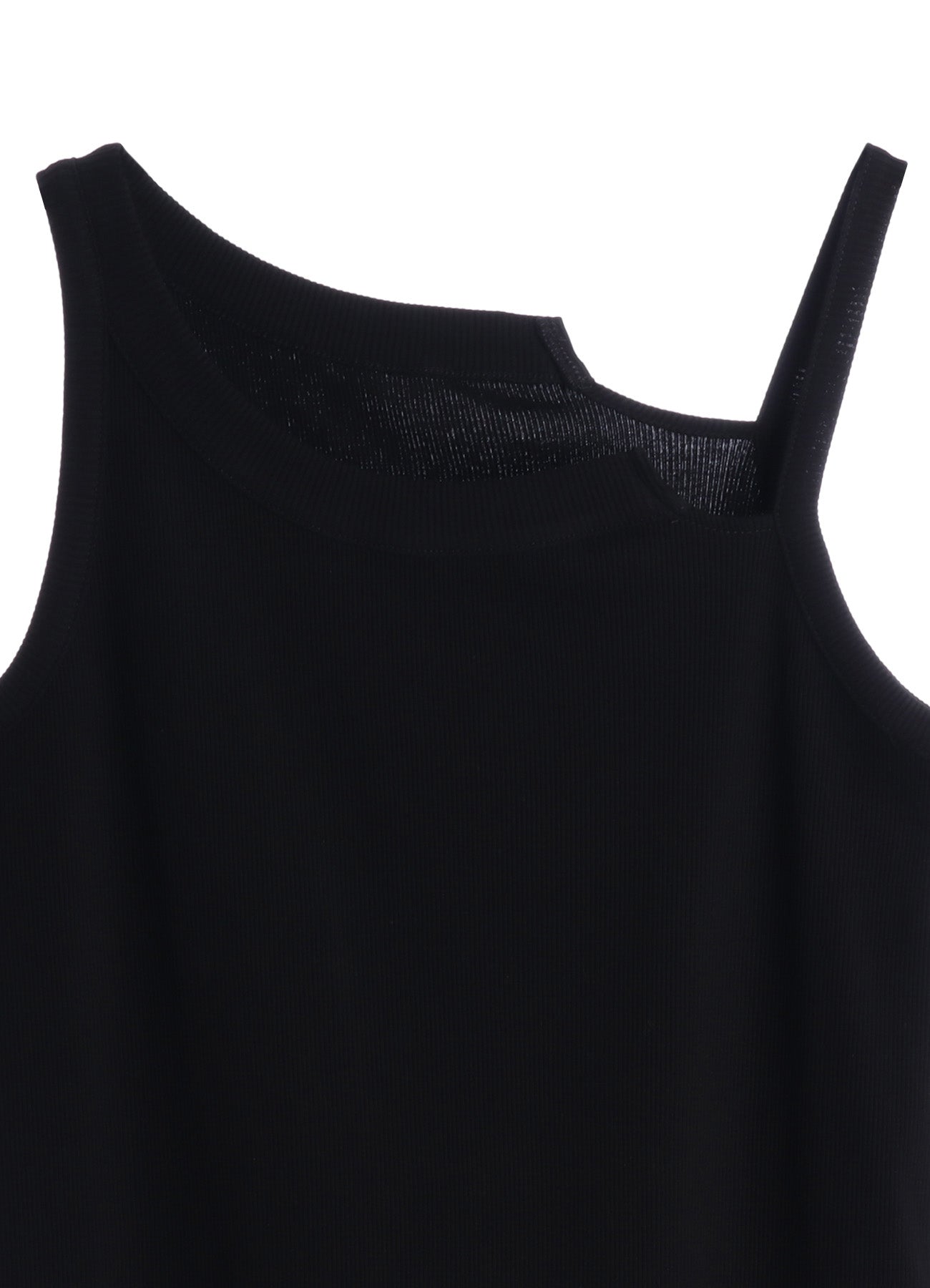 A cotton ribbed tank top featuring a clean, elegant silhouette with an asymmetric strap as an accent. Enjoy a stylish and contemporary look with this unique design perfect for modern outfits.