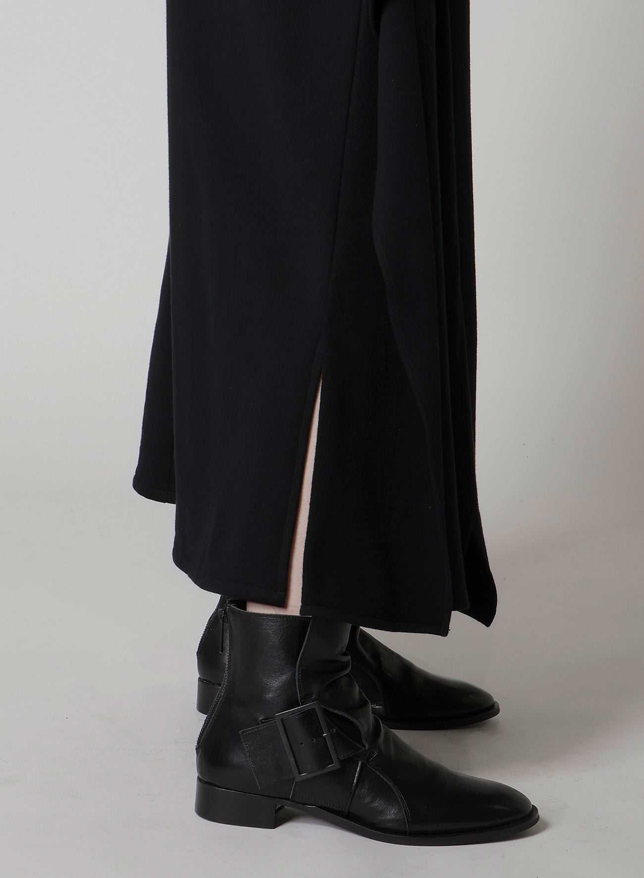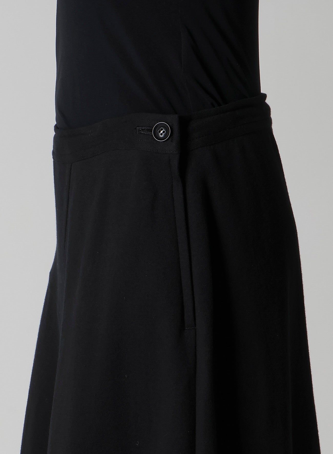 Cette jupe en tissu molletonné doux et moelleux est dotée d'un insert triangulaire issu de pantalons, offrant une touche unique. Elle se marie bien avec une veste asymétrique du même matériau, idéale pour un look confortable au quotidien.