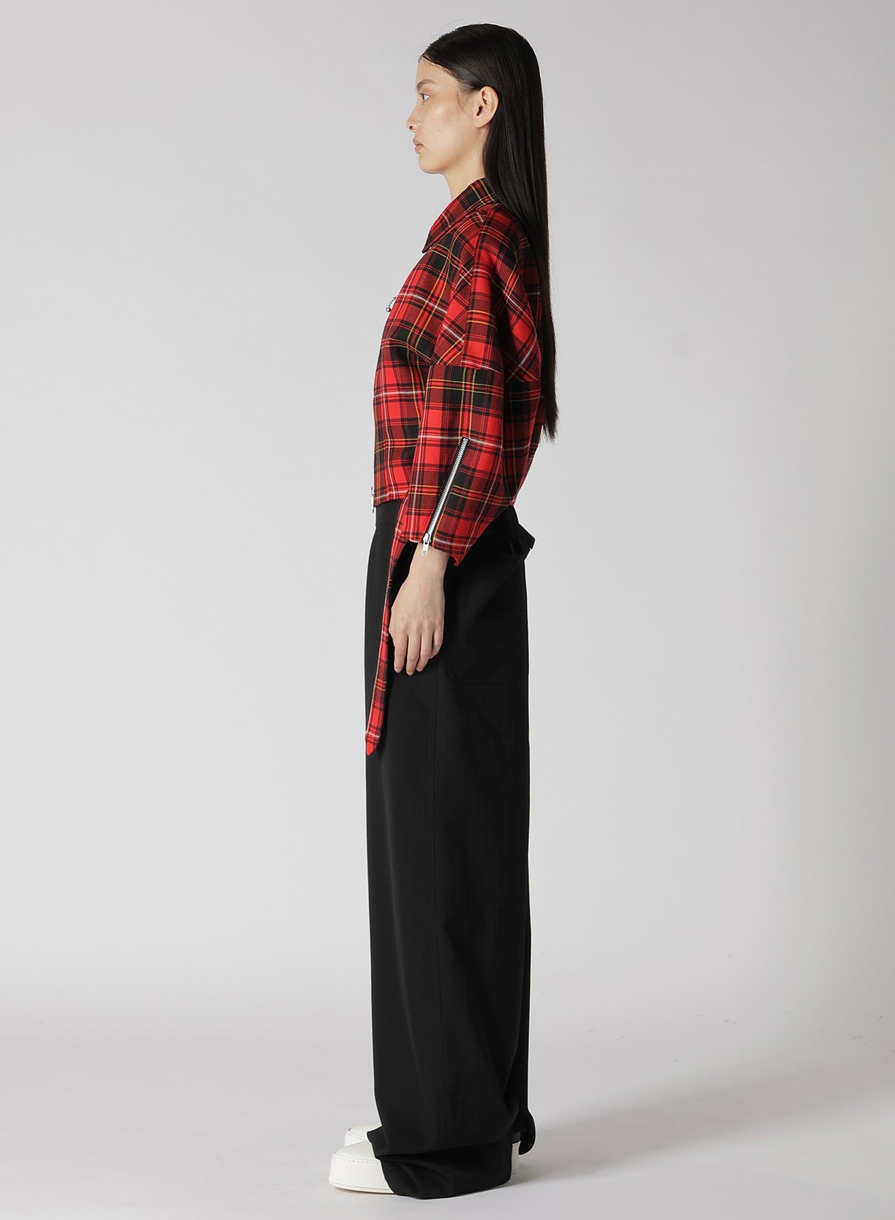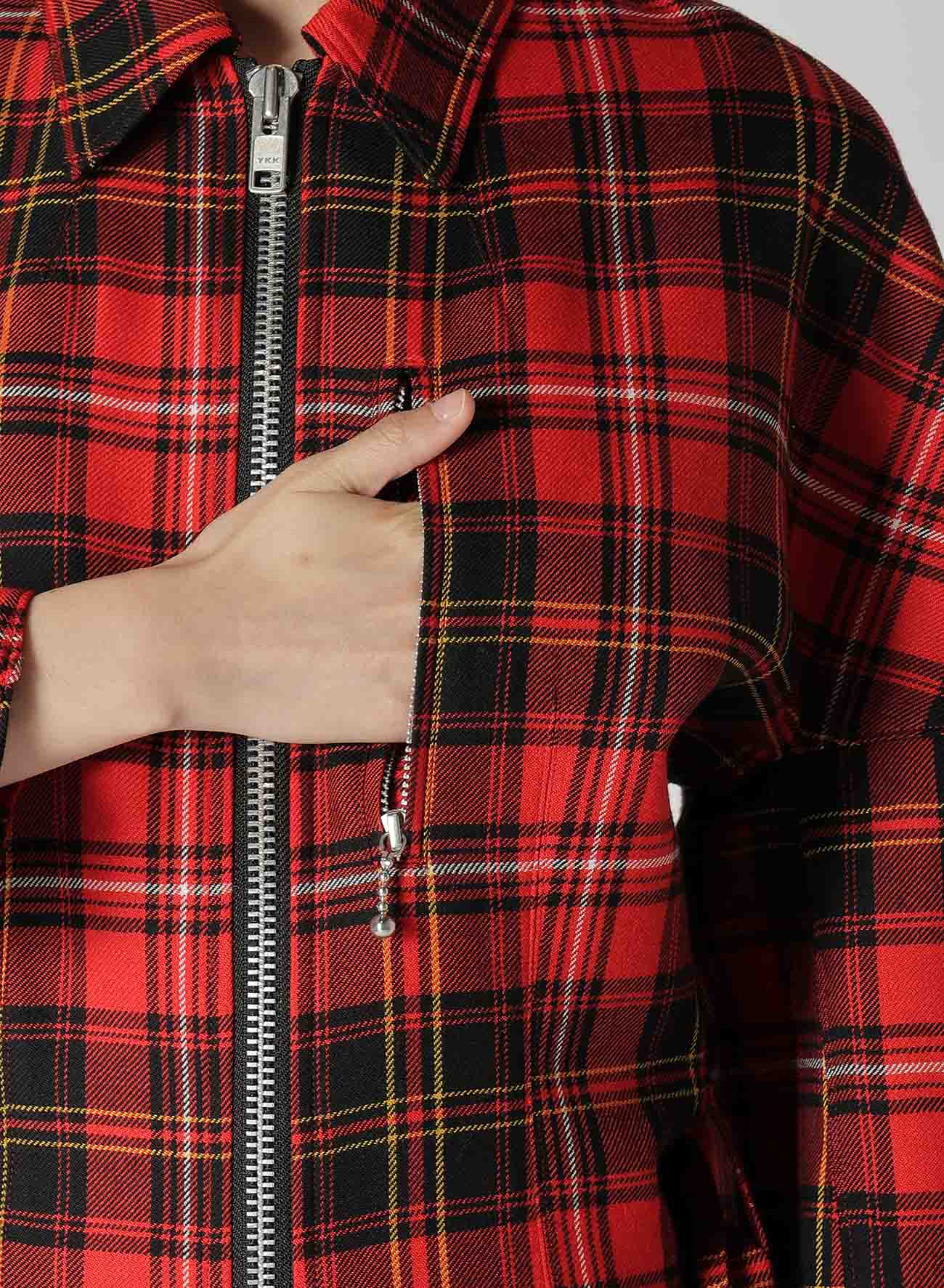 Un blouson combiné élégant avec des motifs à carreaux tartan. Ses manches courtes et son ourlet offrent une silhouette épurée, tandis que la taille cintrée améliore le look. Pour de meilleurs résultats, ouvrez le bas de la double fermeture éclair. Idéal pour une tenue chic et moderne.