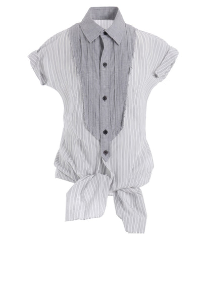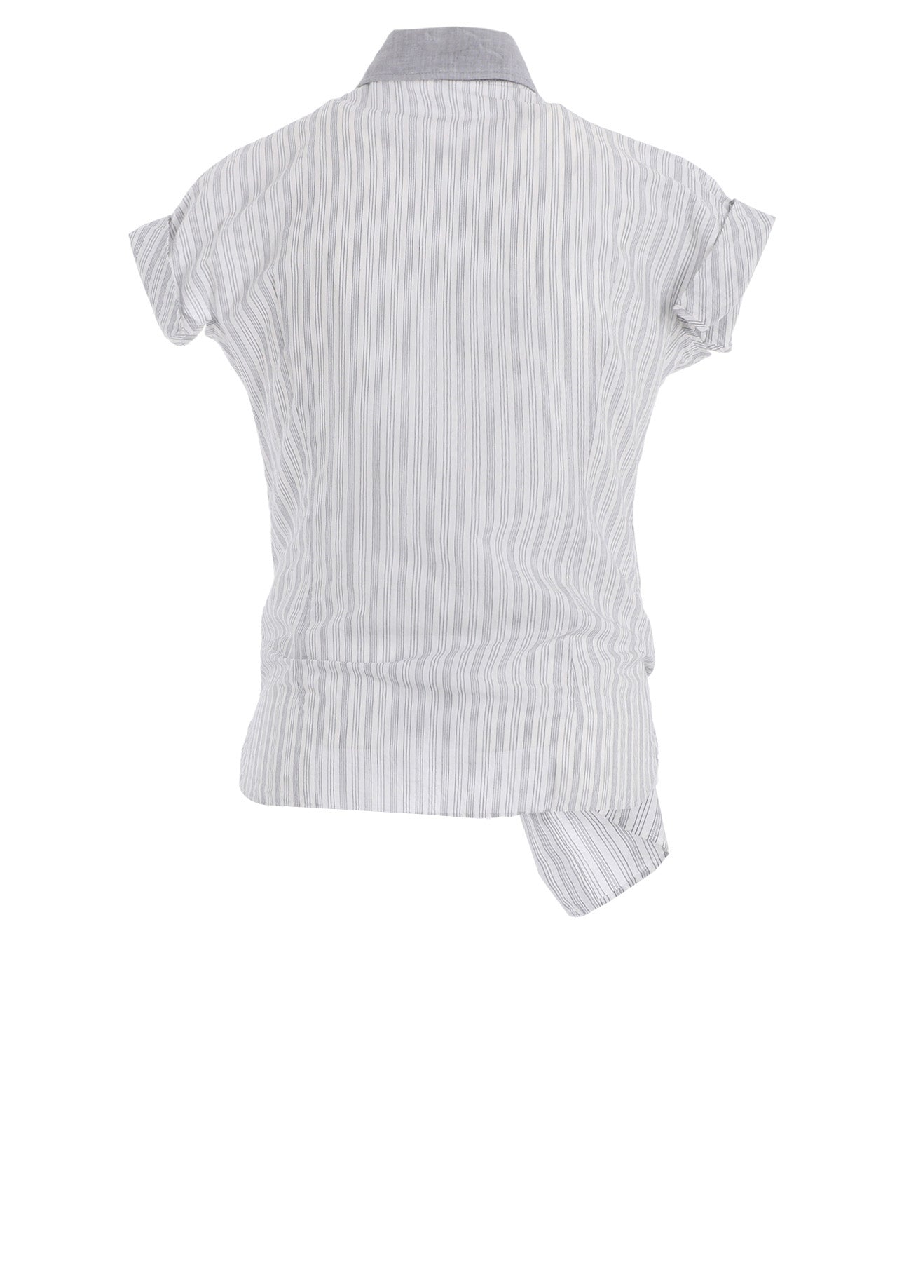 Cette chemise rayée avec plis offre une texture douce et gonflée grâce à un lavage doux. Le dos est court pour éviter l'affaissement, tandis que l'avant est plus long pour permettre l'attache. - Texture douce et naturelle. - Dos court pour éviter l'affaissement. - Avant plus long pour attacher.