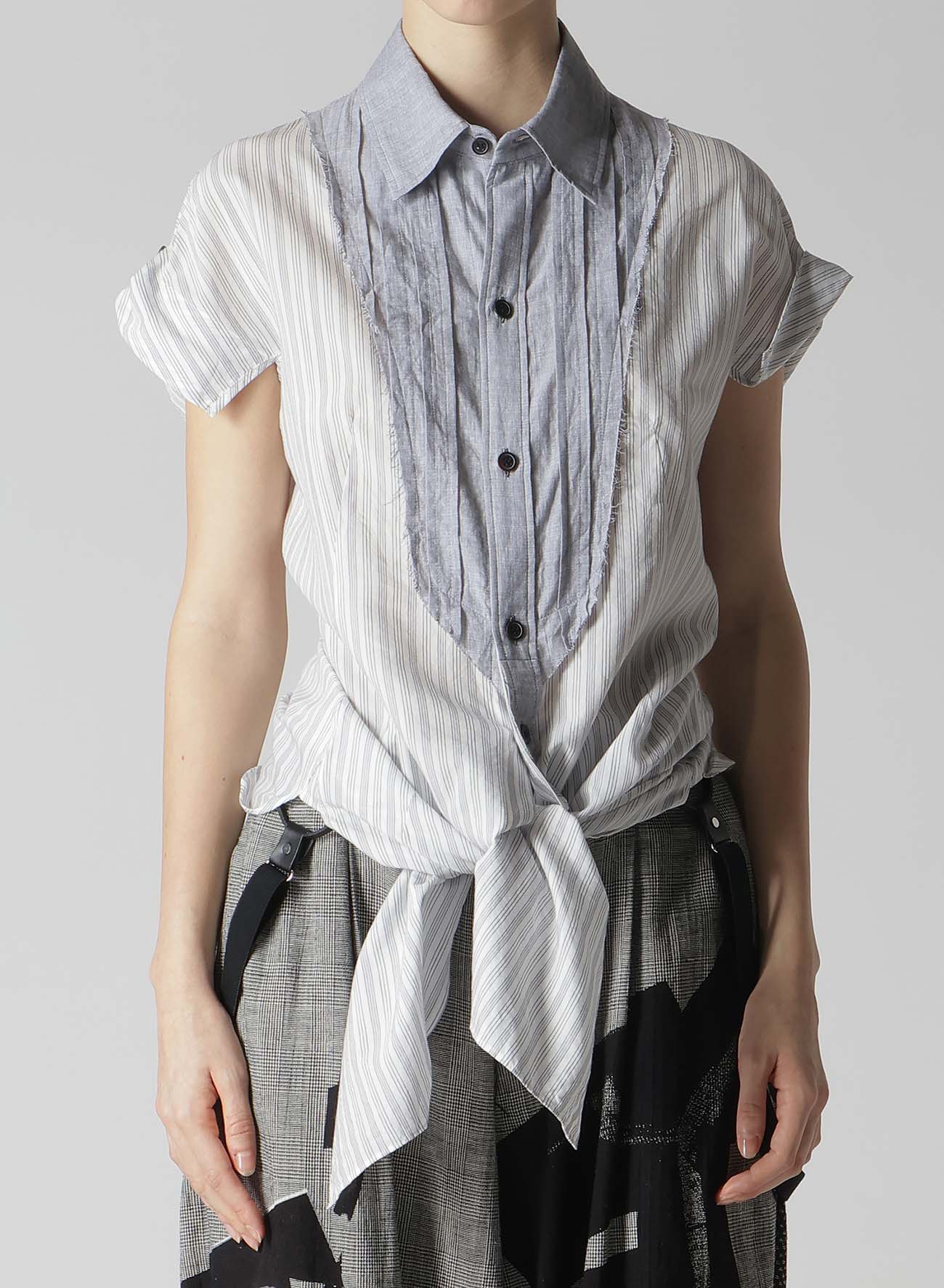 C/CU HARD TWISTED DOBBY STRIPE PLEATED SHIRT