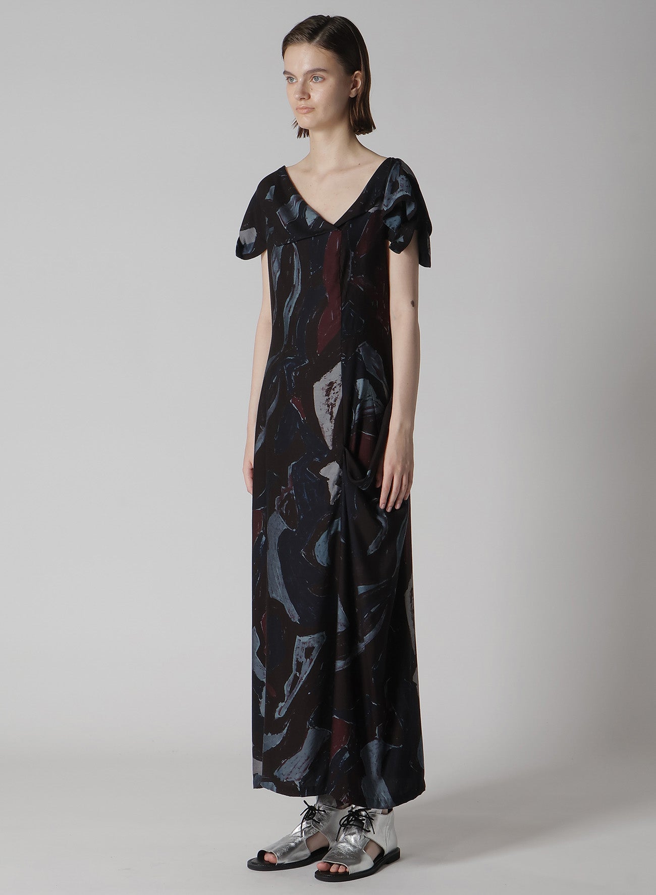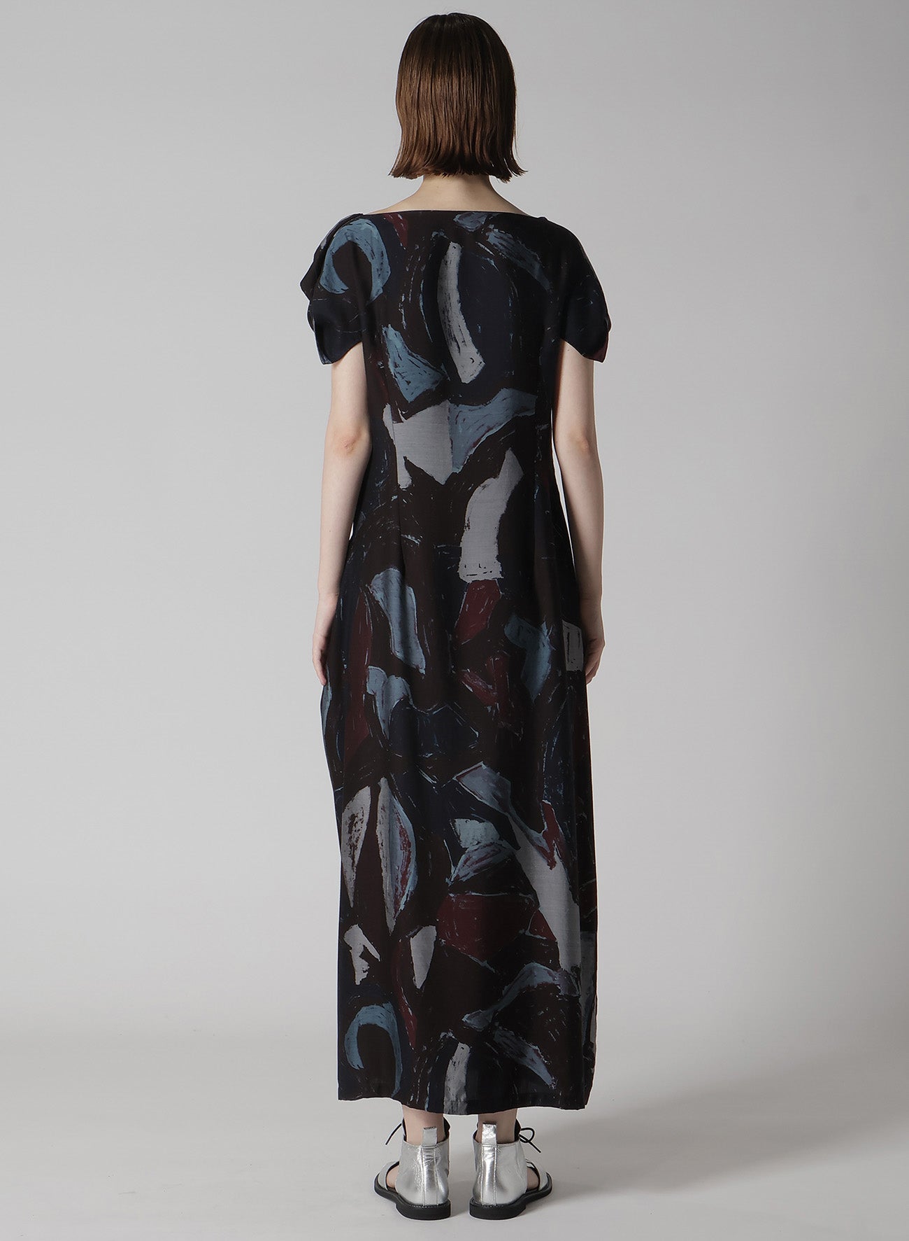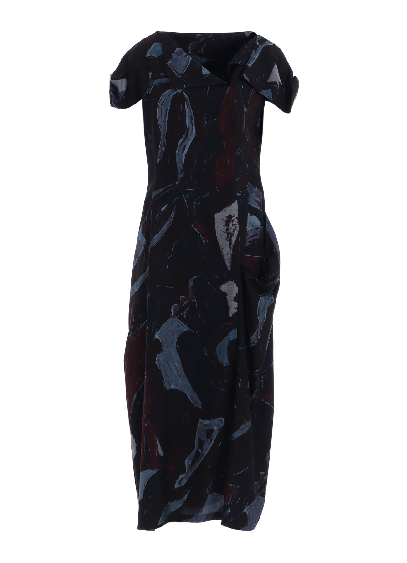 CU/DUNGAREE TWILL PAINTED CITY PRINT SQUARE NECK DRESS