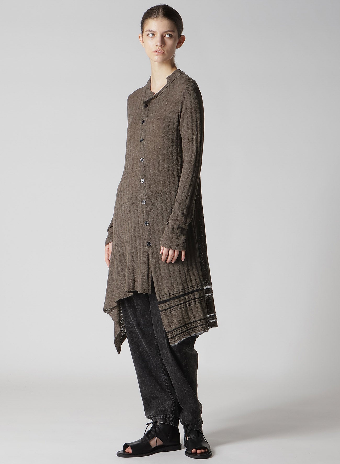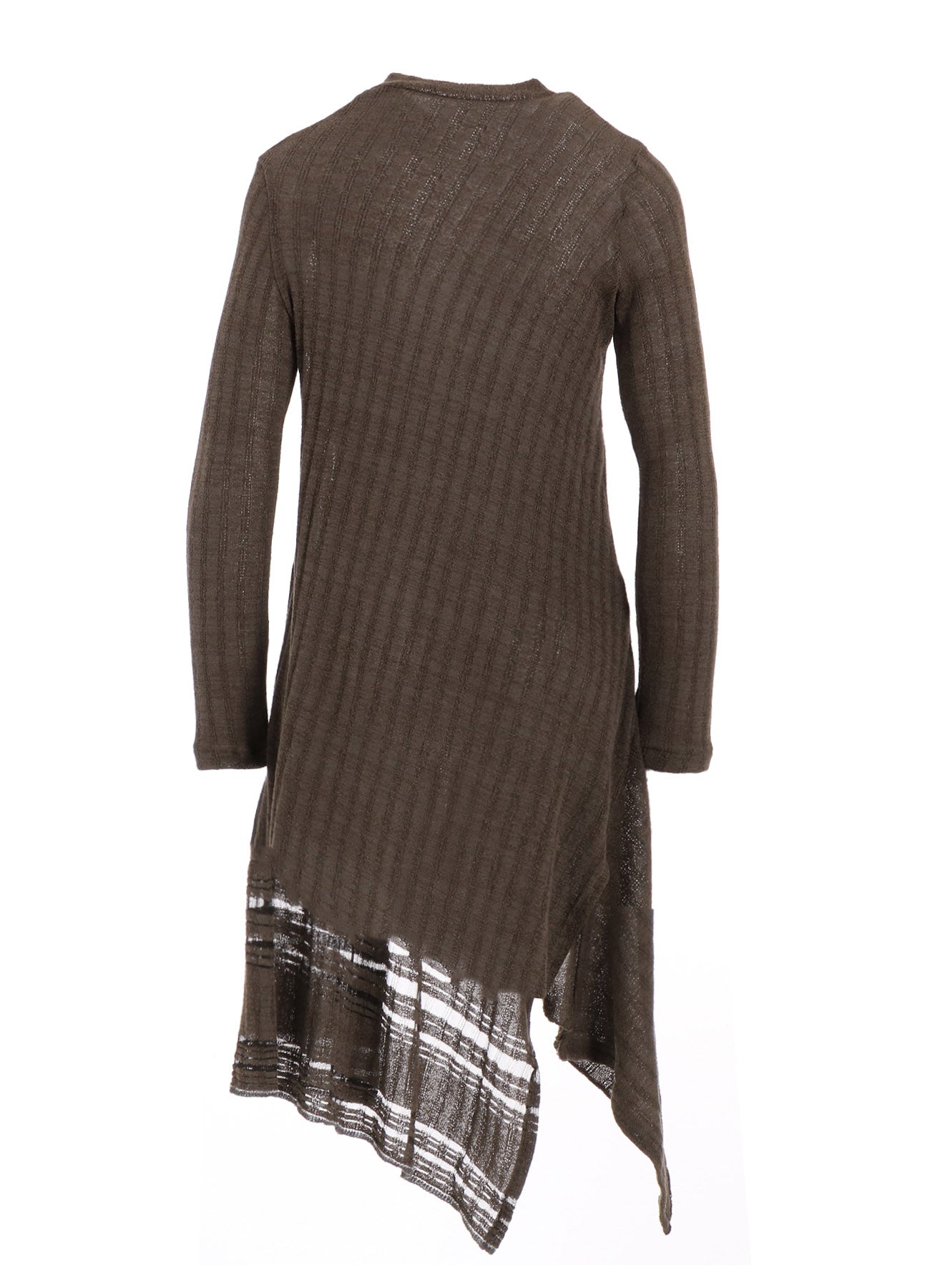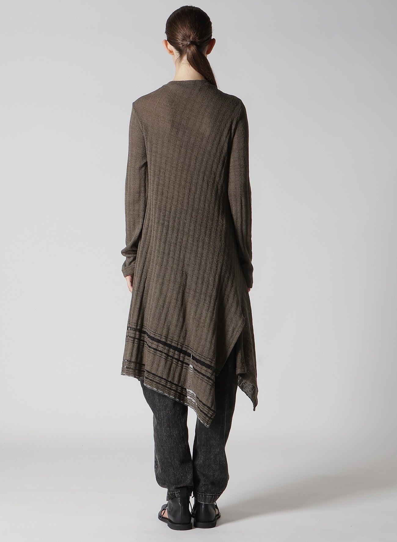 DROP NEEDLE RIB STRIPE ASYMMETRIC LONG CARDIGAN