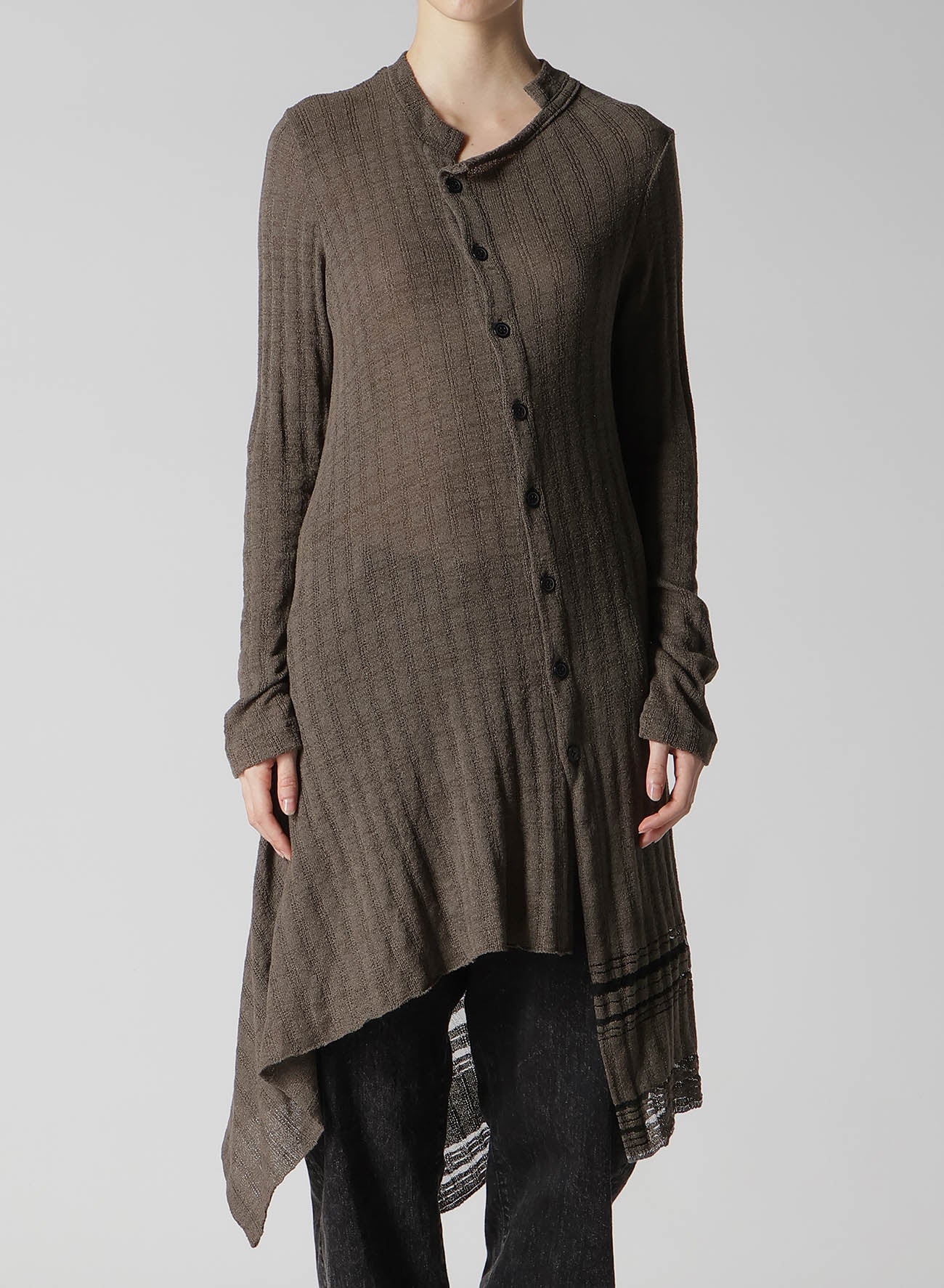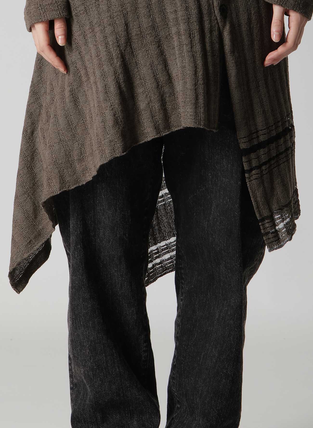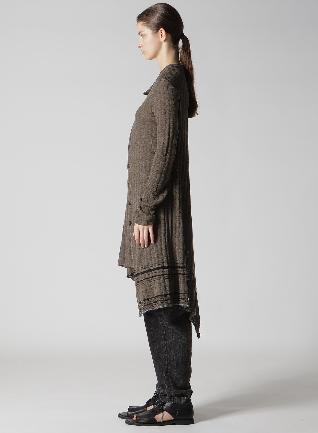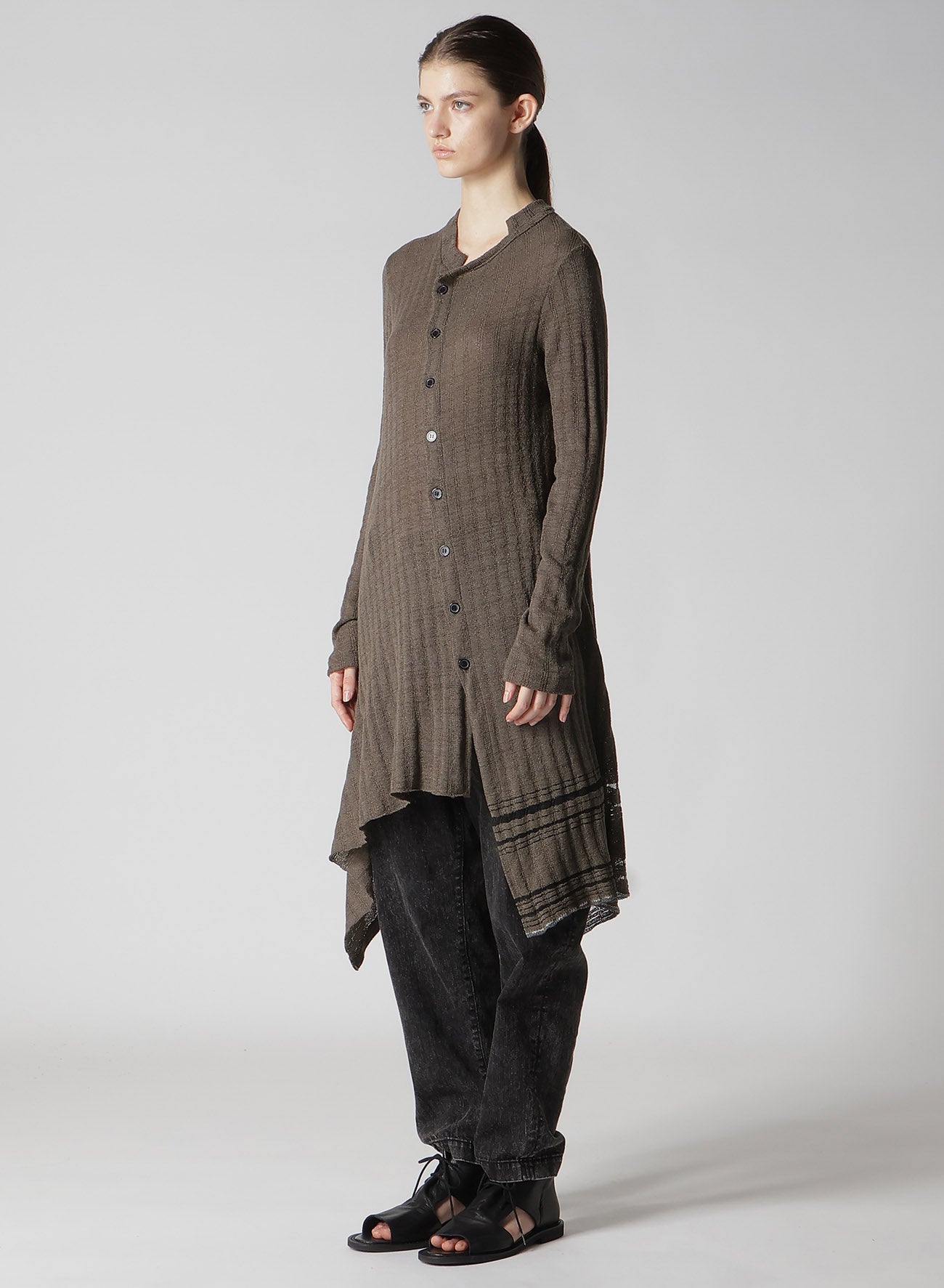 DROP NEEDLE RIB STRIPE ASYMMETRIC LONG CARDIGAN