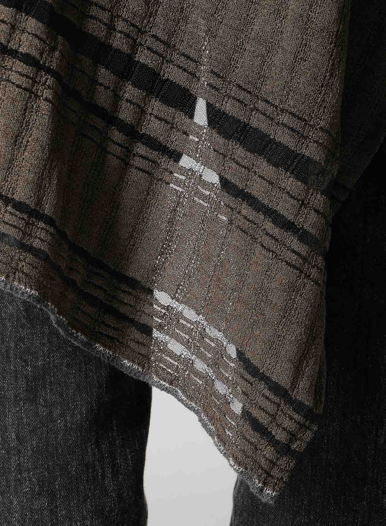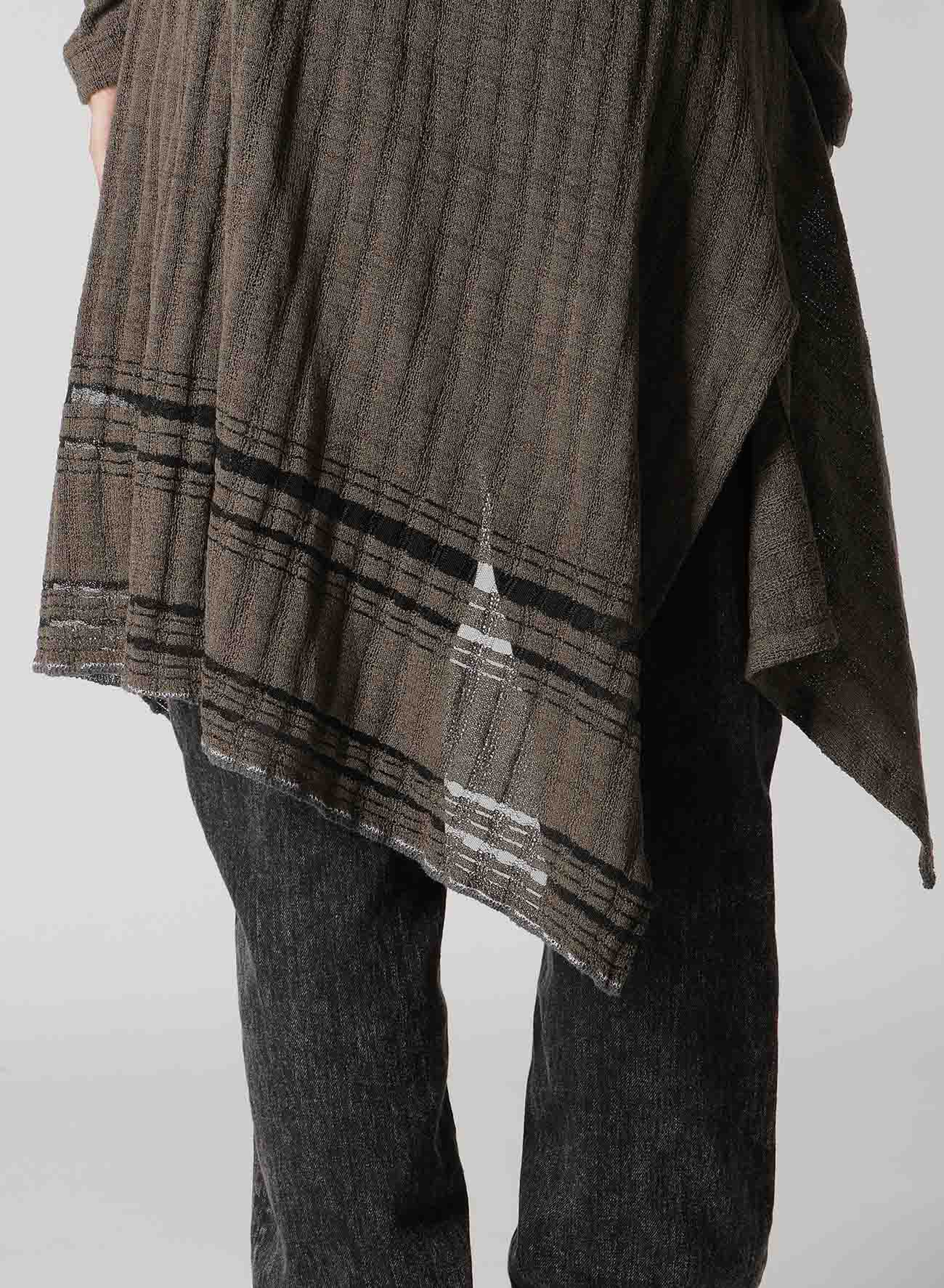 Ce cardigan en maille présente un ourlet asymétrique et un motif rayé transparent, offrant une impression légère. Il peut être porté comme haut ou superposé. Le design intègre des sections à rayures transparentes pour une sensation aérienne.
