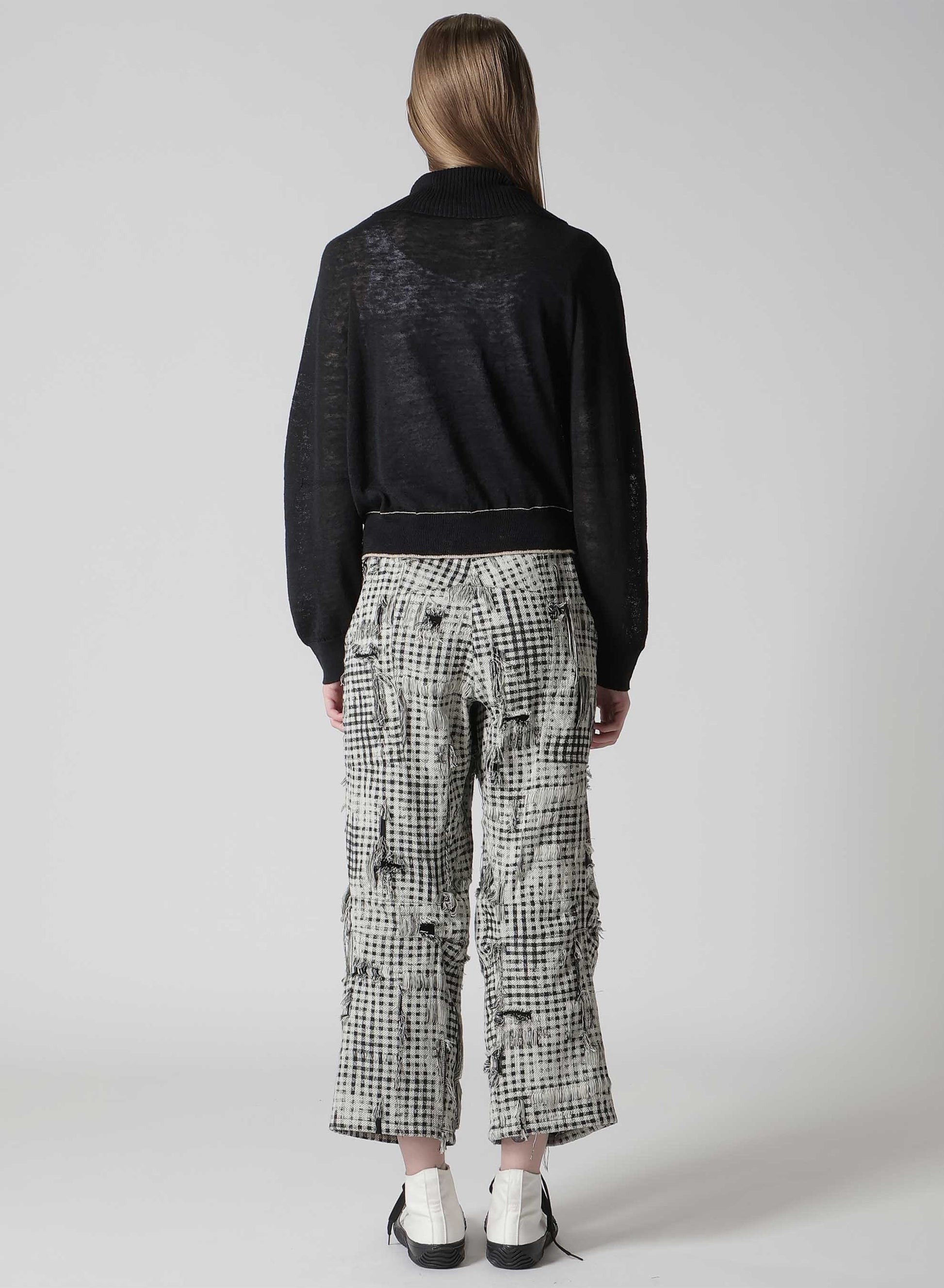 This A-line knit cardigan combines FLAX with functional polyester, making it sweat-absorbent, quick-drying, and easy to care for. It features subtle accent colors and a high neck design to protect against sunburn, covering the nape. It's a versatile item suitable for various conditions.