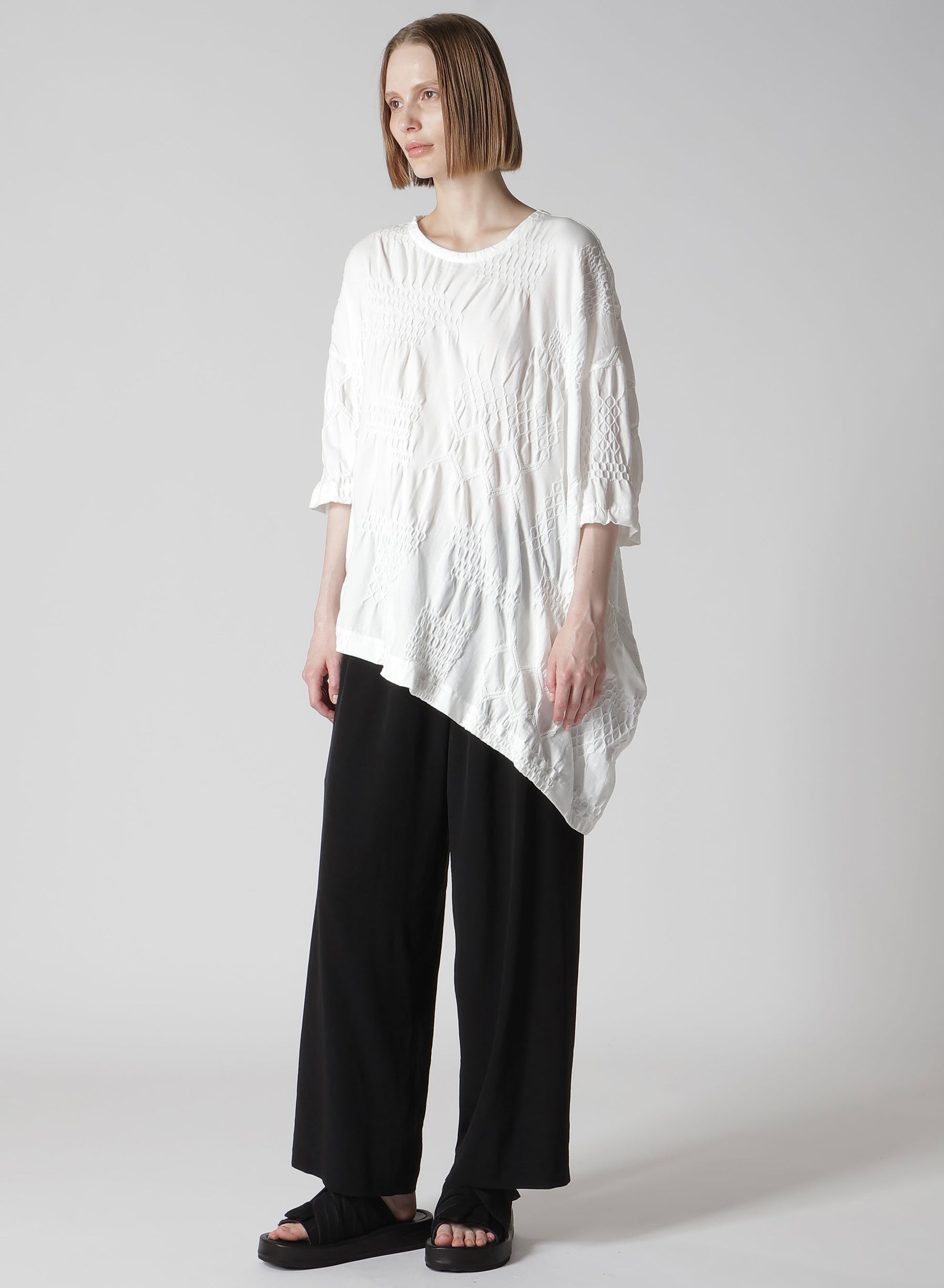 【2/20 12:00 release】SMOCKING JQ ASYMMETRIC 3/4 SLEEVE TEE