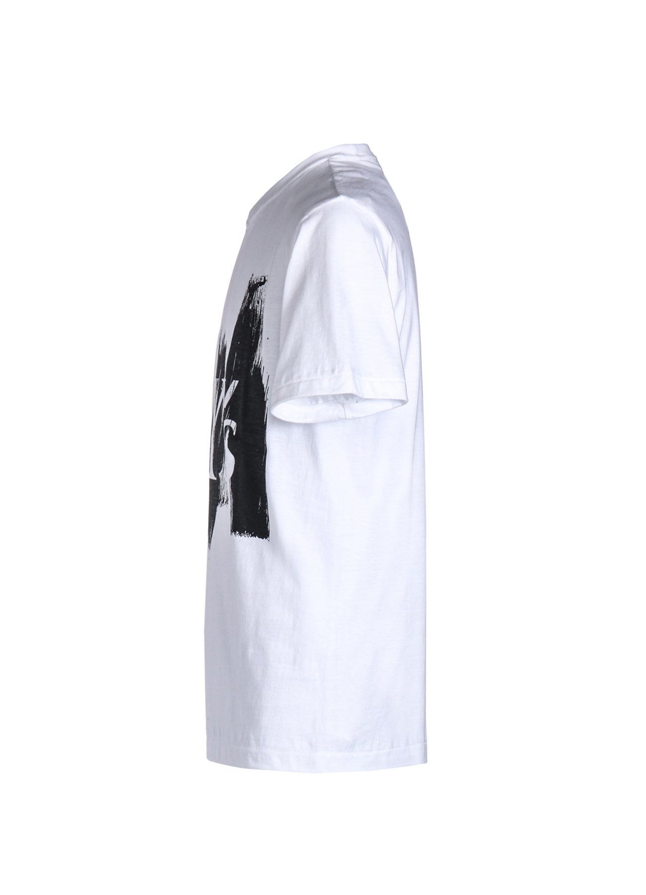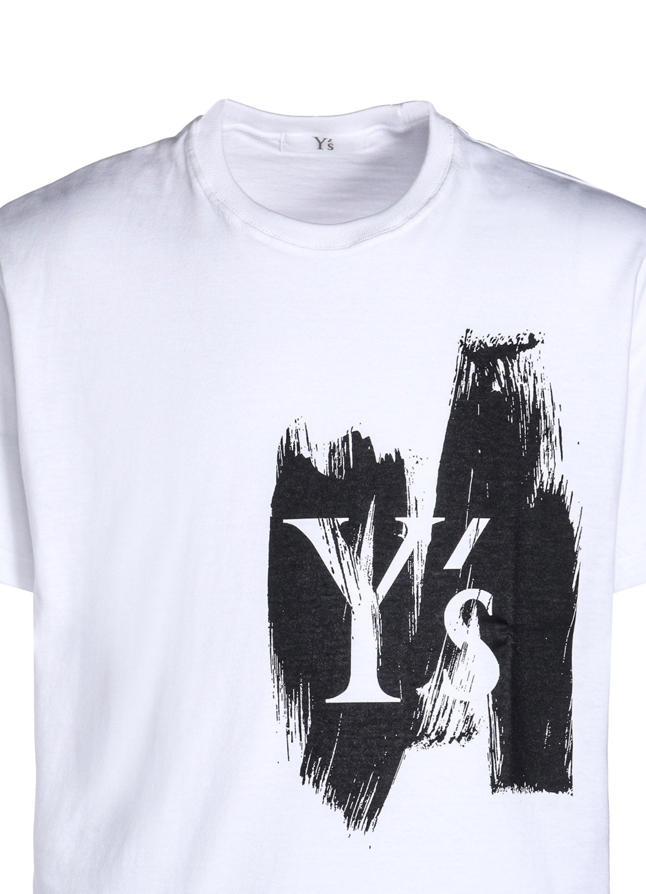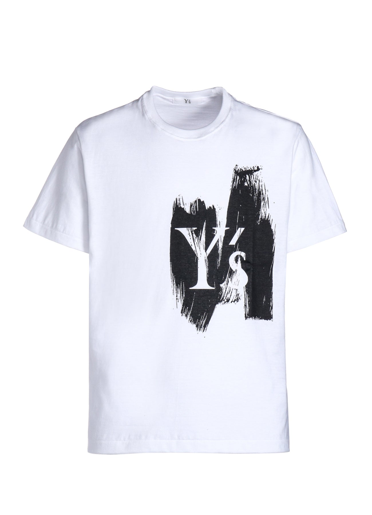 Un haut à manches courtes en coton confortable, conçu avec un logo Y’s sur un motif de peinture en coups de pinceau. Disponible en deux tailles unisexes surdimensionnées pour un style décontracté.