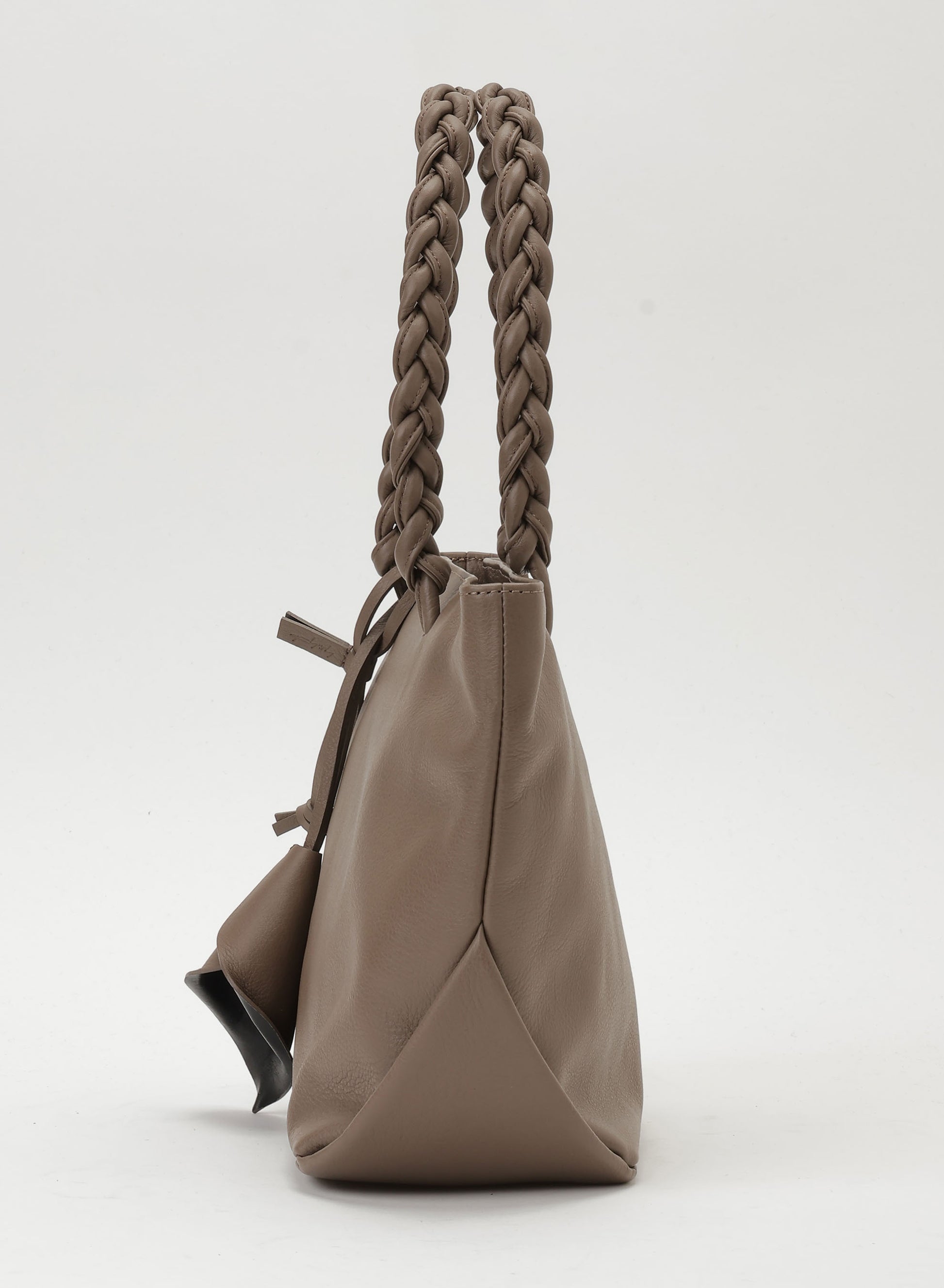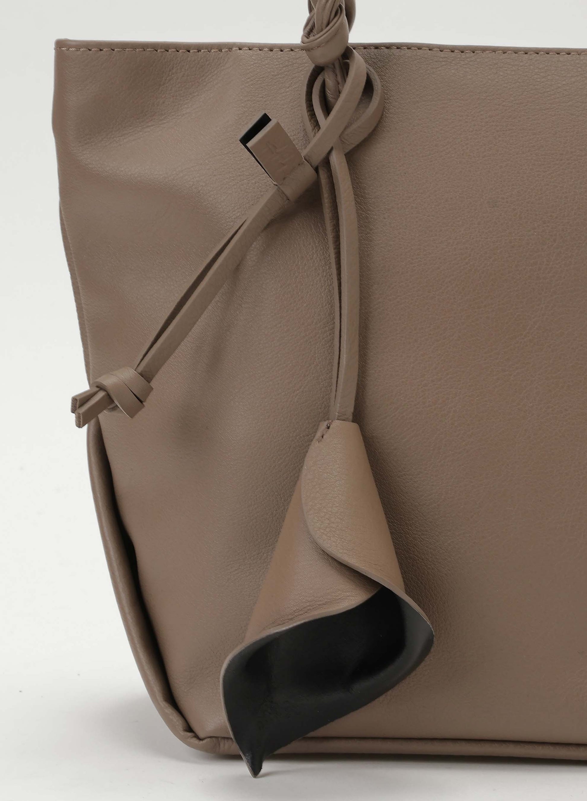 Il manico di questa borsa tote taglia S è realizzato in corda di pelle intrecciata, aggiungendo un tocco maturo ma contemporaneo. Il design, con la sua costruzione simile a carta piegata dal fondo ai lati, esemplifica la funzionalità unica e giocosa di discord.