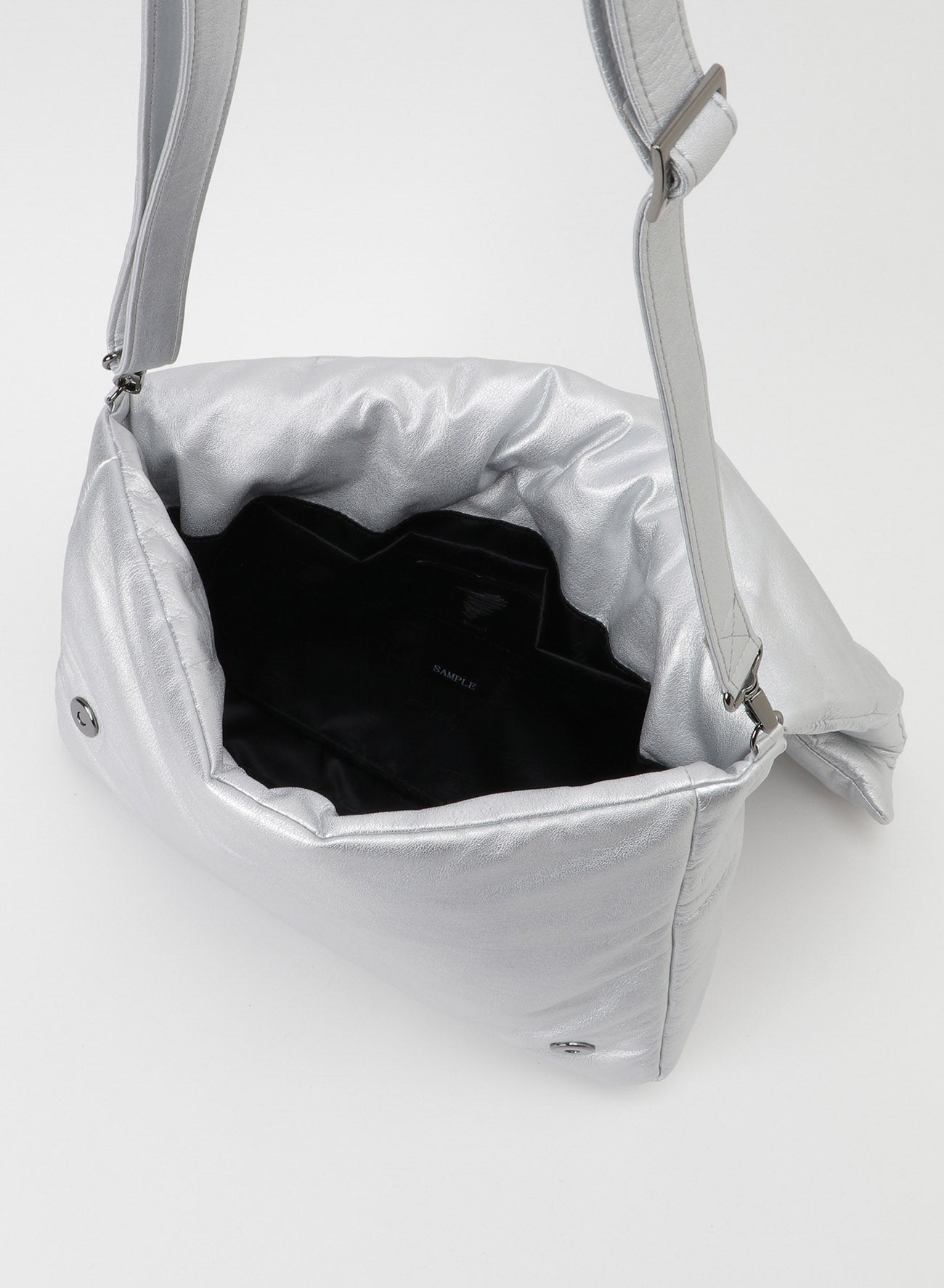 FLUFFY, una borsa versatile con cuciture irregolari che avvolgono il cotone. Il cappuccio si apre e si chiude con un magnete centrale, creando un corpo semplice. La tracolla staccabile consente di utilizzarla come borsa a mano.