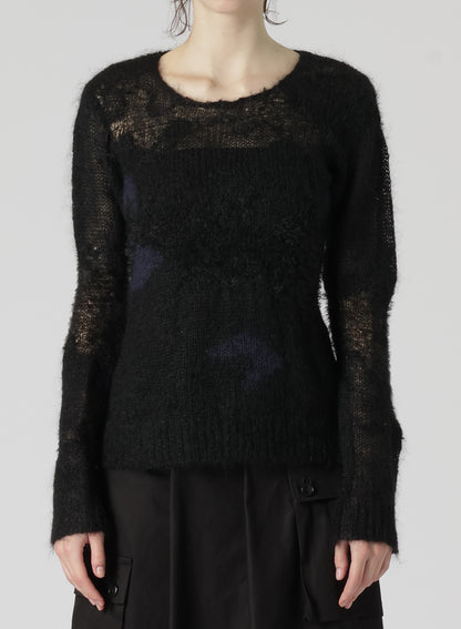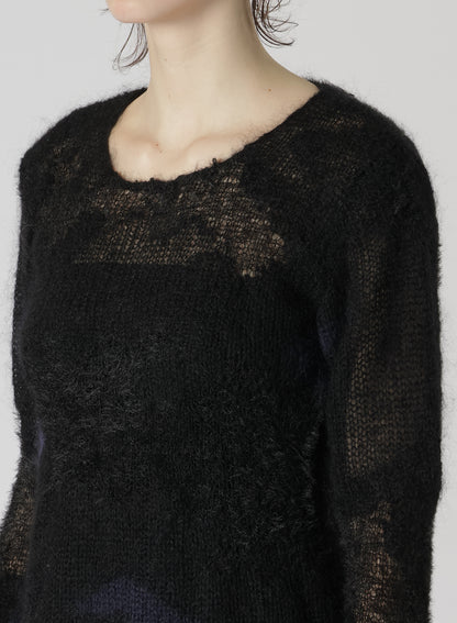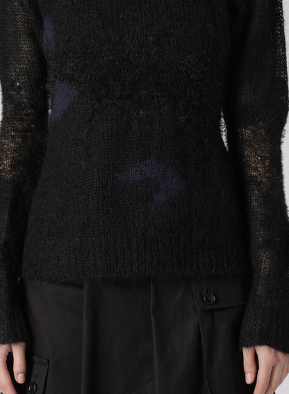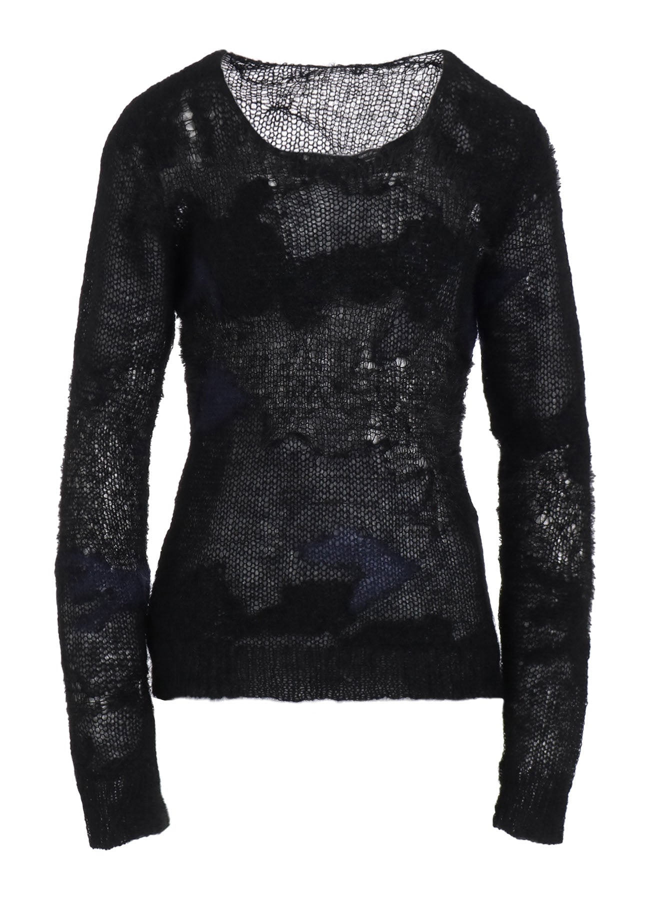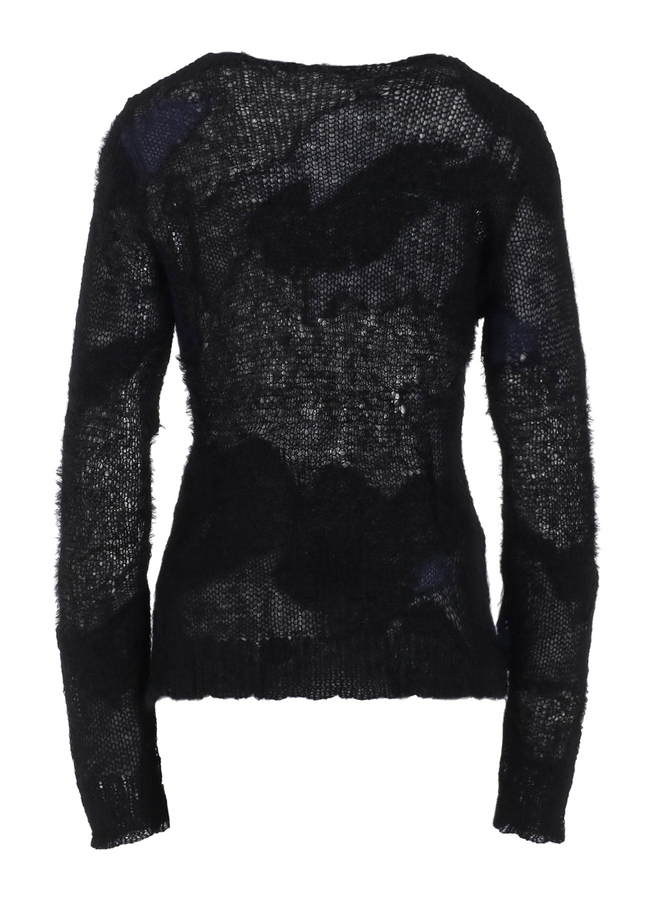Un elegante maglione in maglia realizzato in morbido mohair con uno schema di colori mimetico. La lunghezza corta lo rende versatile per abbinarlo a qualsiasi pantalone. La foto del modello mostra un capo campione; l'articolo reale può variare in dimensioni e consistenza. Si prega di consultare SIZE INFO per i dettagli esatti.
