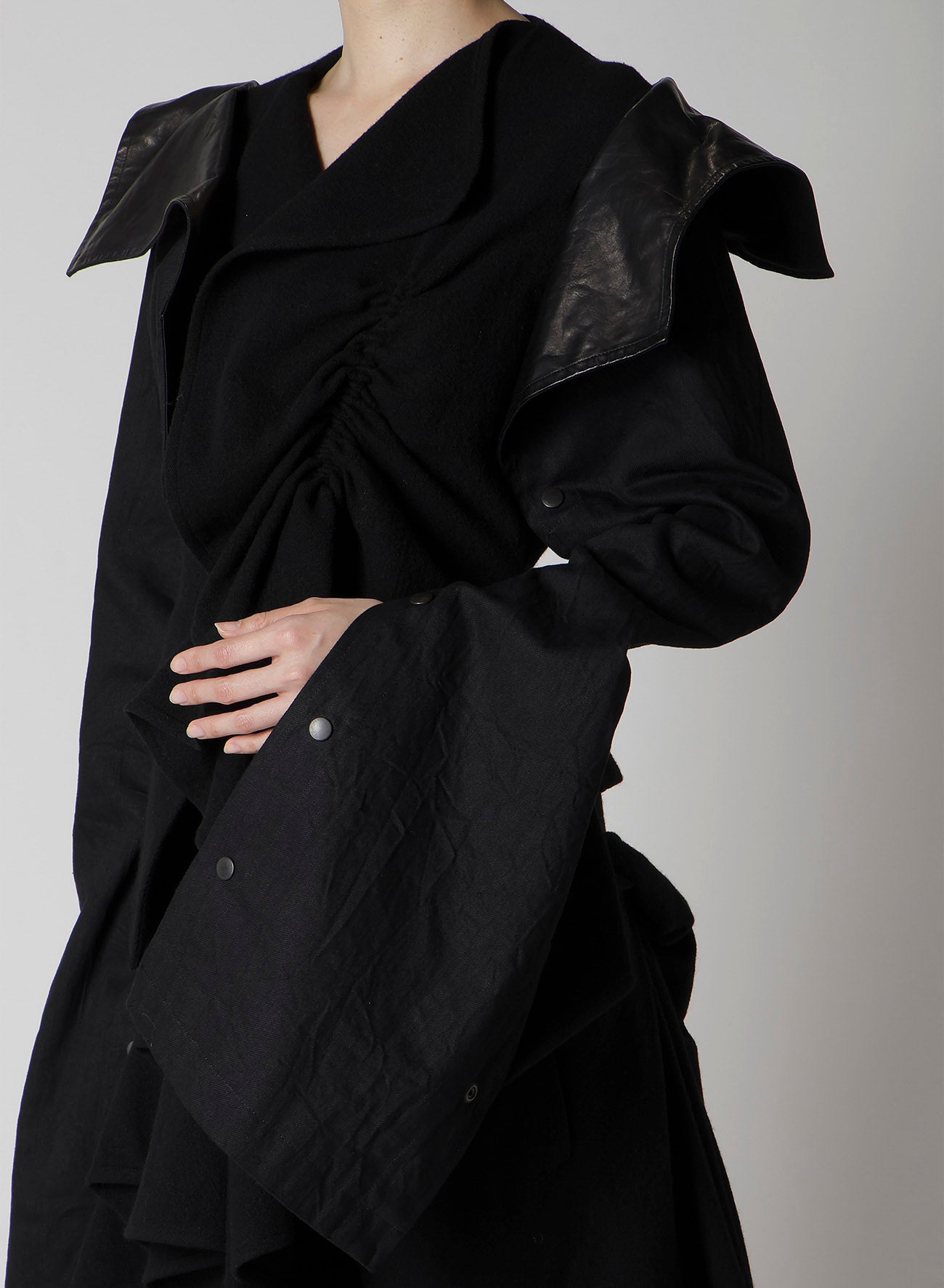 Affine la tua collezione con questa giacca dalla combinazione sorprendente, caratterizzata da un design a maniche lunghe e tessuto fluente. La sua lunghezza corta crea un silhouette accattivante in contrasto con le maniche lunghe. Le immagini del modello mostrano articoli campione che potrebbero differire dal prodotto finale. Consulta SIZE INFO per i dettagli sulla taglia.