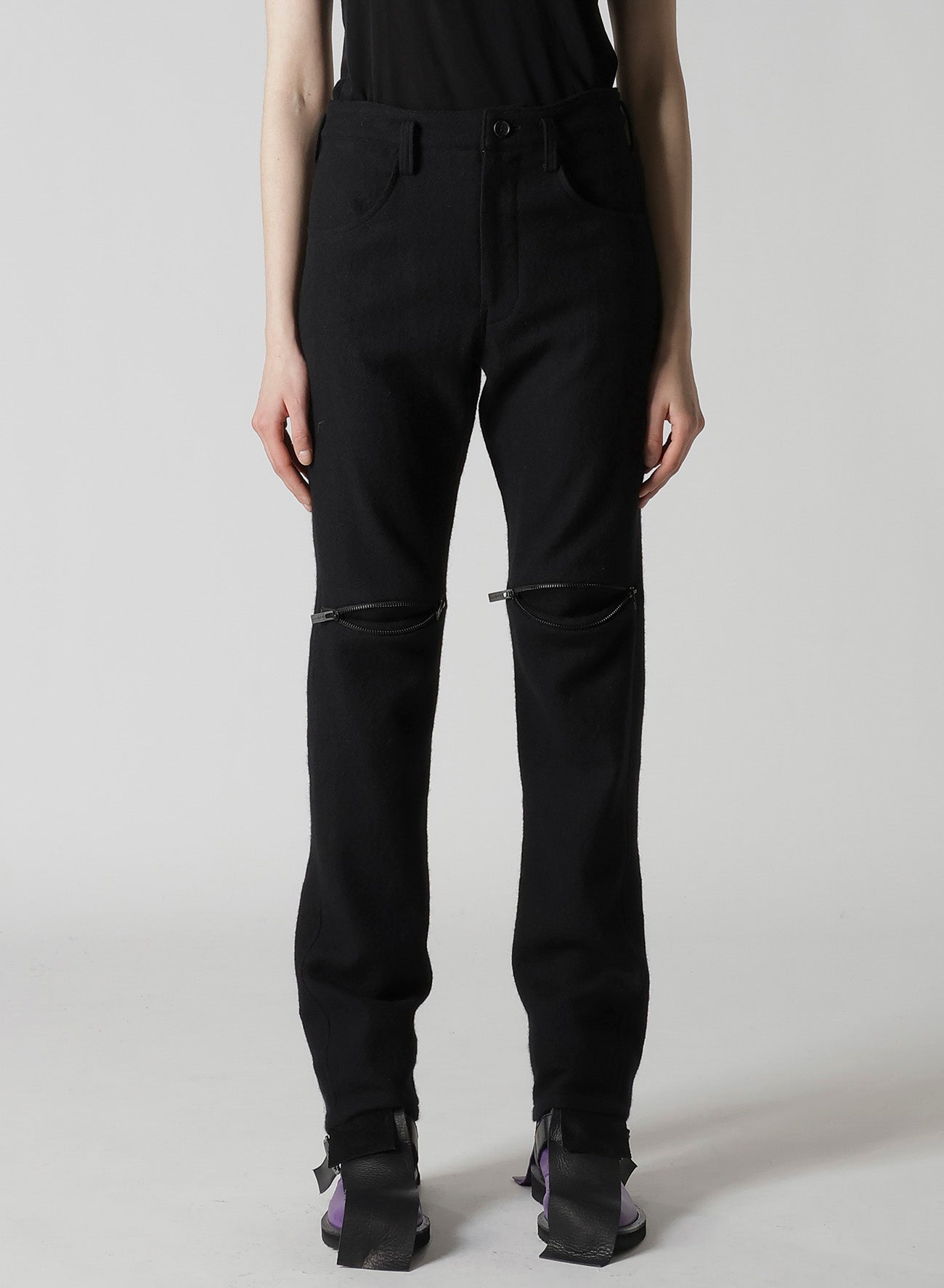 Questi pantaloni confortevoli presentano un dettaglio con cerniera al ginocchio che crea una silhouette slanciata. Realizzati in morbido materiale Viyella, offrono un cavallo profondo per una vestibilità comoda. Le immagini del prodotto mostrano campioni, quindi dimensioni e texture possono variare. Verificare in SIZE INFO per i dettagli.