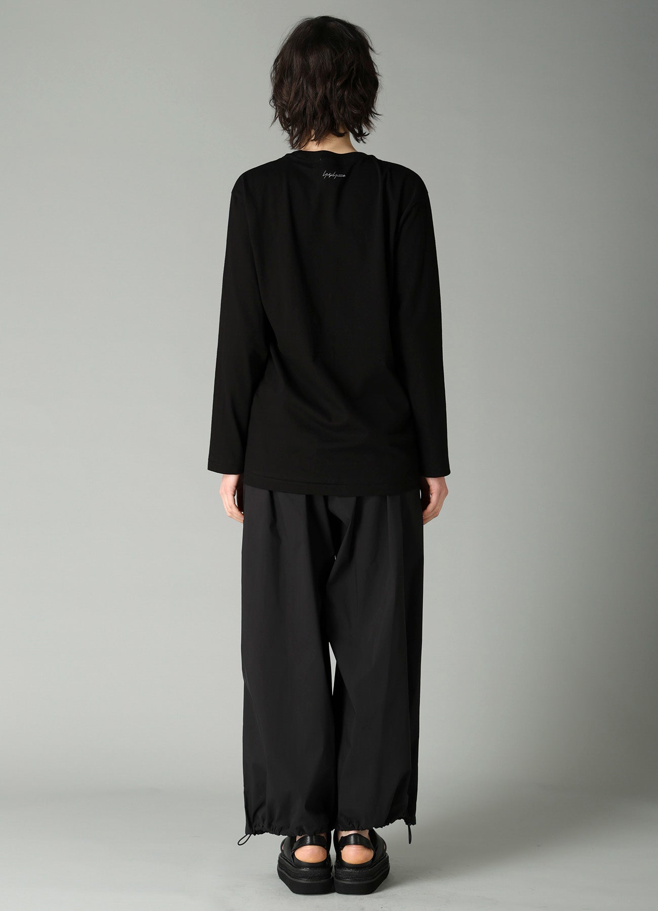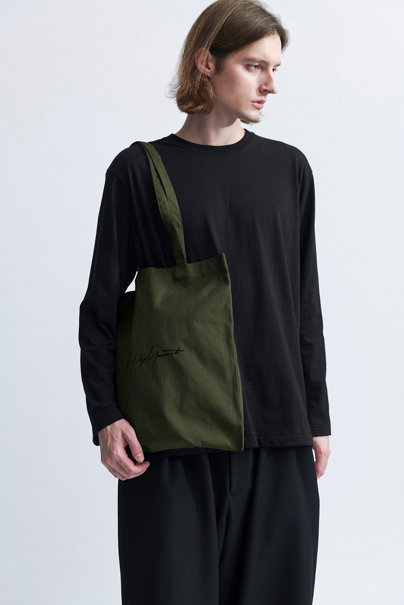 Experience the exclusive WEB SHOP package featuring two black T-shirts and a special tote bag with embroidered signature. These T-shirts, designed through a three-dimensional cutting process, offer both a clean look and comfortable wear. The relaxed fit, combined with the fabric’s drapery, makes it a versatile piece for all genders.