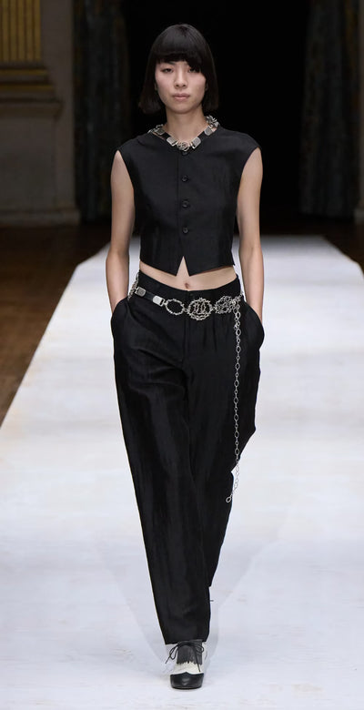 HIGH TWISTED GABARDINE BACKSIDE KNOT DETAIL VEST