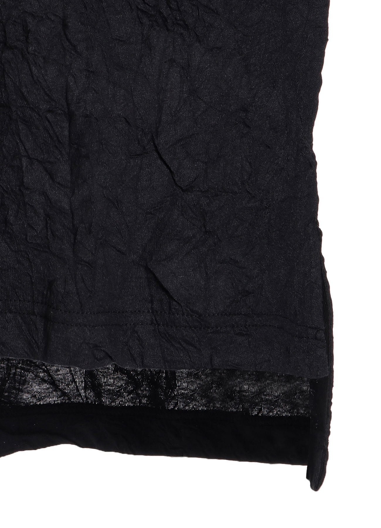 La collezione Primavera/Estate 2025 di Ground Y presenta un top elegante con un design a collo alto prolungato. Offre una sensazione morbida e una vestibilità confortevole intorno al collo. La silhouette è personalizzabile tramite bottoni all'orlo destro. Realizzato con filati in cotone e poliestere, il tessuto presenta una texture unica lavorata a mano.