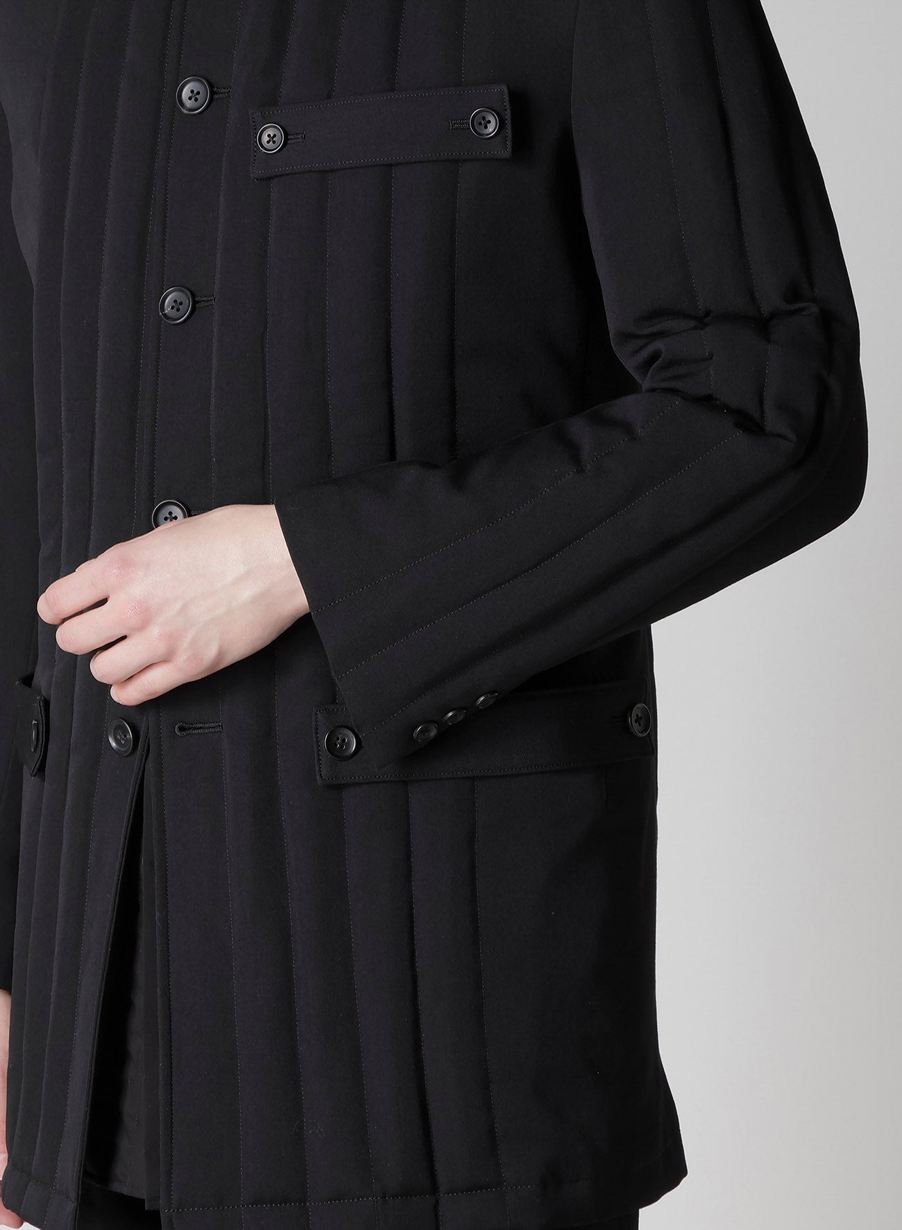 WOOL GABARDINE TAB DETAIL PADED JACKET