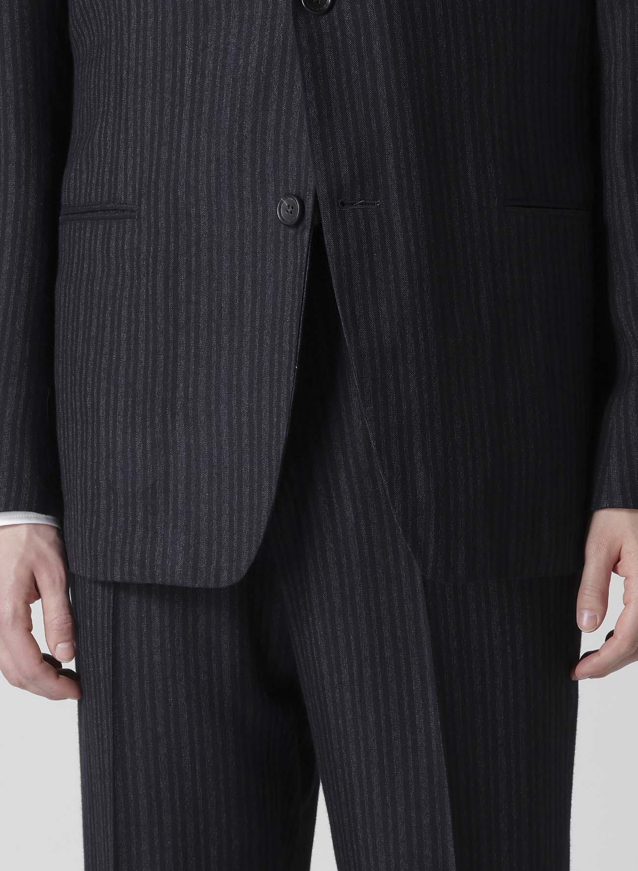 Questa giacca COSTUME D'HOMME presenta un design a due bottoni con spalline per mantenere la forma e offrire un look sofisticato. Realizzata in rayon, cade elegantemente. Il motivo a righe, creato con tecnica di filato tinto, conferisce un fascino d'altri tempi.