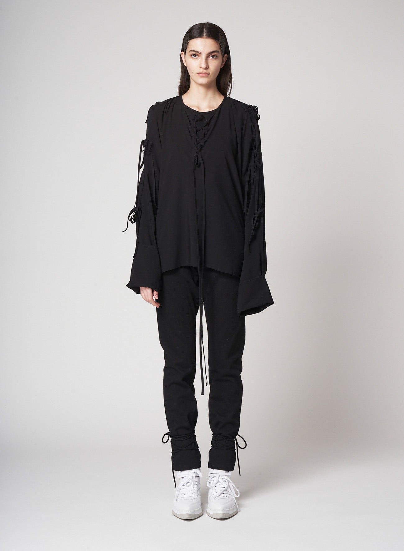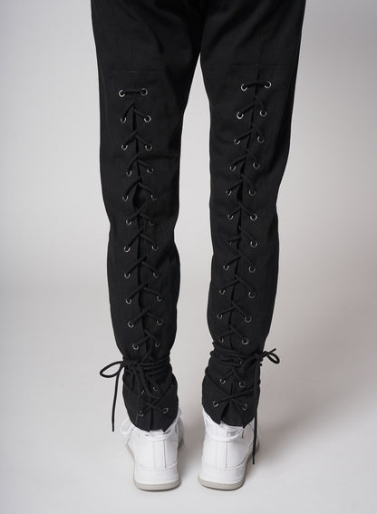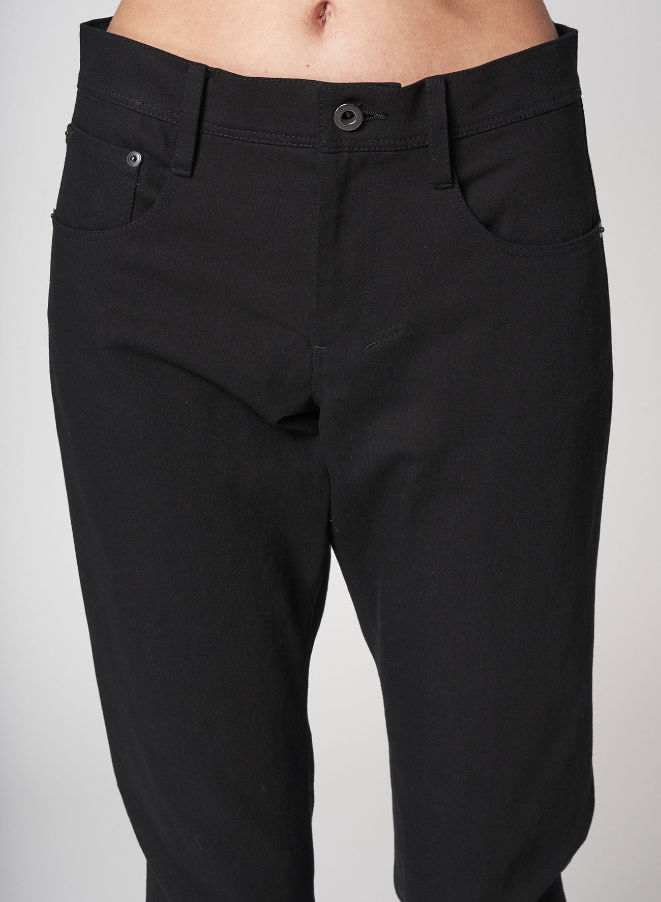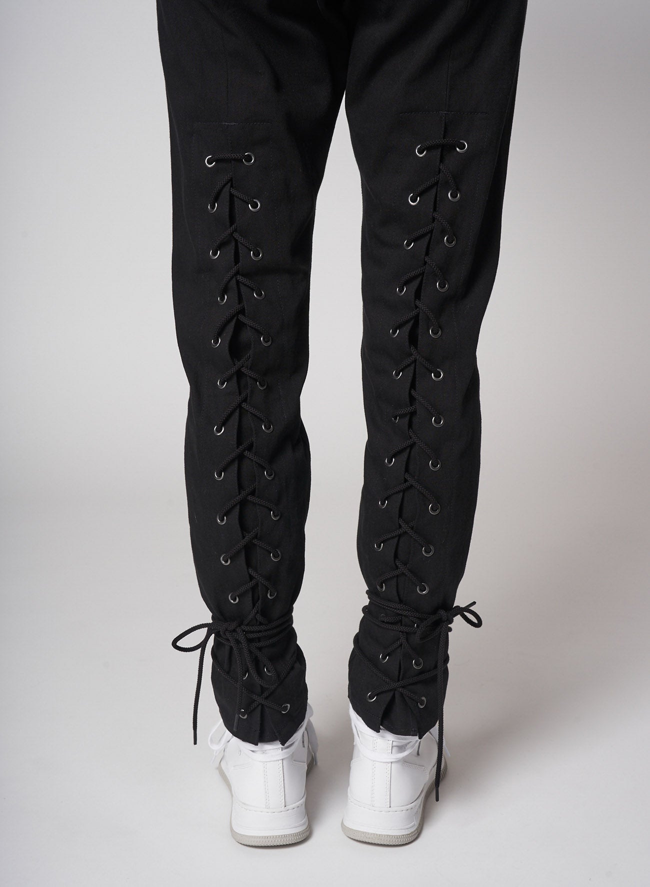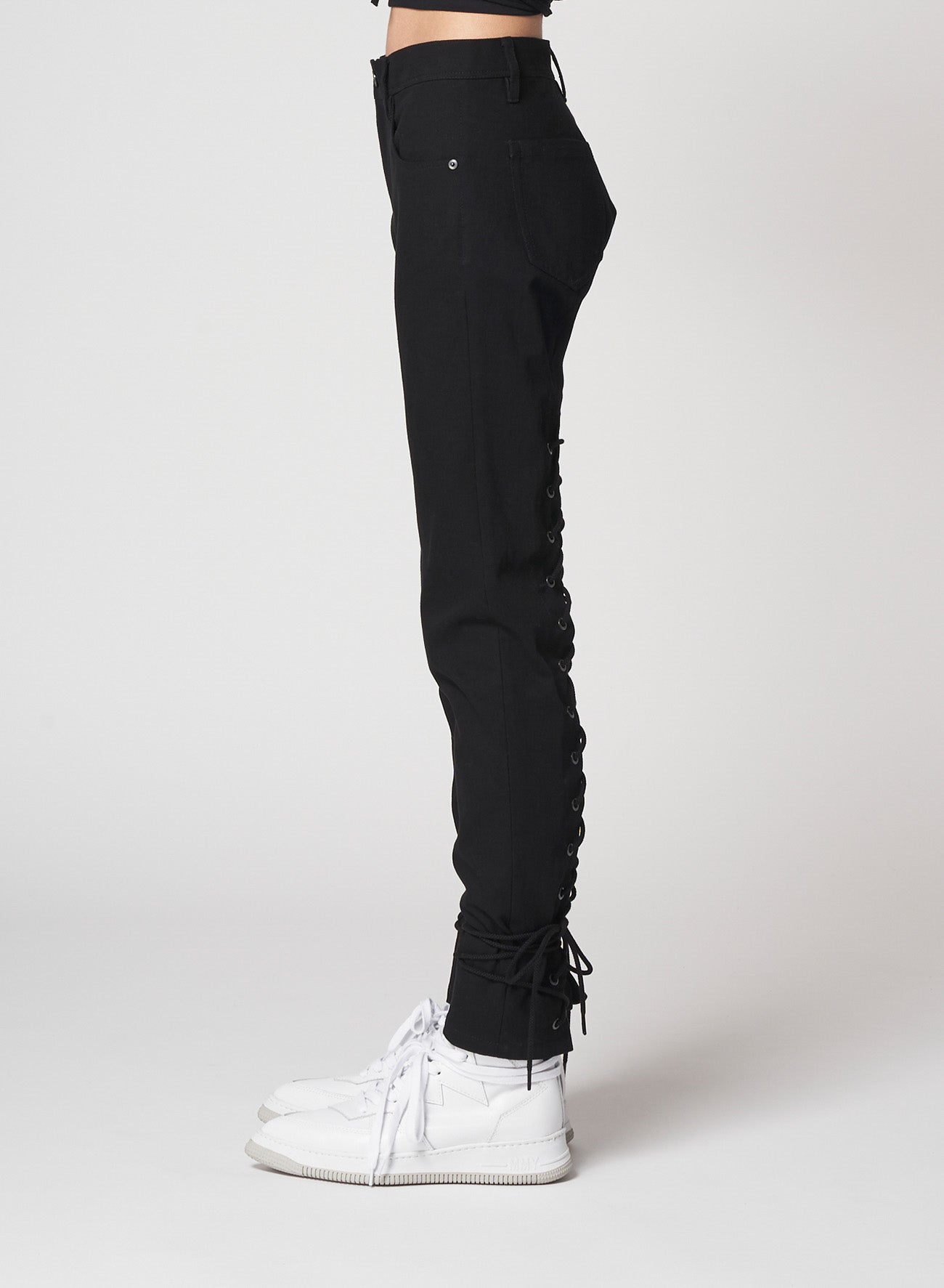 Un denim nero ricco di carattere che diventa più profondo nel colore grazie alla ridipintura. I jeans invecchiano nel tempo, offrendo un aspetto unico. Questi pantaloni skinny hanno un retro con lacci, che consente di indossare i lacci semplicemente o avvolti attorno alle caviglie.