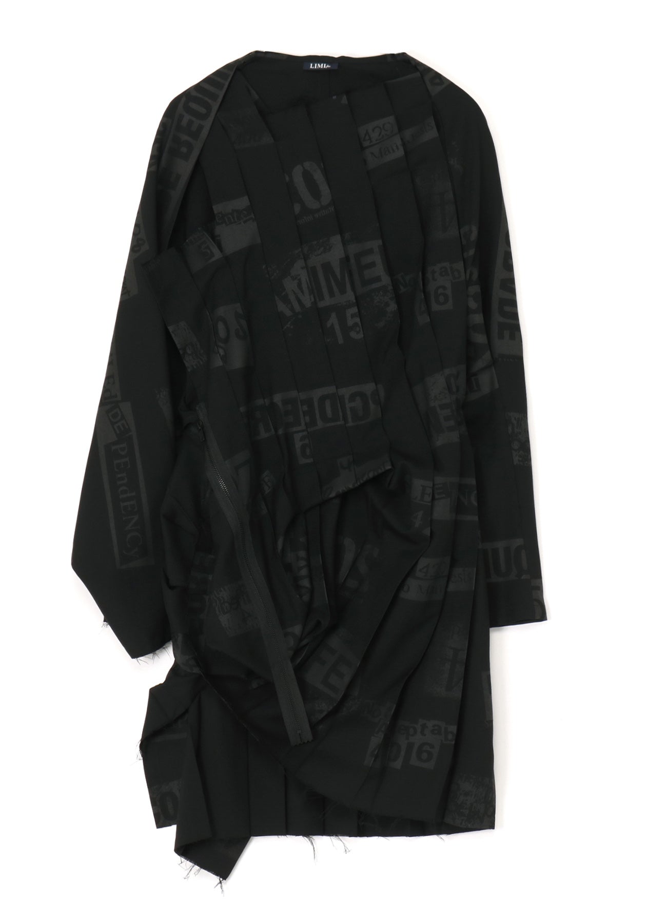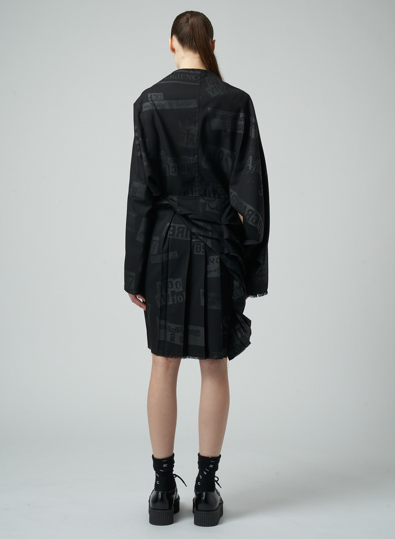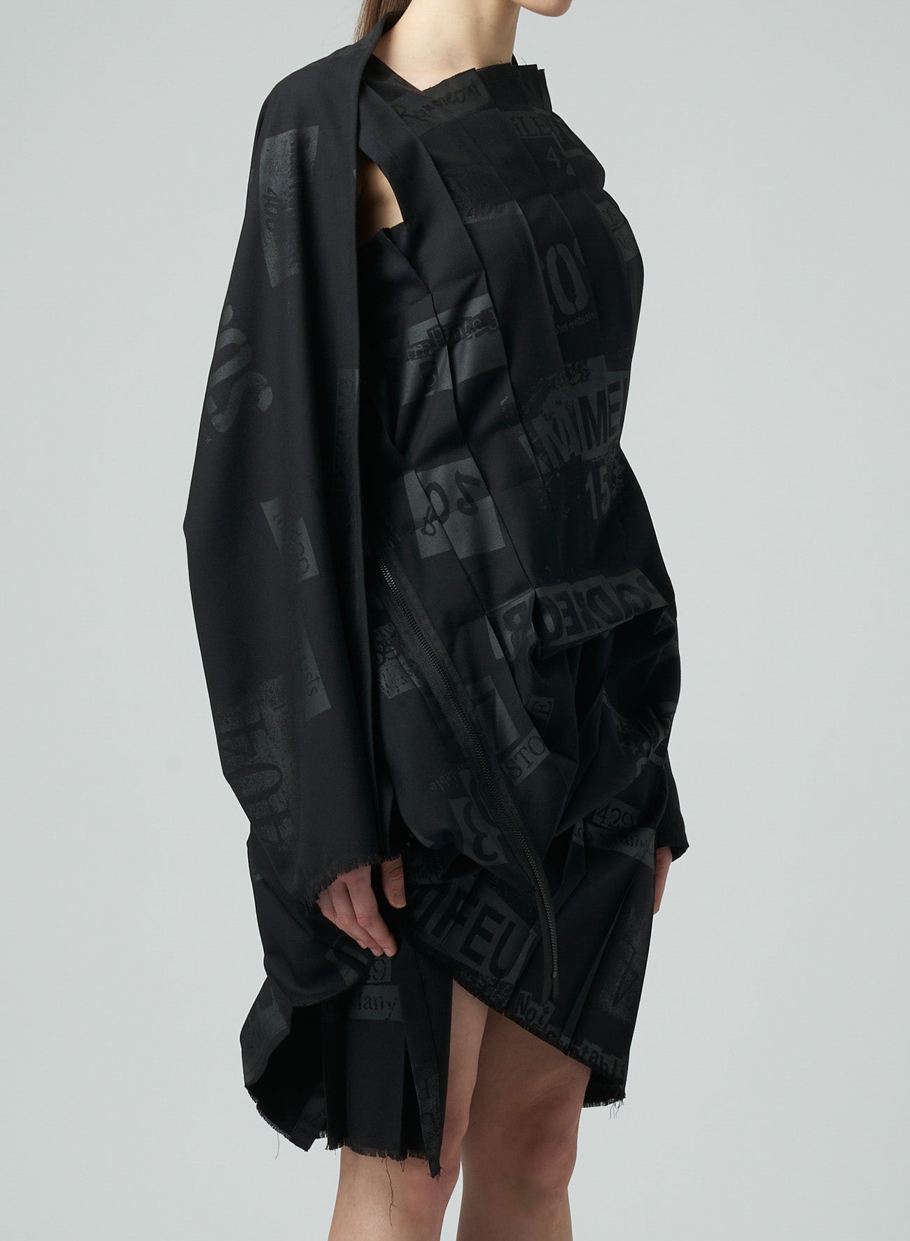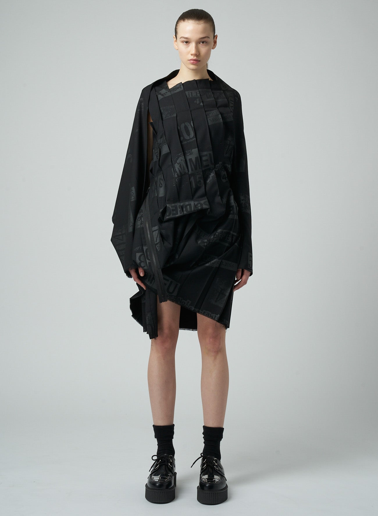 Questo pezzo visivo presenta codici di stato HTTP che esprimono umorismo e angoscia attraverso vari caratteri su un vestito stampato in serigrafia a pigmento. Il design unico combina tessuto plissettato con un orlo arricciato, creando un effetto snellente dalla schiena. Una manica è aperta, permettendo diverse opzioni di stile. Il vestito è lungo fino al ginocchio e abbastanza versatile per essere indossato a strati.