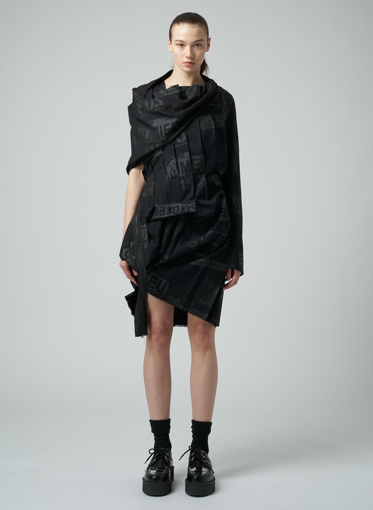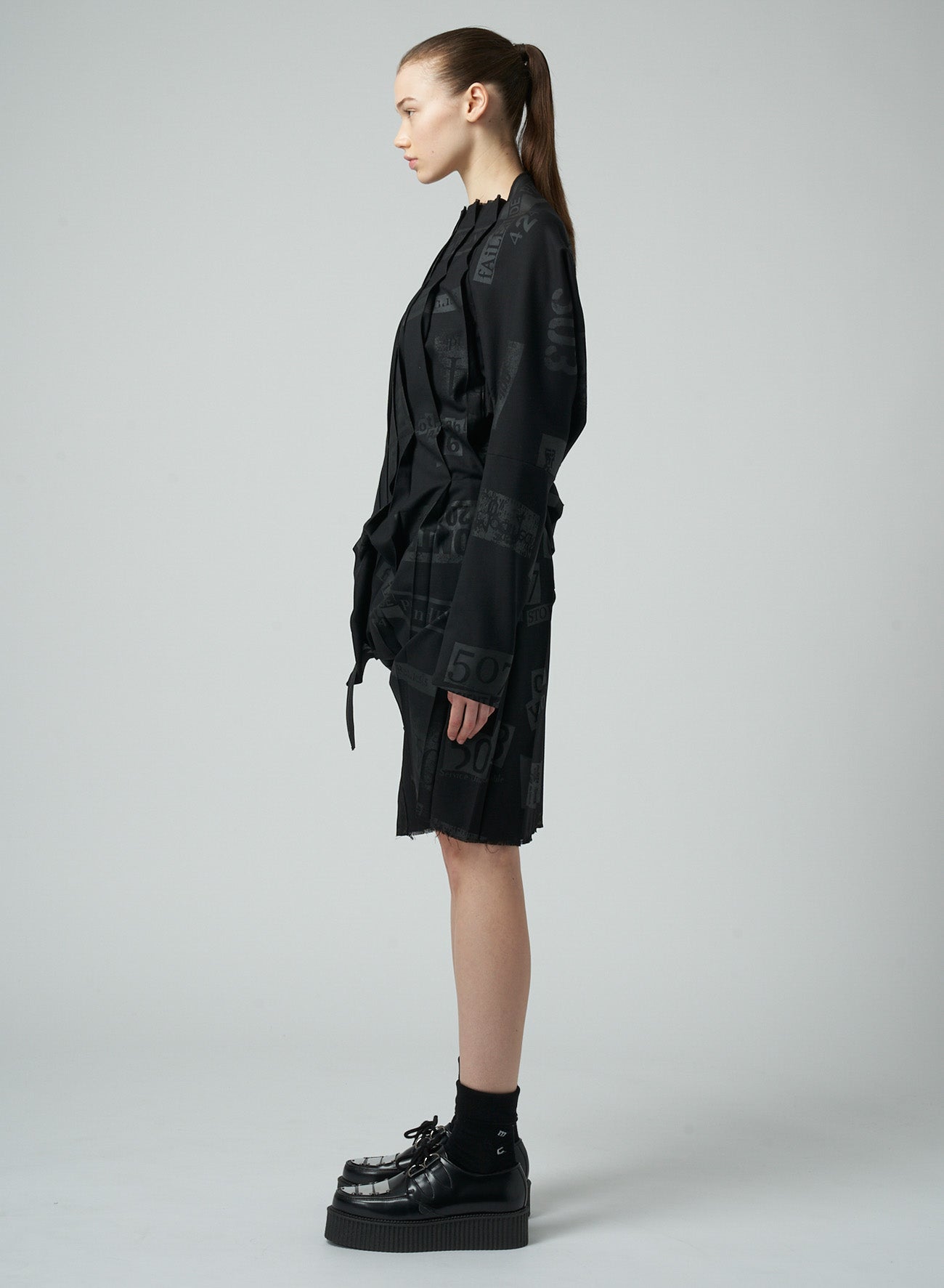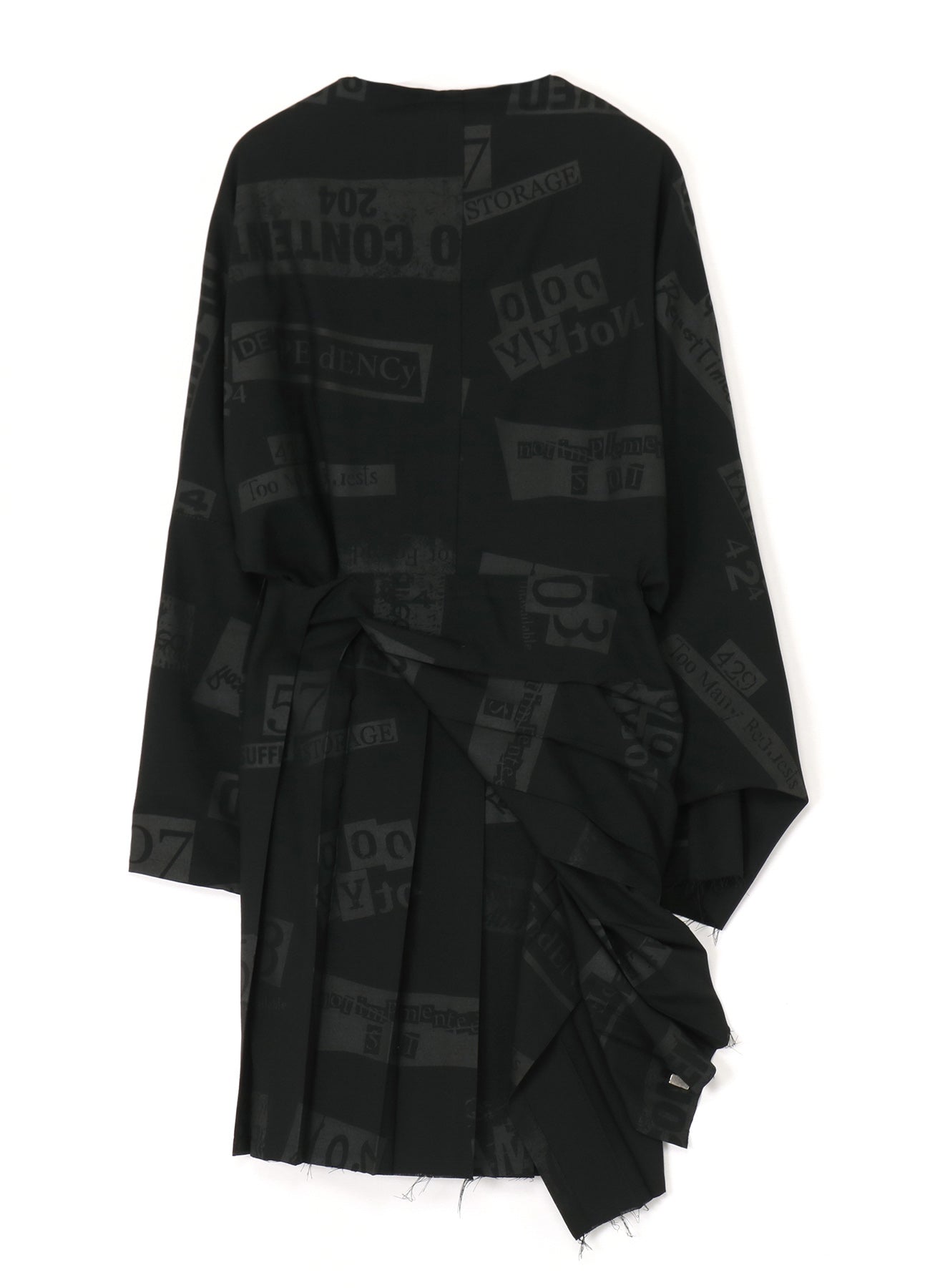 PRINTED SERGE DRESS WITH PLEATED FRONT DETAILS