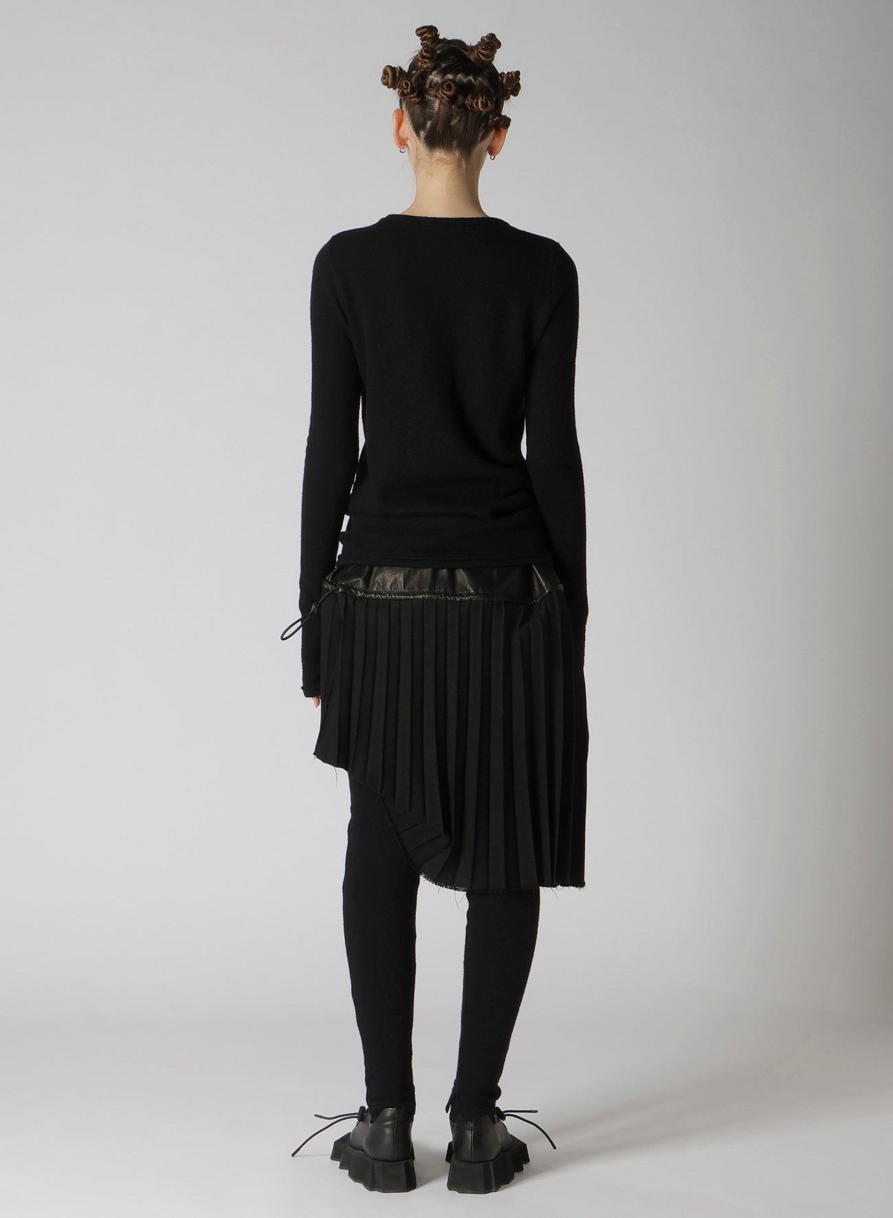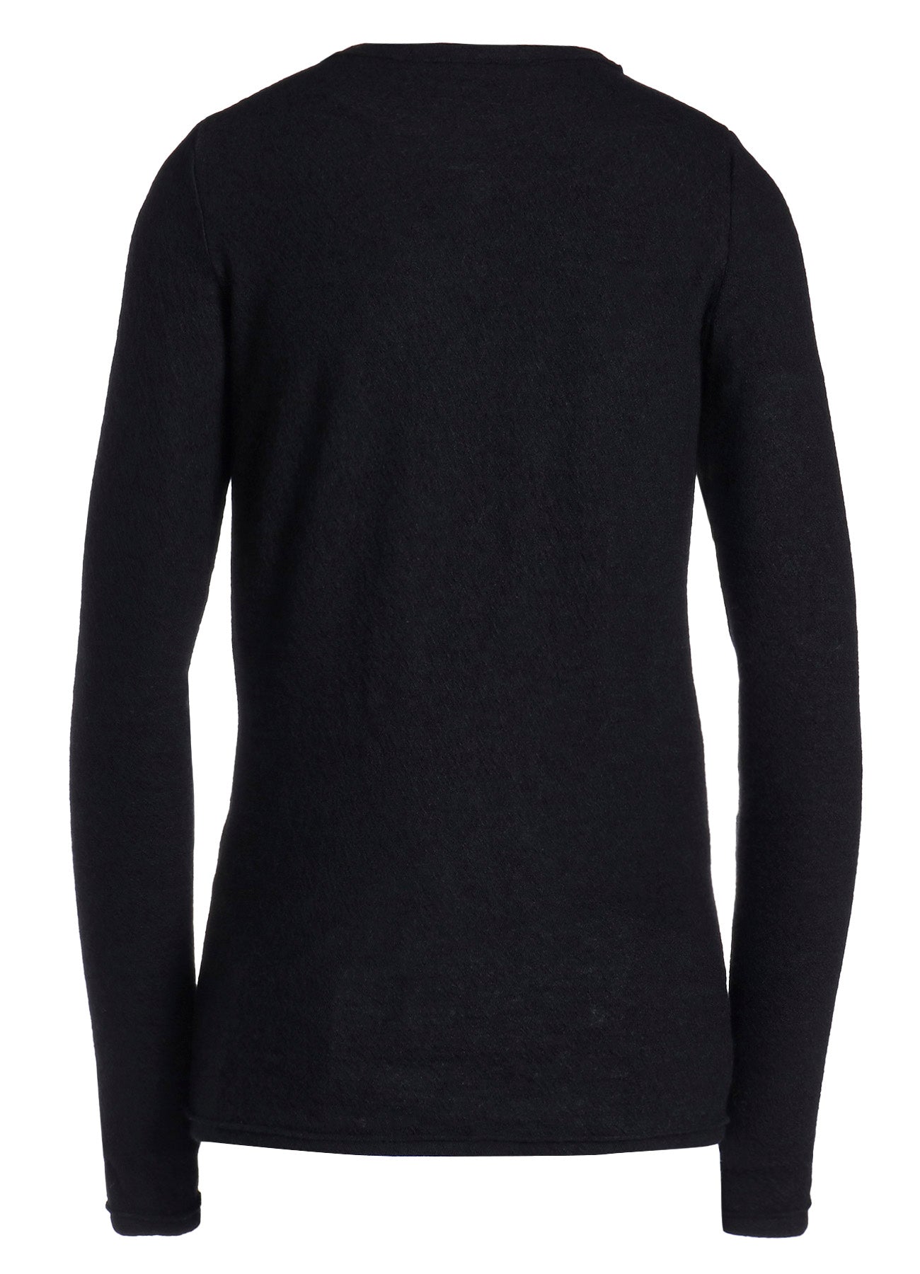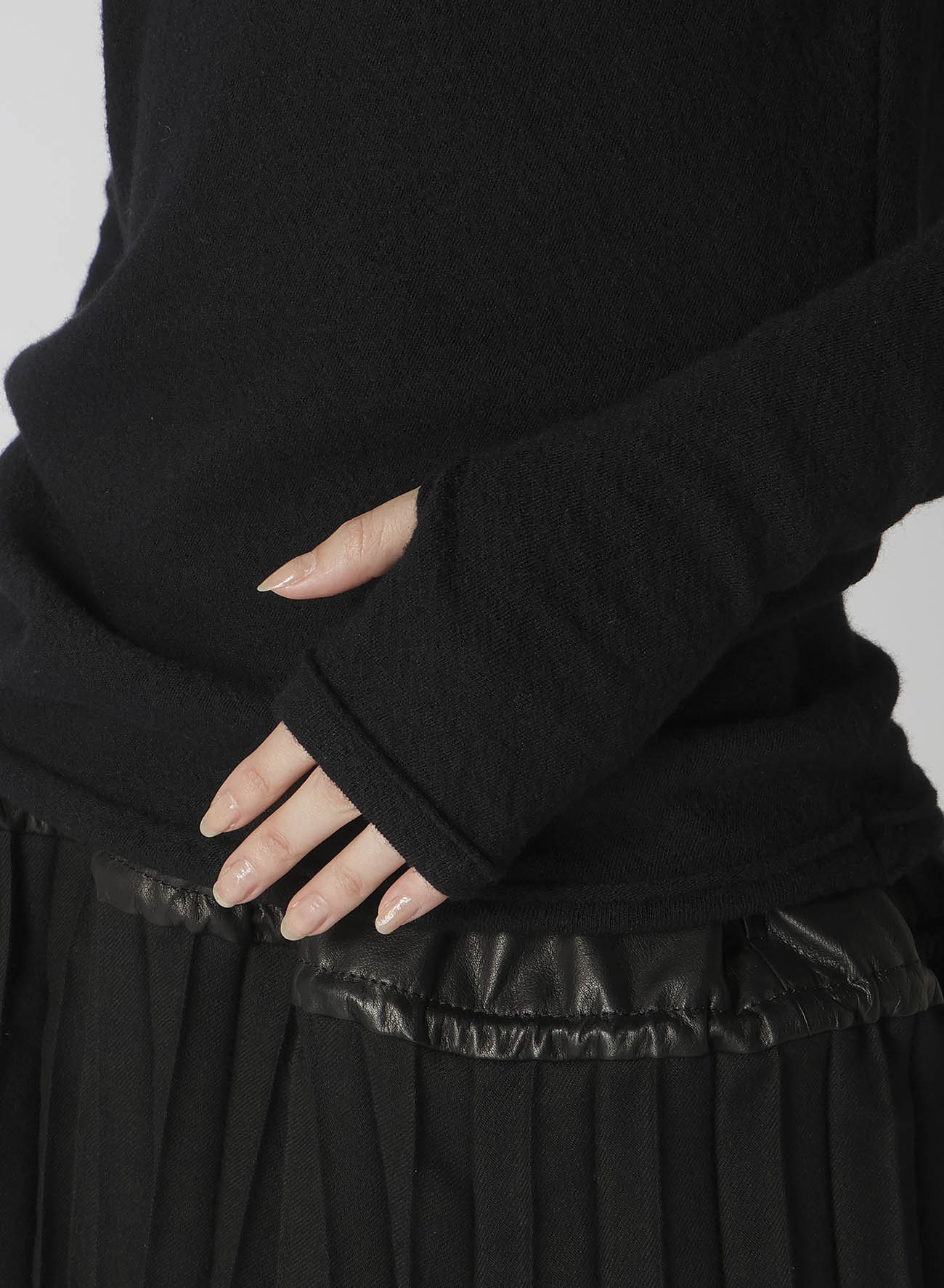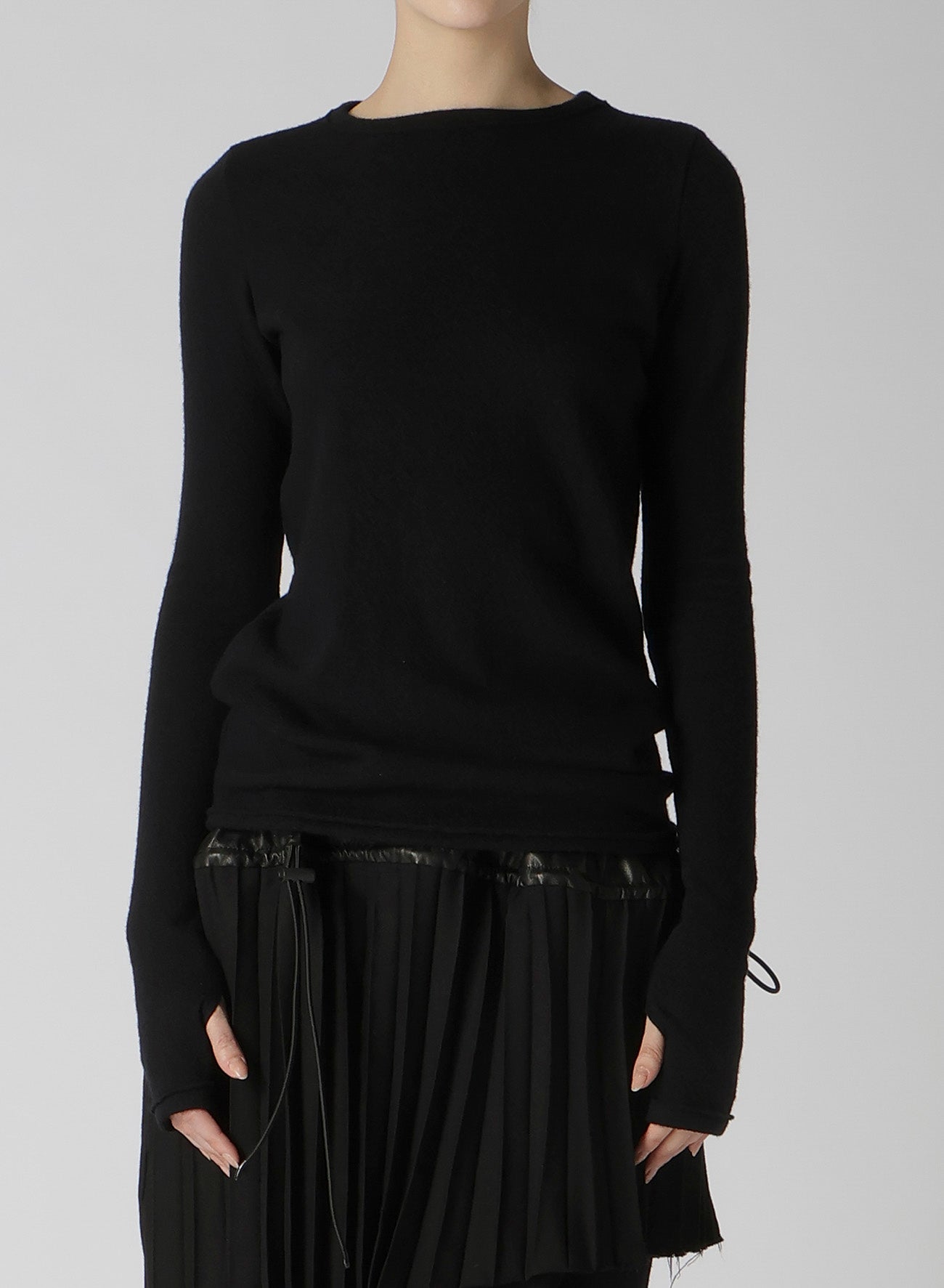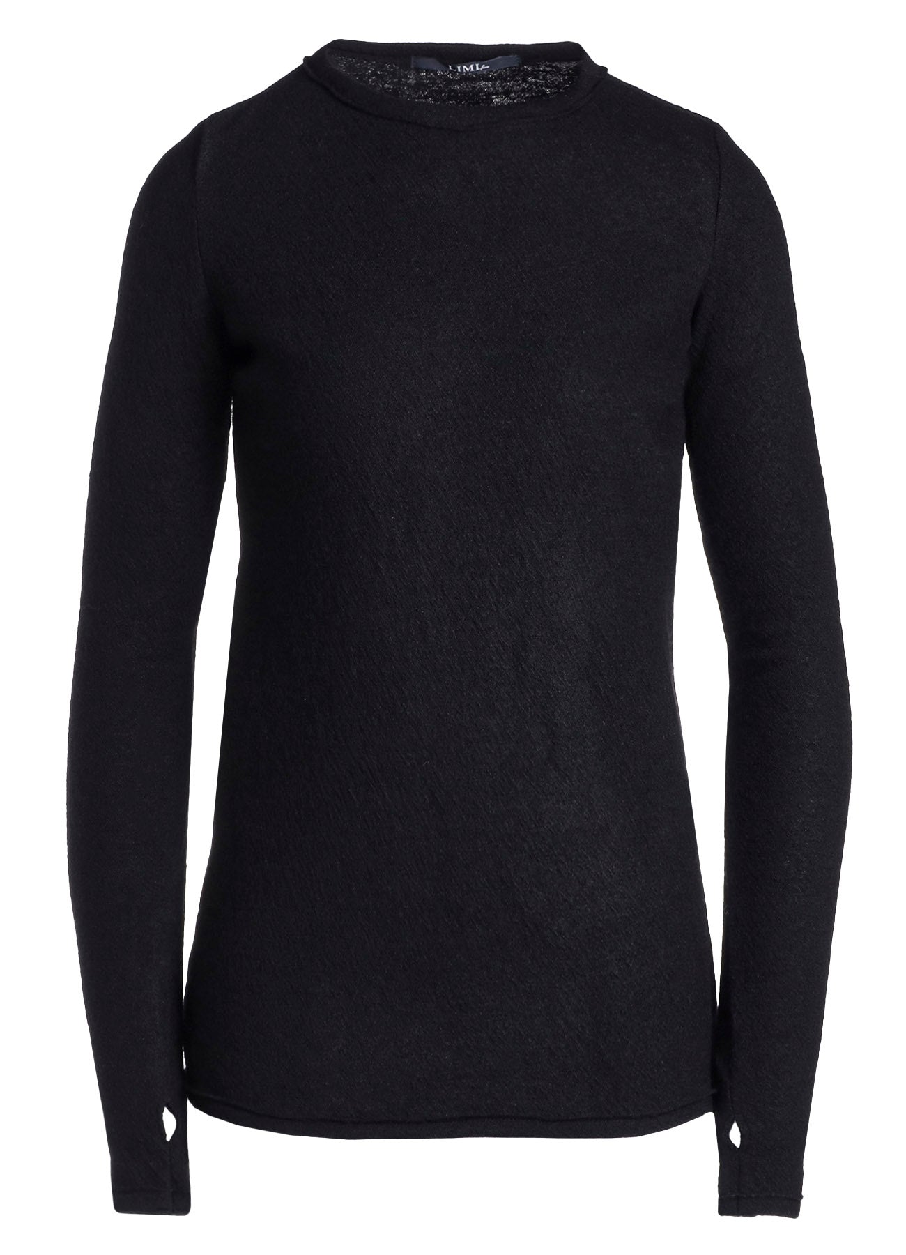 Questo prodotto è un top a maniche lunghe in lana a punto semplice con una trama unica. Il tessuto è fulled per migliorare la sua consistenza, risultando in una sensazione rilassata e gonfia. Presenta fori per il pollice per maggiore calore e versatilità nell'indossarlo.