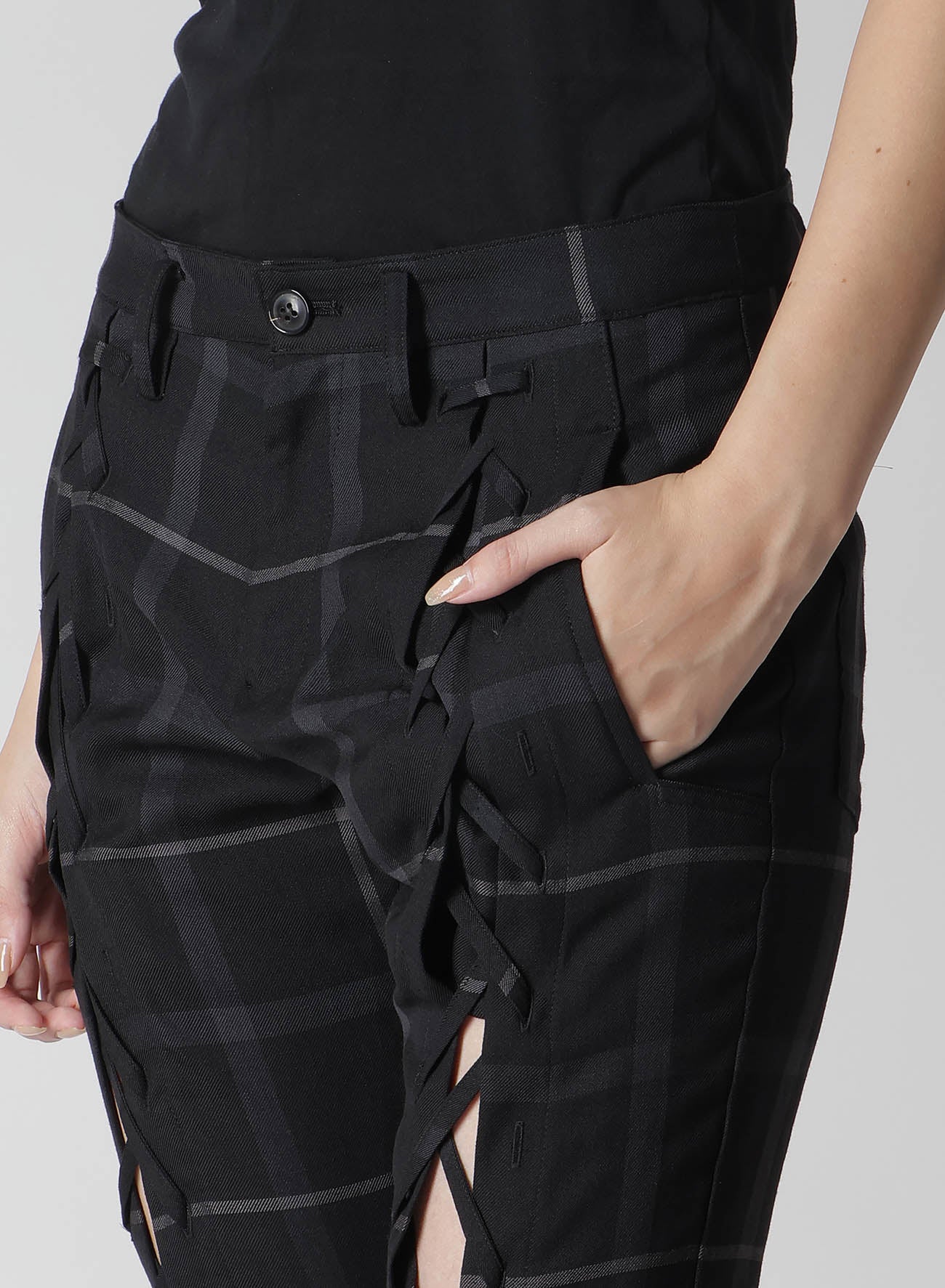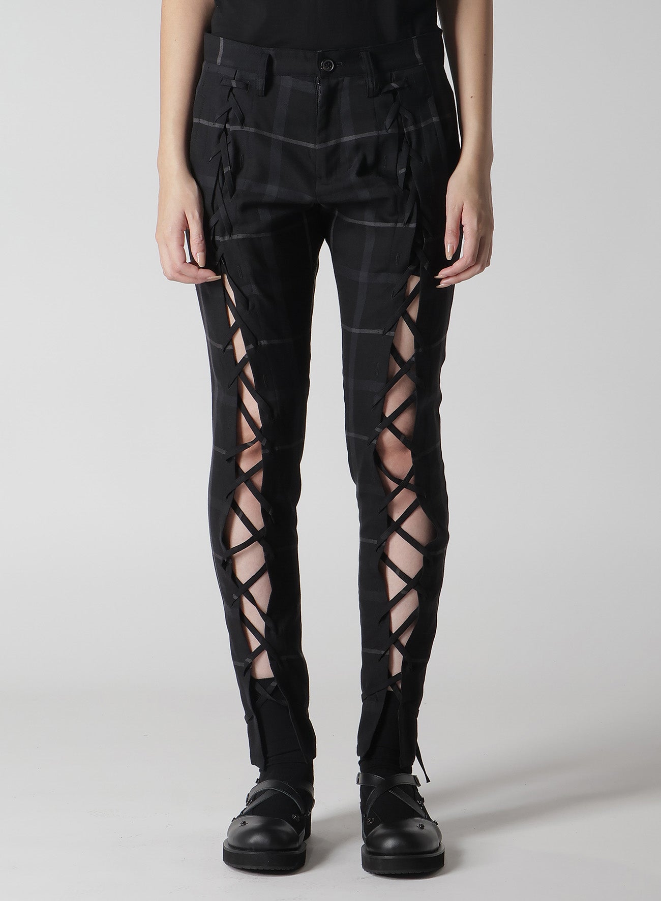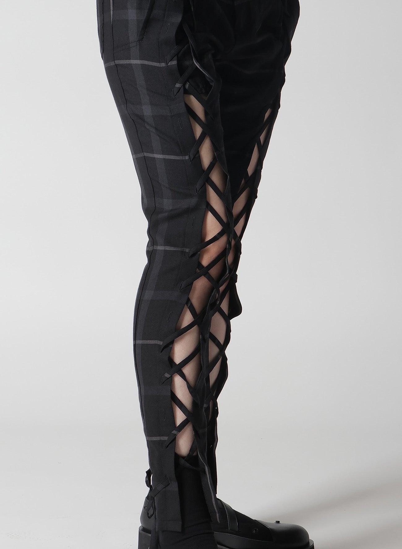 PLAID LACE-UP PANTS