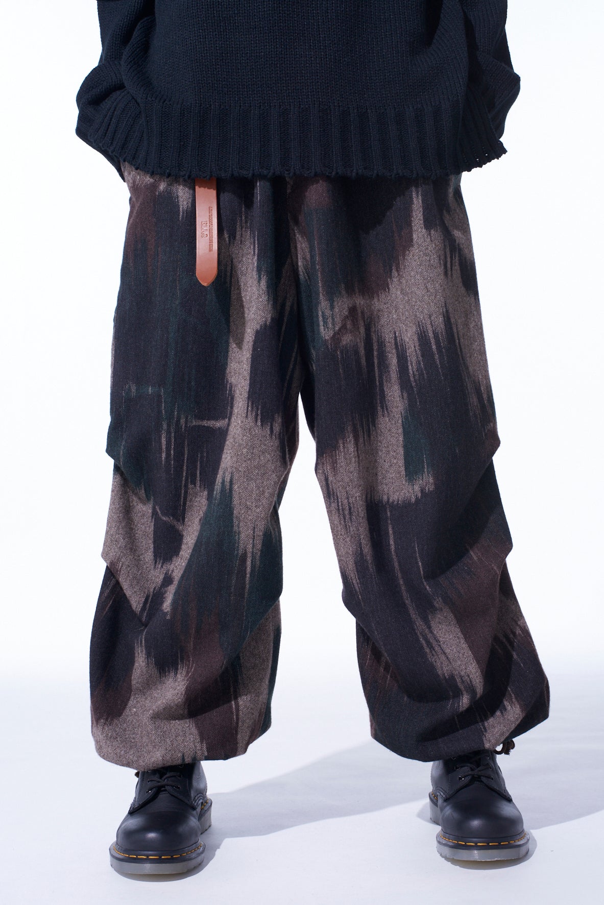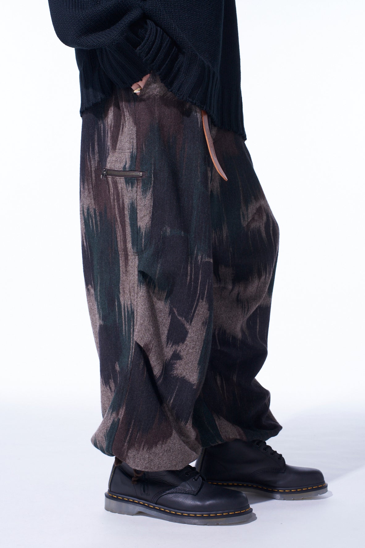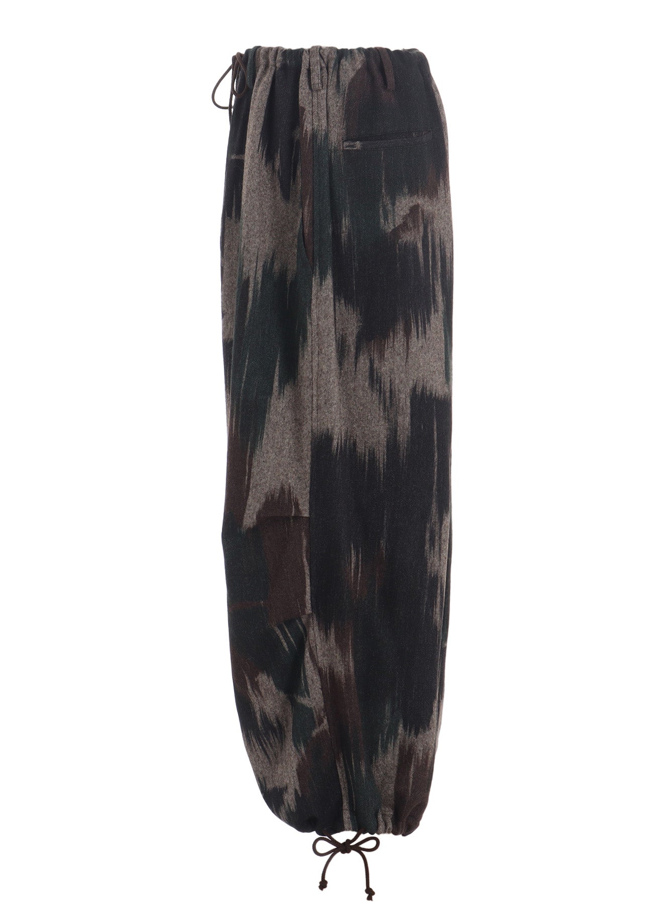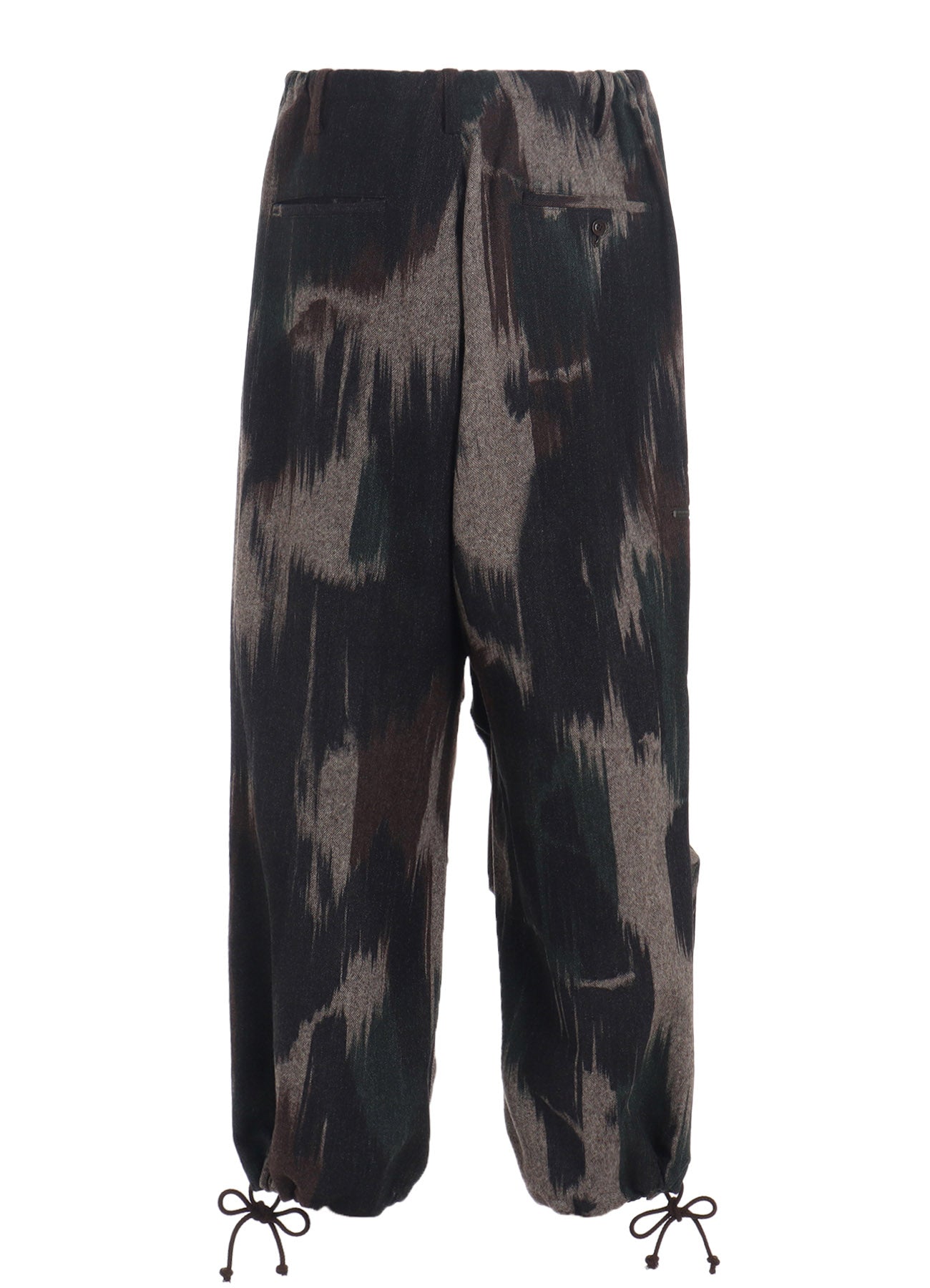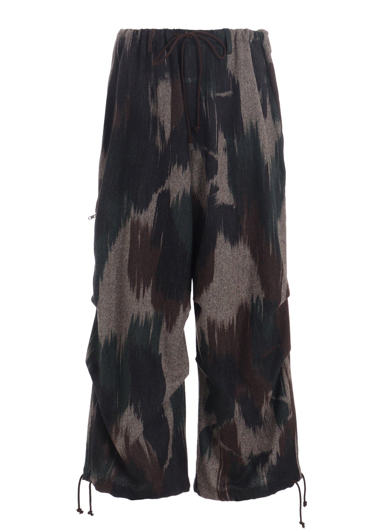 CAMOUFLAGE TWEED KNEE TUCK WIDE PANTS