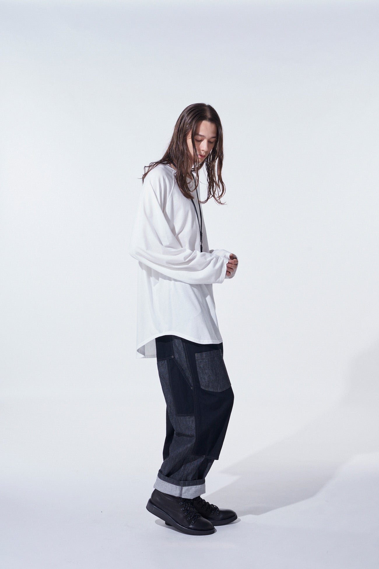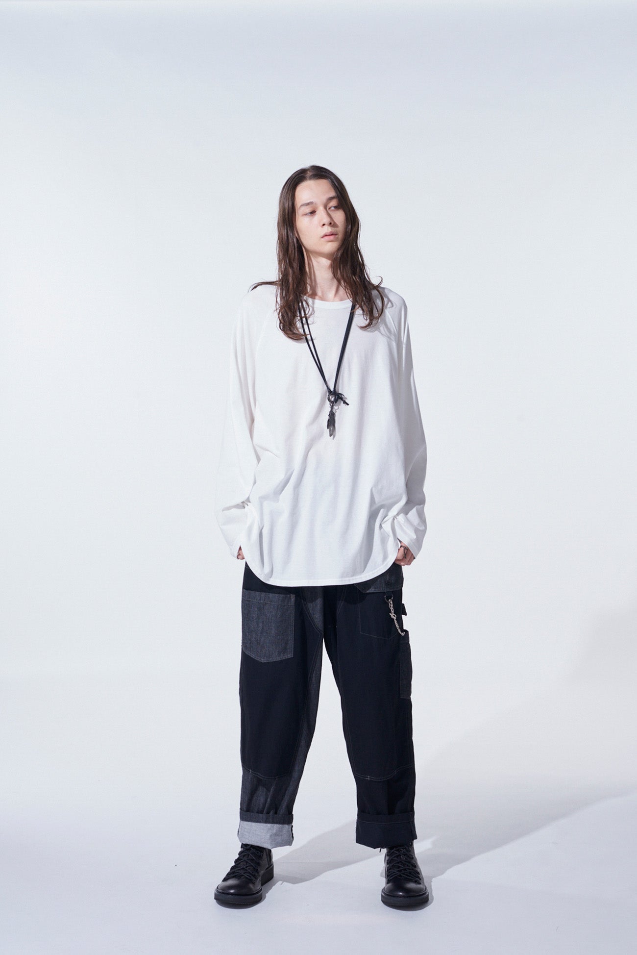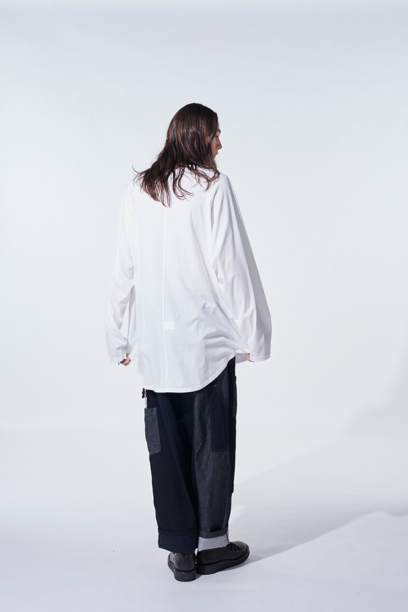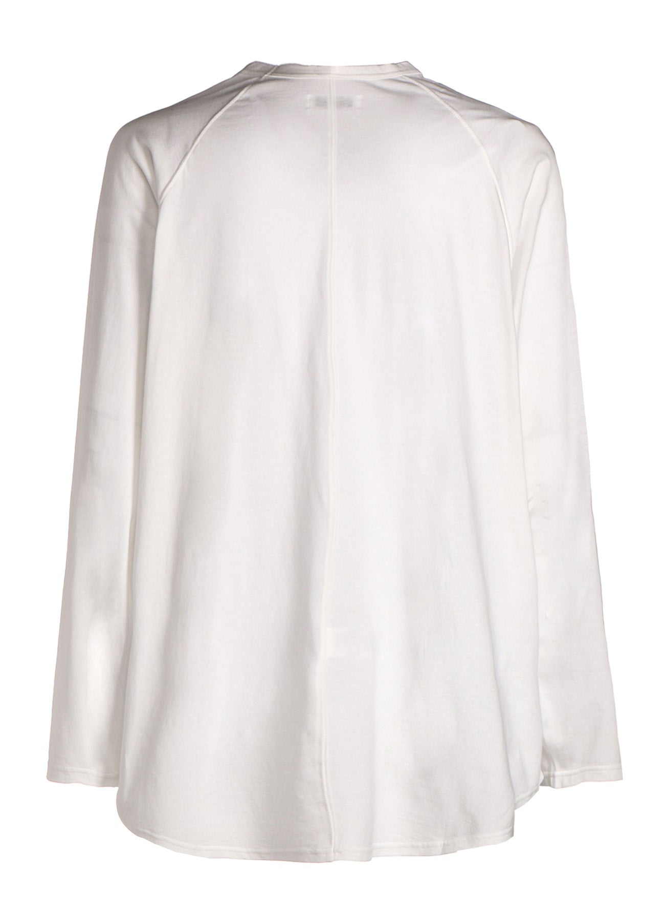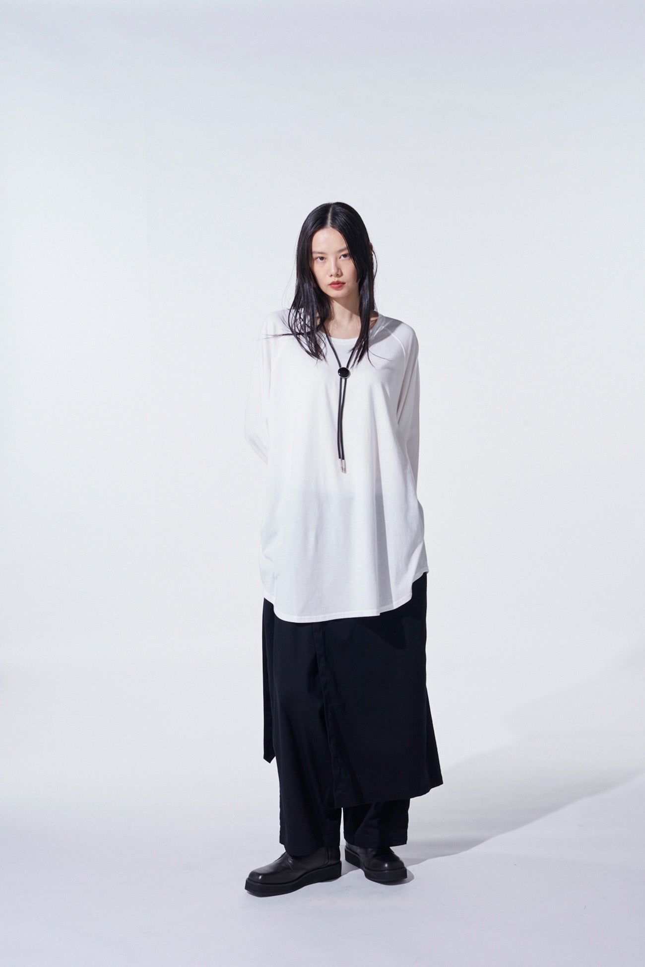 Un top minimalista a maniche raglan che si concentra sulla silhouette, con transizioni di cucitura dello stesso colore dal collo all'ascella e una combinazione unica al centro della schiena per un look oversize esclusivo. L'orlo arrotondato consente un facile accesso alle tasche e valorizza gli accessori. Realizzato in morbido punto semplice per l'uso quotidiano e la durata.
