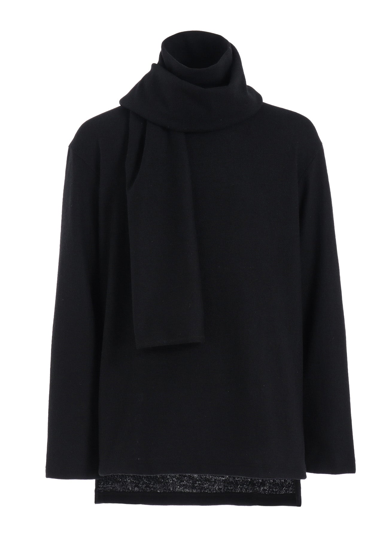 AIRY JERSEY HIGH-NECK LONG-SLEEVED T-SHIRT WITH STOLES
