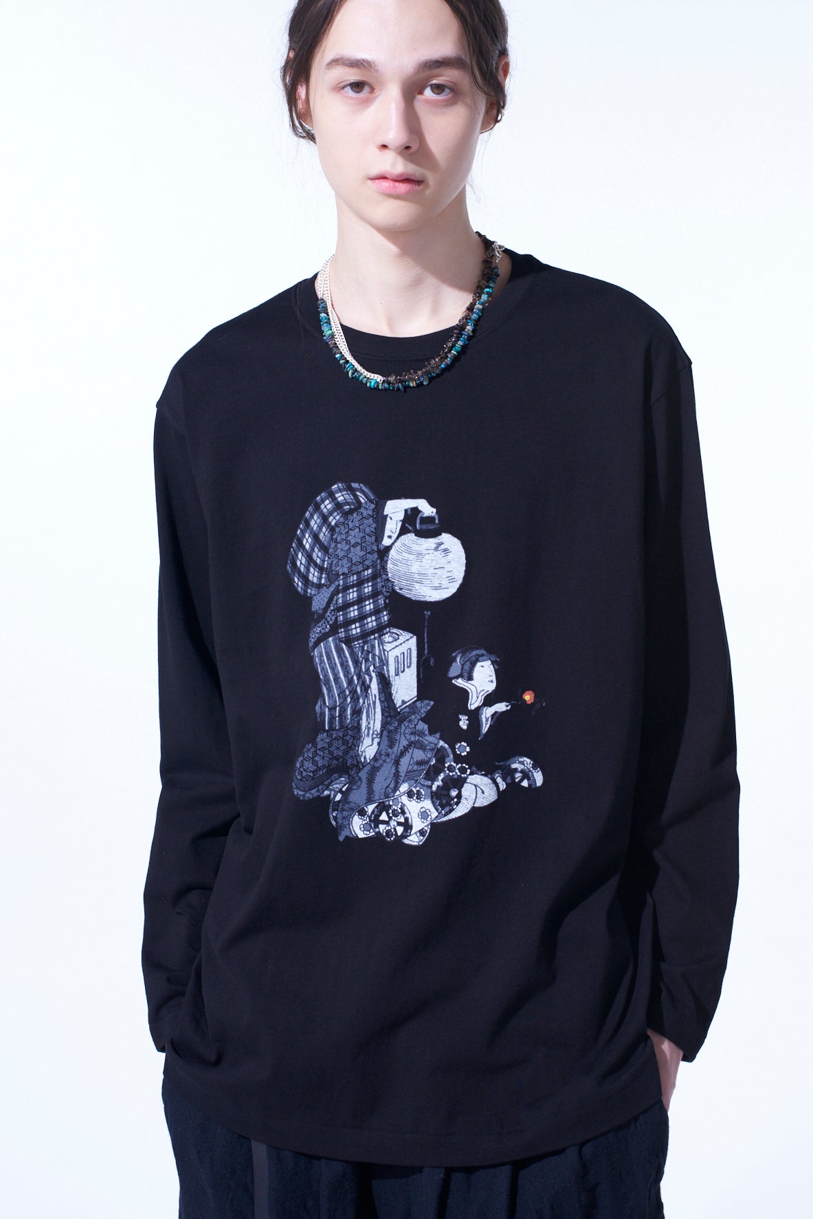 "FLOWERS AND LANTERNS" UKIYO-E GRAPHIC LONG-SLEEVED T-SHIRT
