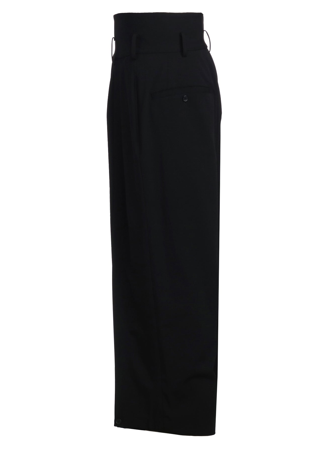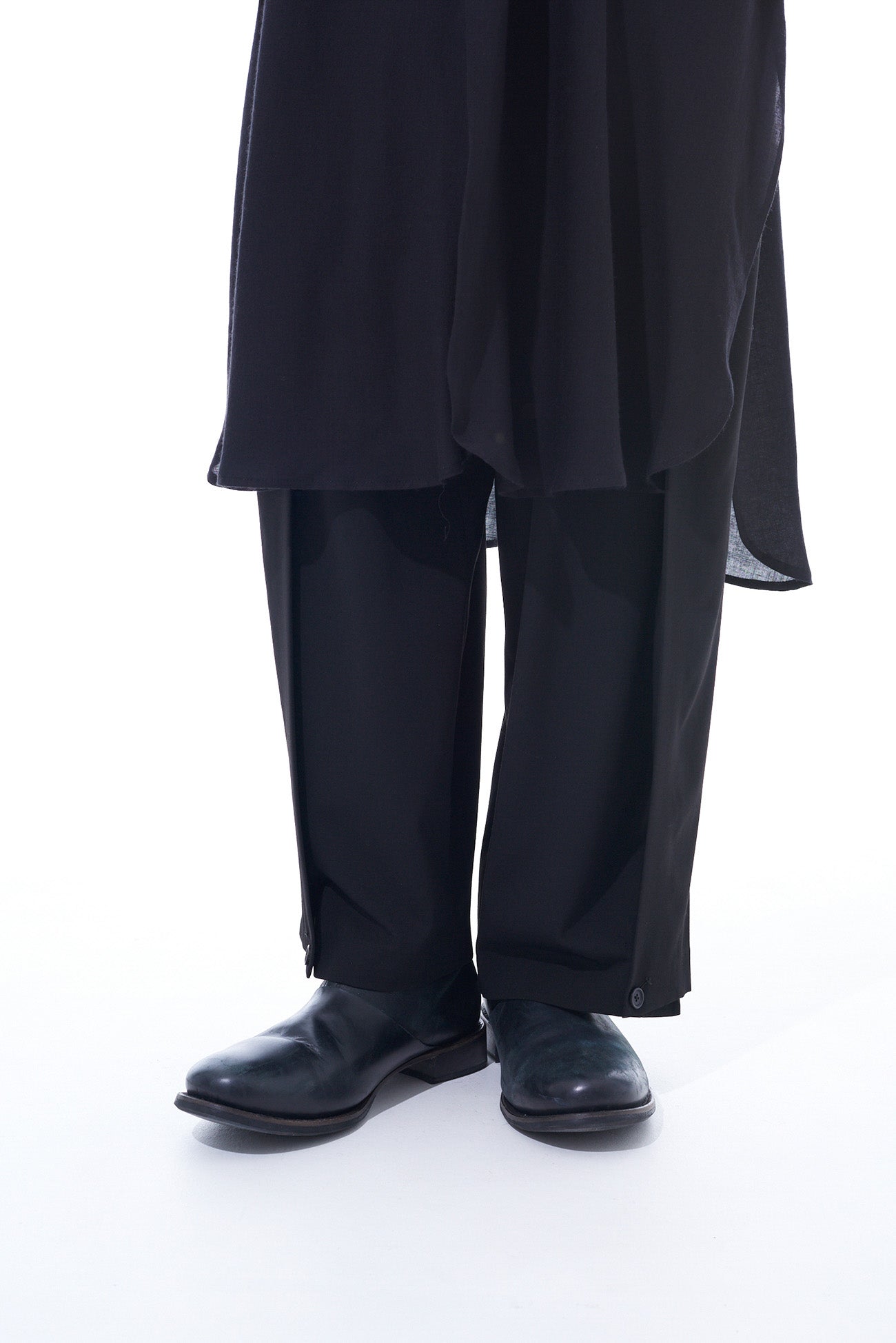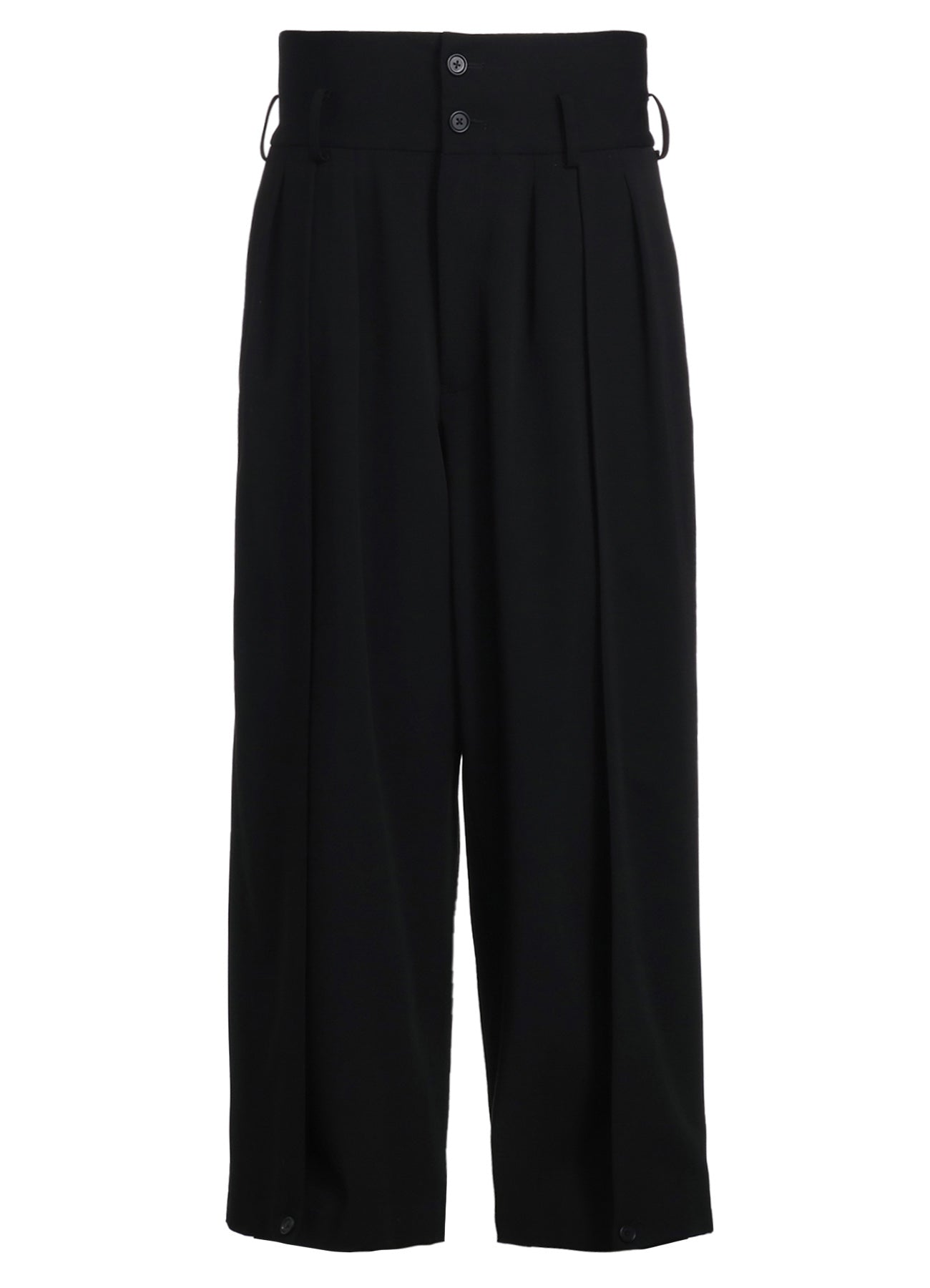 PE/RAYON GABARDINE STRETCH 2 TUCK TAPERED WIDE PANTS WITH A BUTTON SLIT AT THE HEM