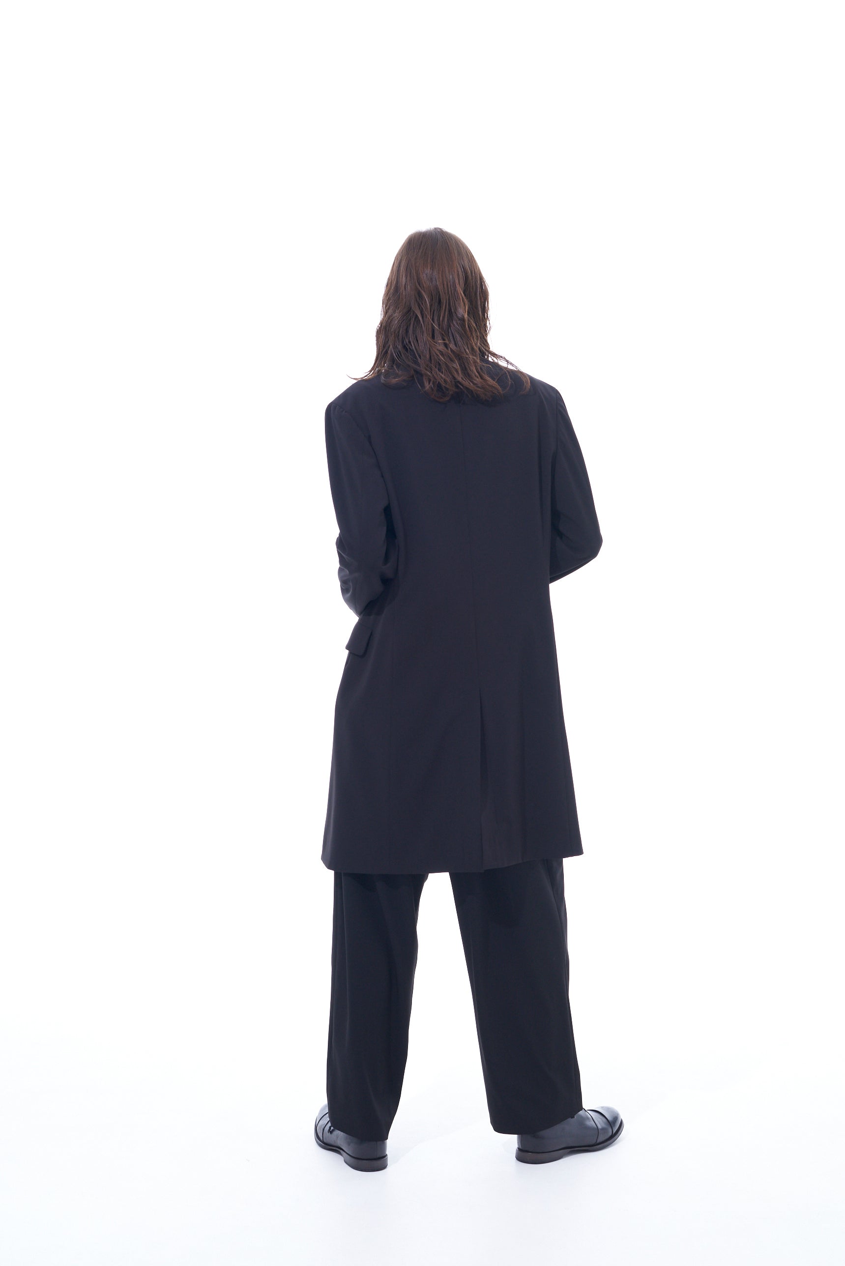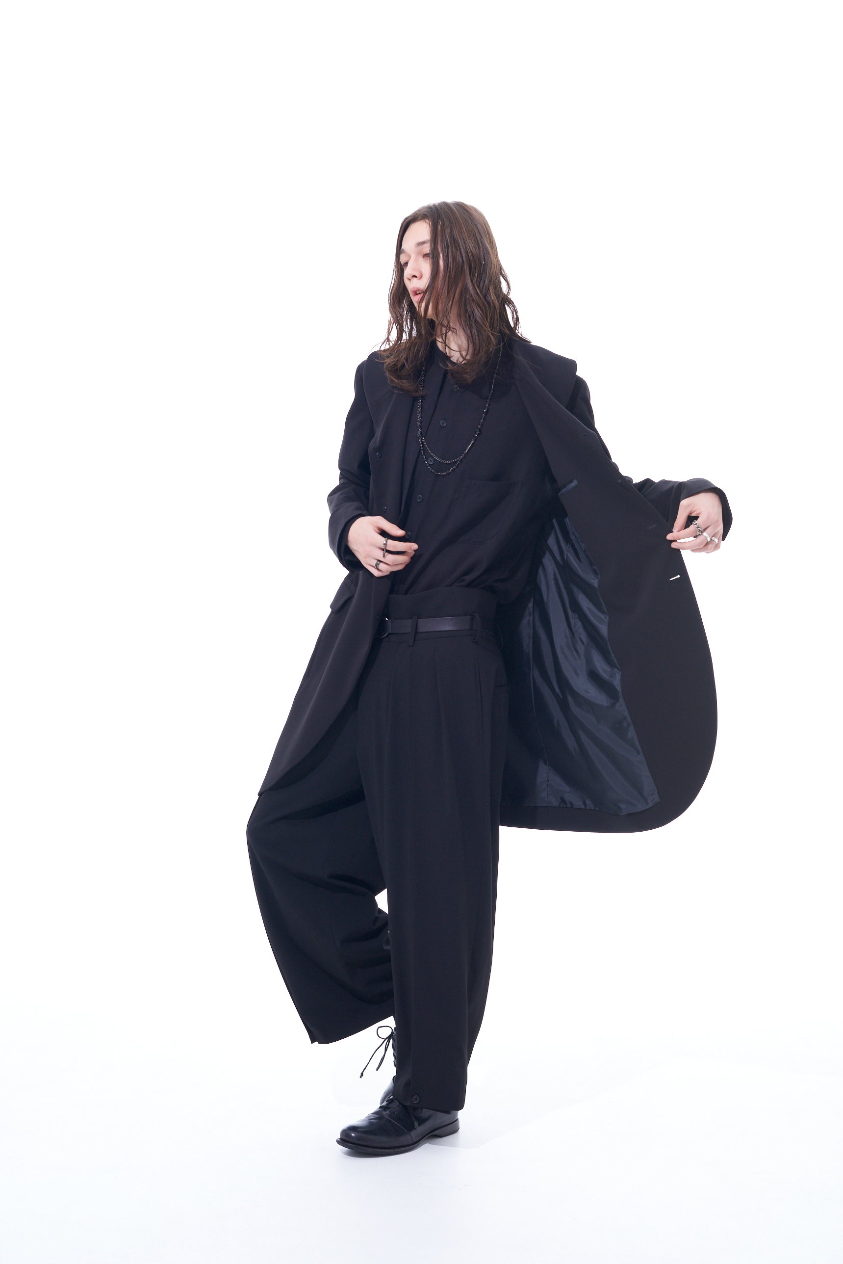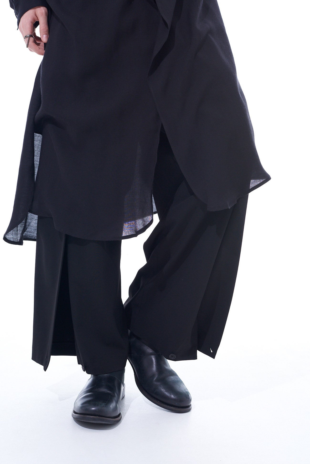 PE/RAYON GABARDINE STRETCH 2 TUCK TAPERED WIDE PANTS WITH A BUTTON SLIT AT THE HEM
