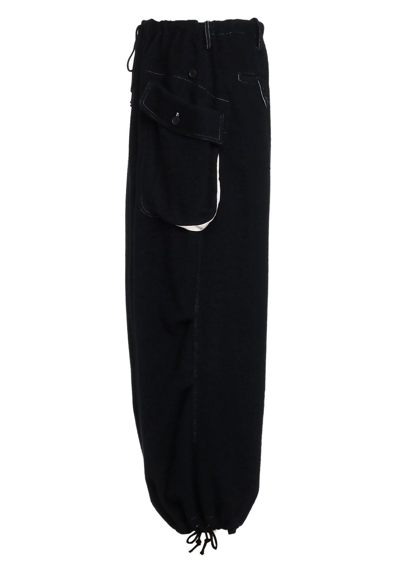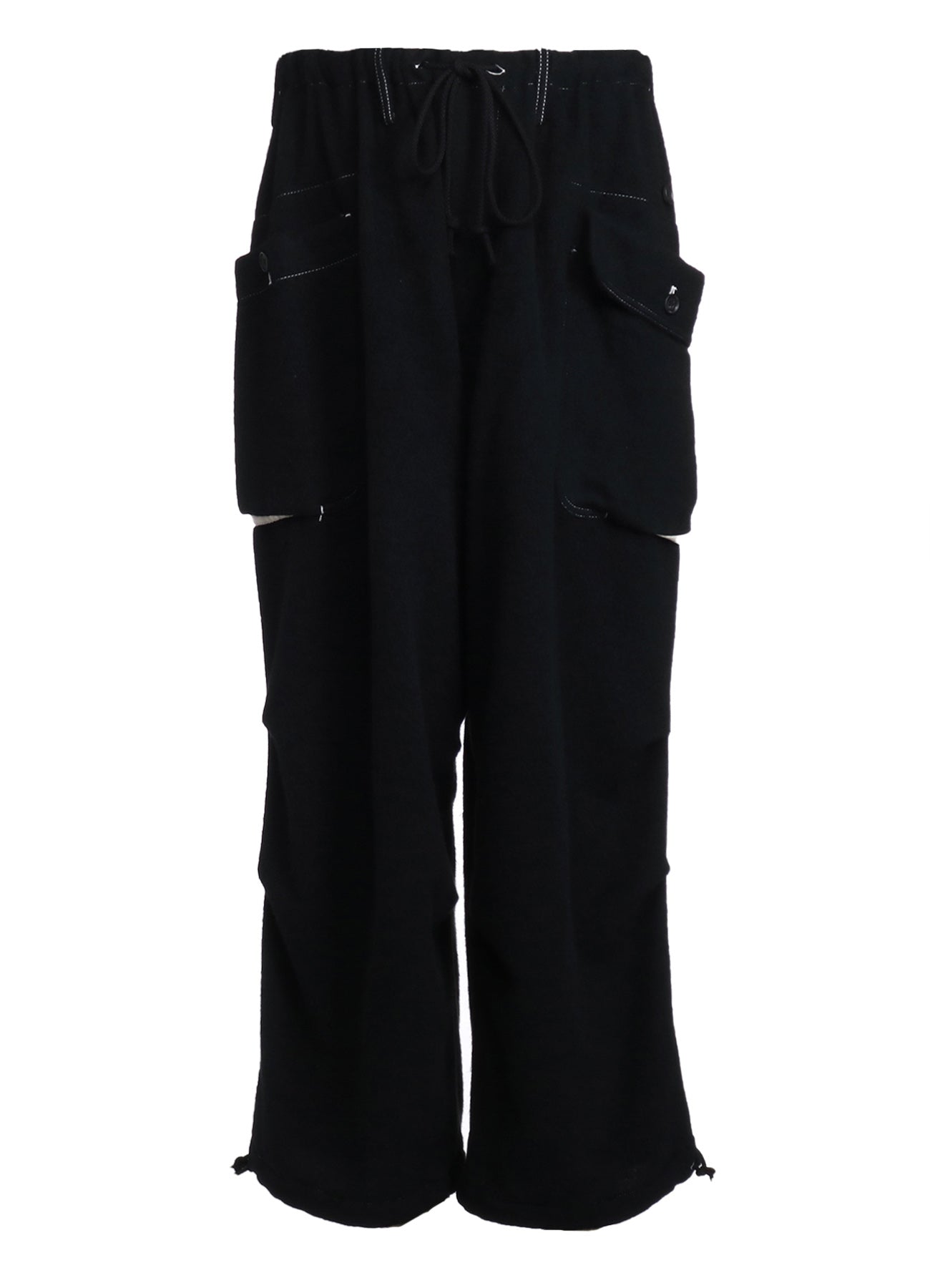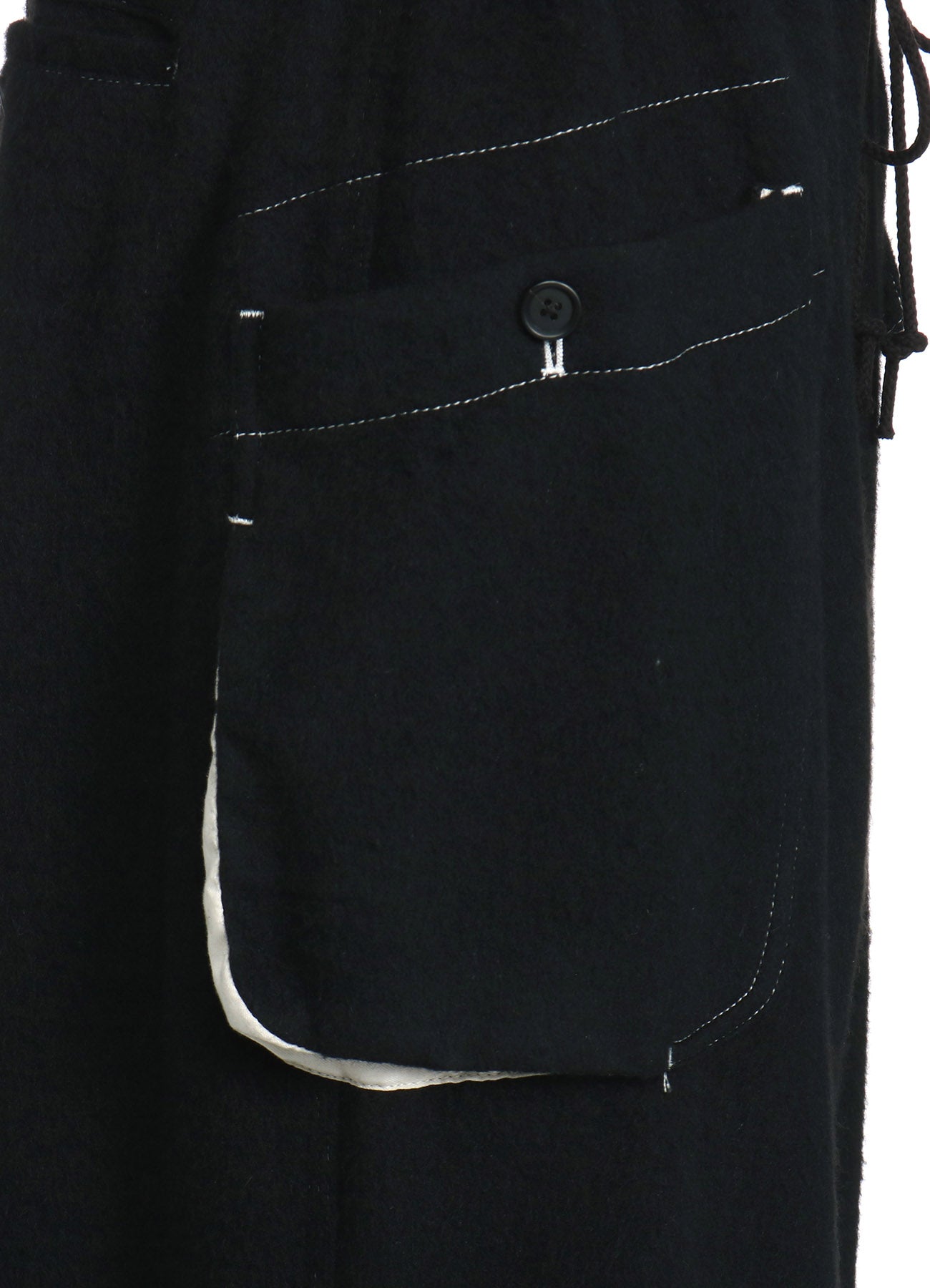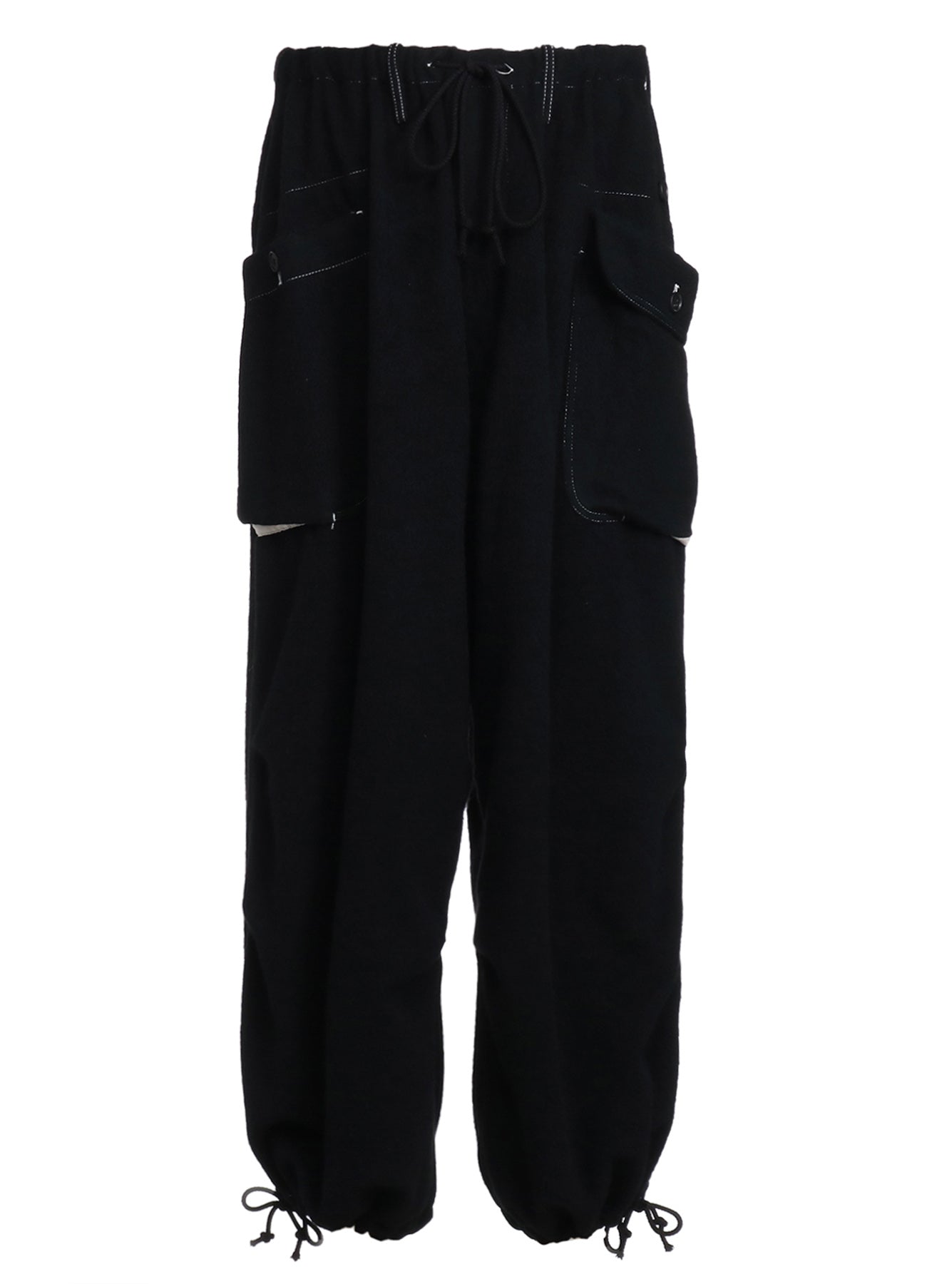 ECO WOOL BEAVER WHITE STITCH CARGO PANTS WITH ASYMMETRICAL POCKETS