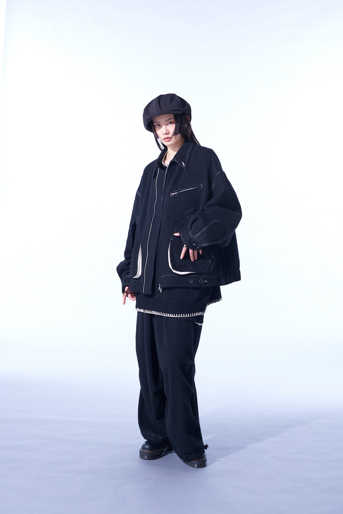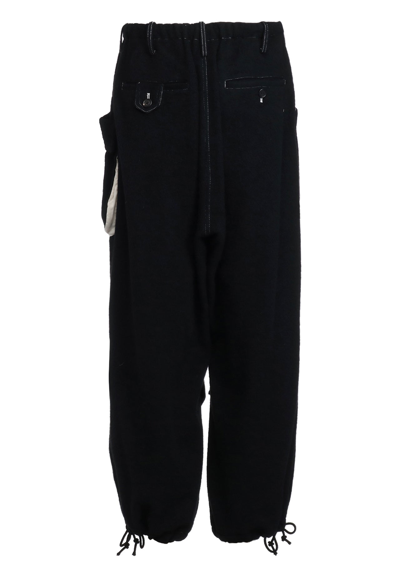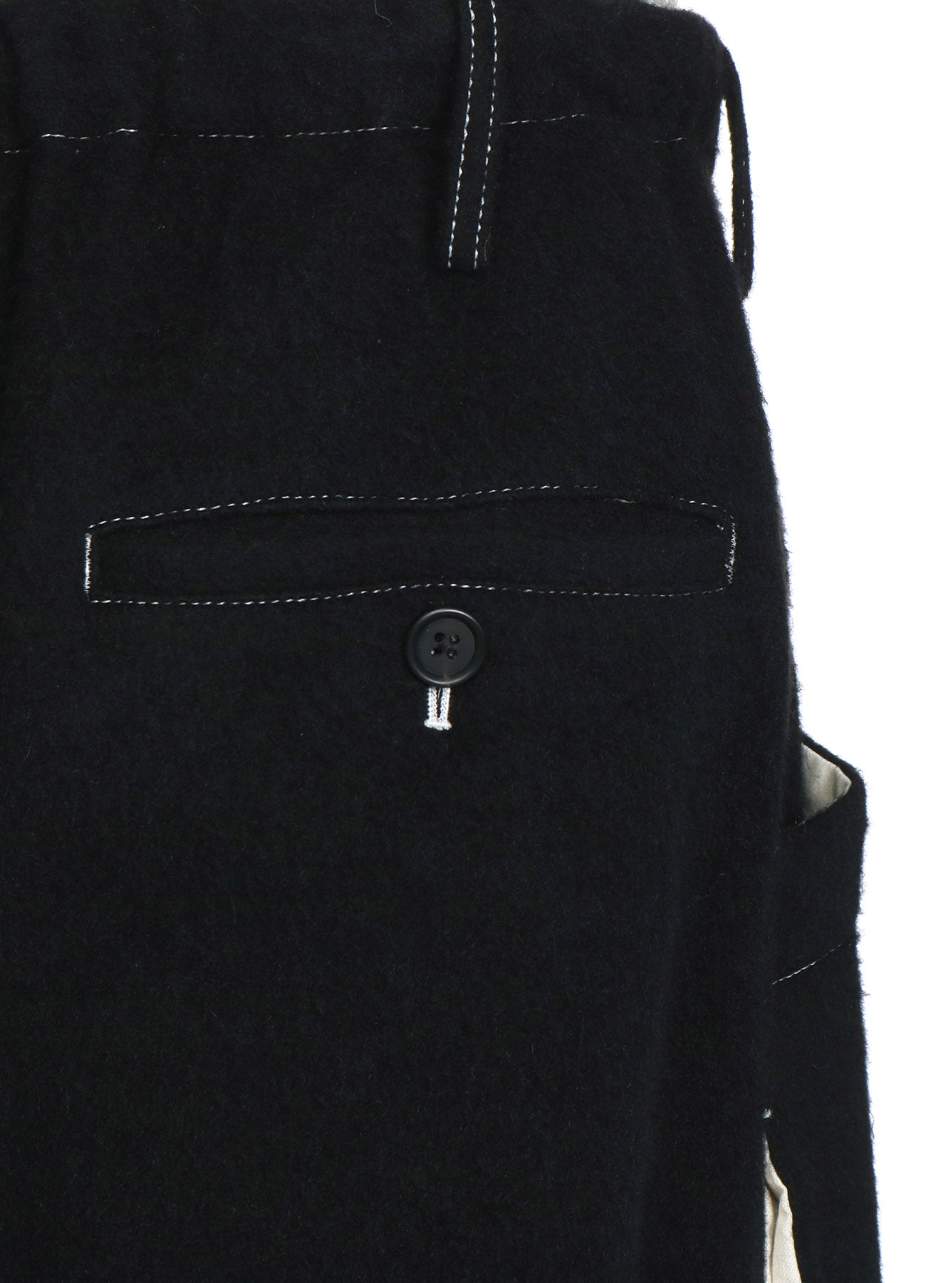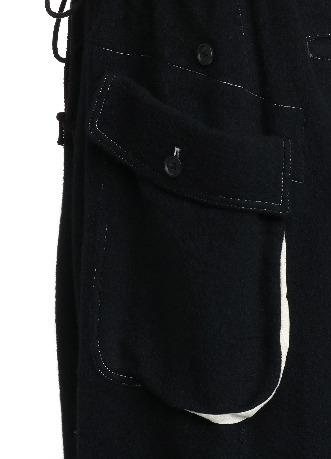 ECO WOOL BEAVER WHITE STITCH CARGO PANTS WITH ASYMMETRICAL POCKETS