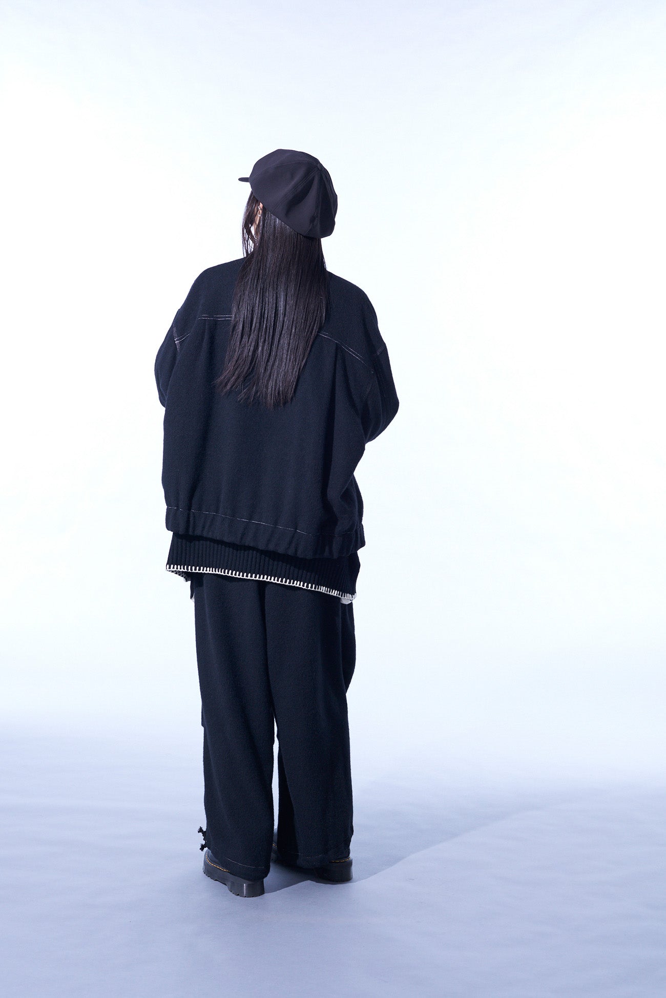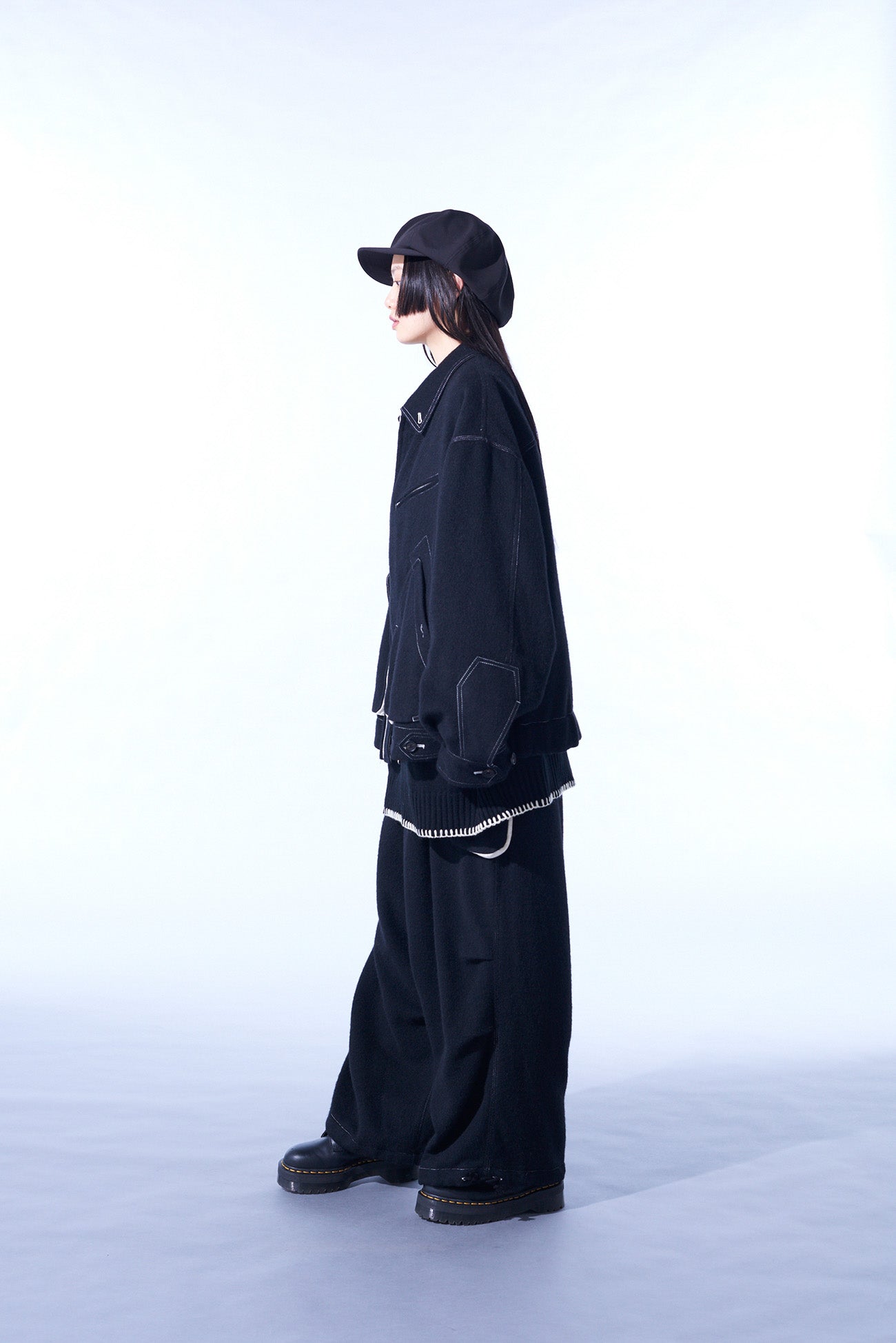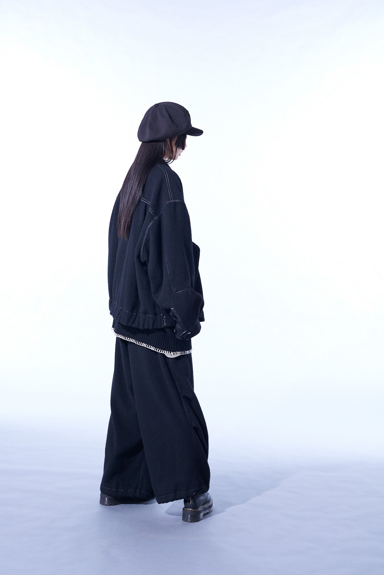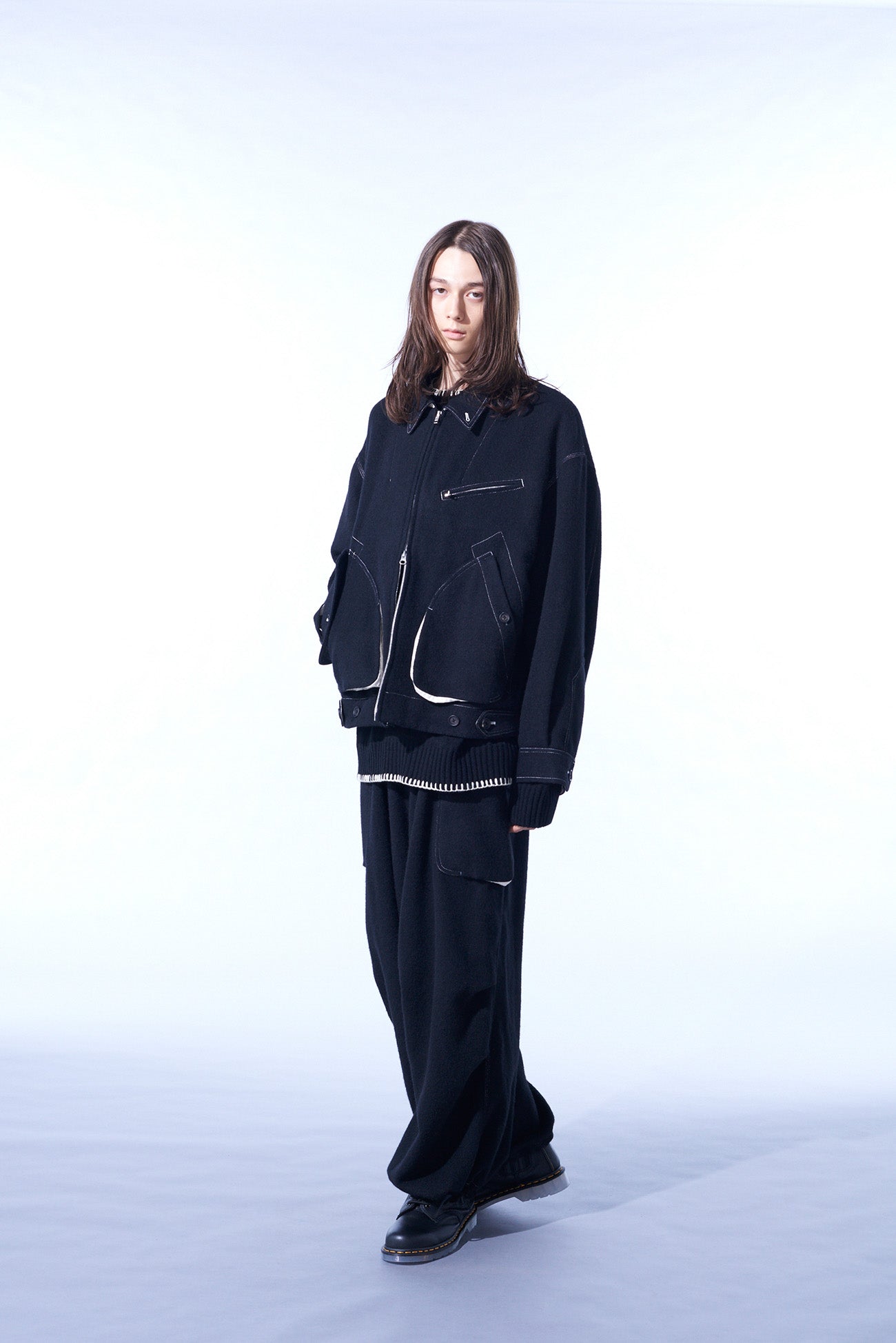 ECO WOOL BEAVER WHITE STITCH CARGO PANTS WITH ASYMMETRICAL POCKETS