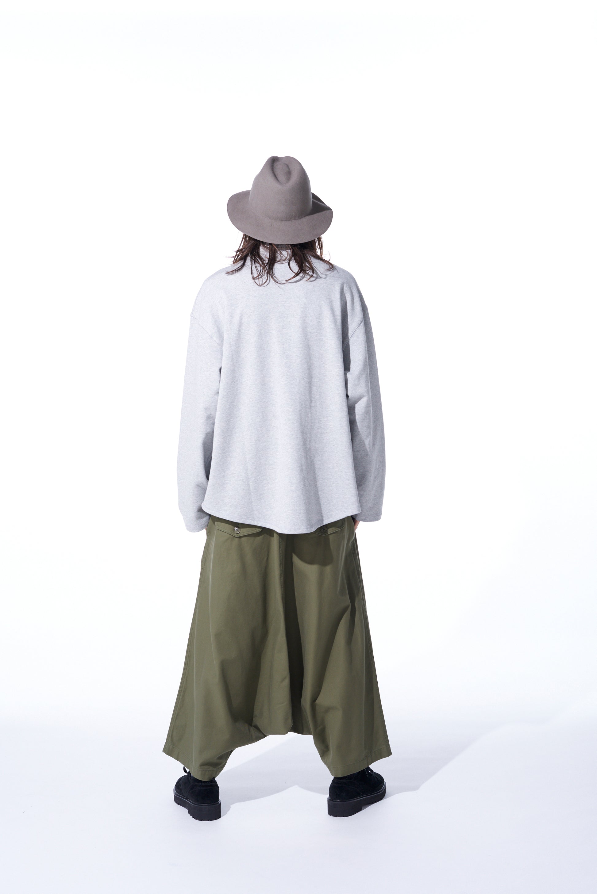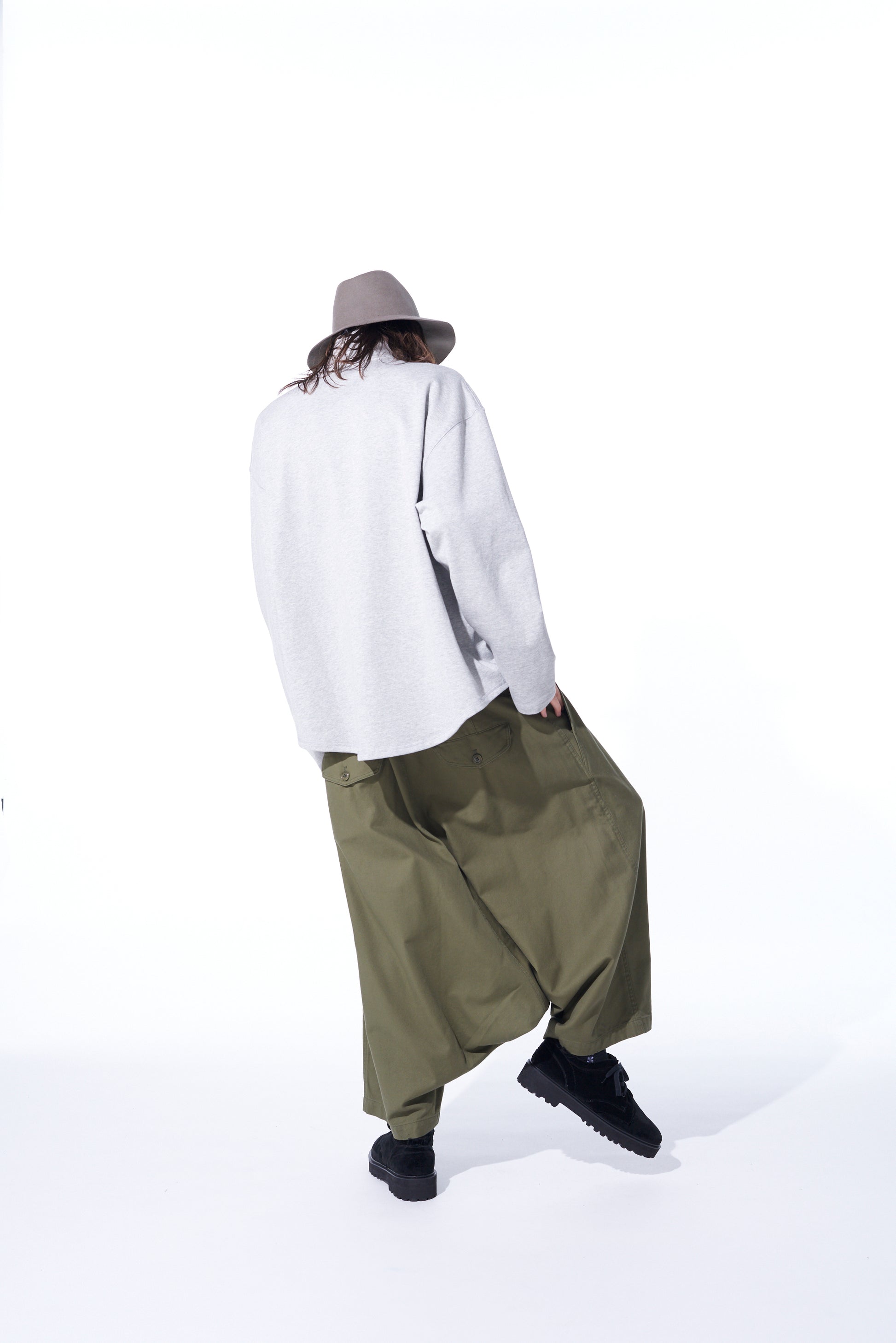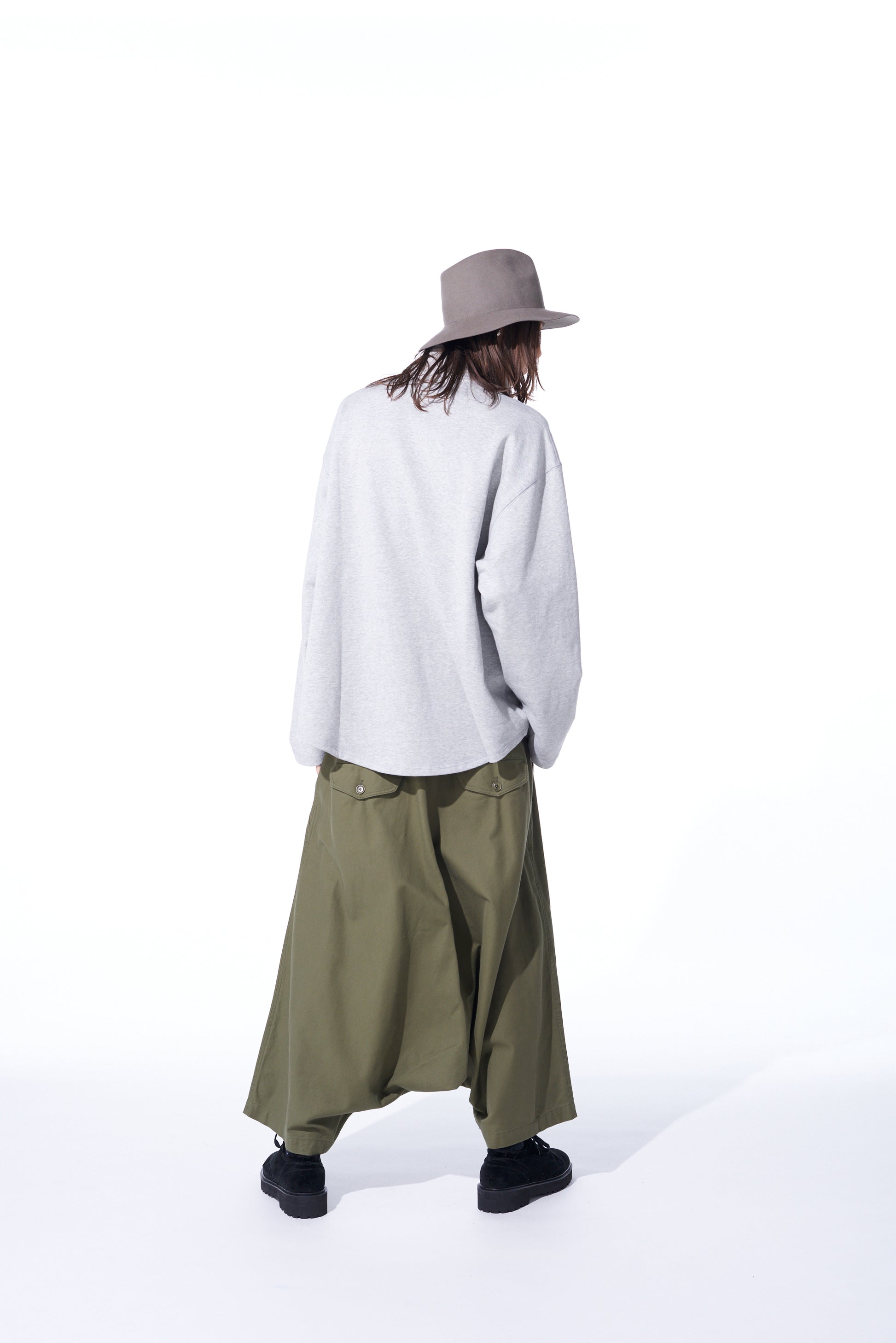 Questi pantaloni sarouel a vita alta spaziosi presentano dettagli con chiusura a bottoni frontale. Utilizzando un filato doppio per una texture e un lucido unici, il tessuto di cotone serge dall'aspetto vintage è flessibile e morbido. Con un'usura durevole, invecchia bene ed è perfetto per l'uso quotidiano. I dettagli in vita risaltano quando sono infilati, e si abbinano bene a top oversize.
