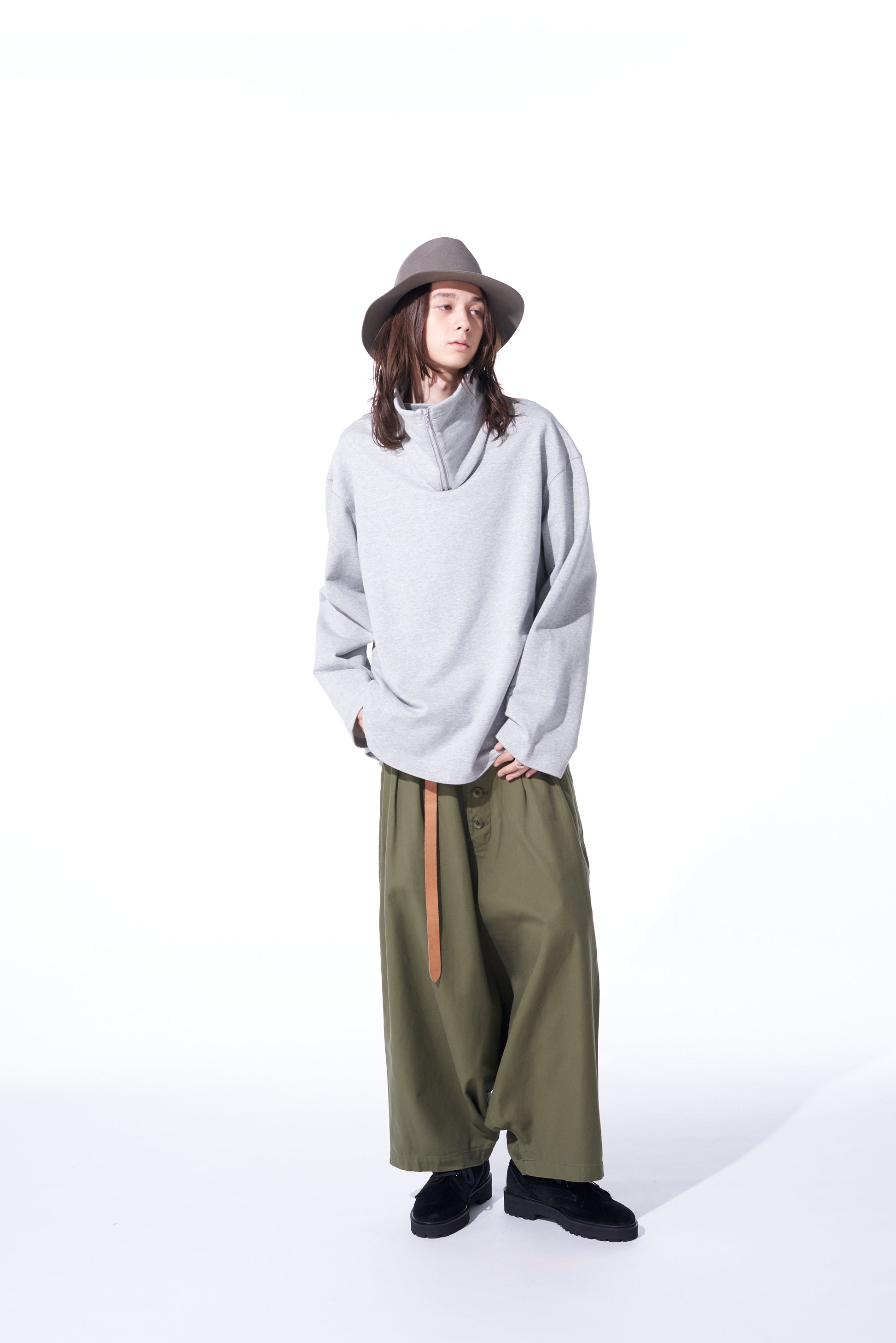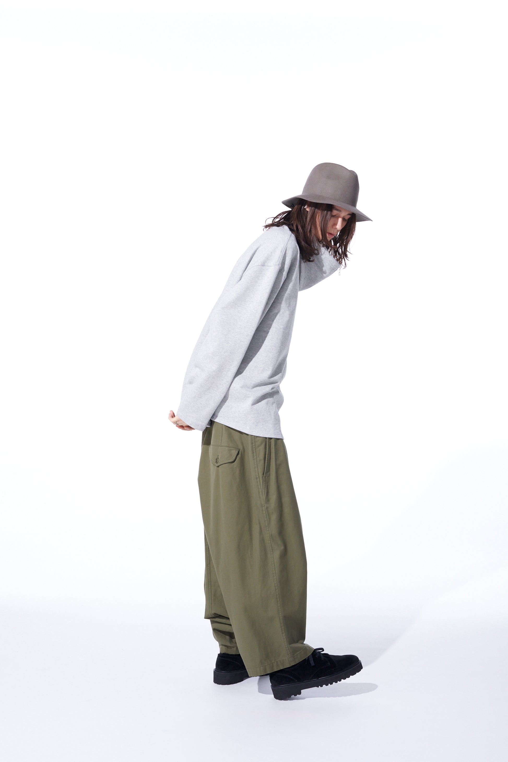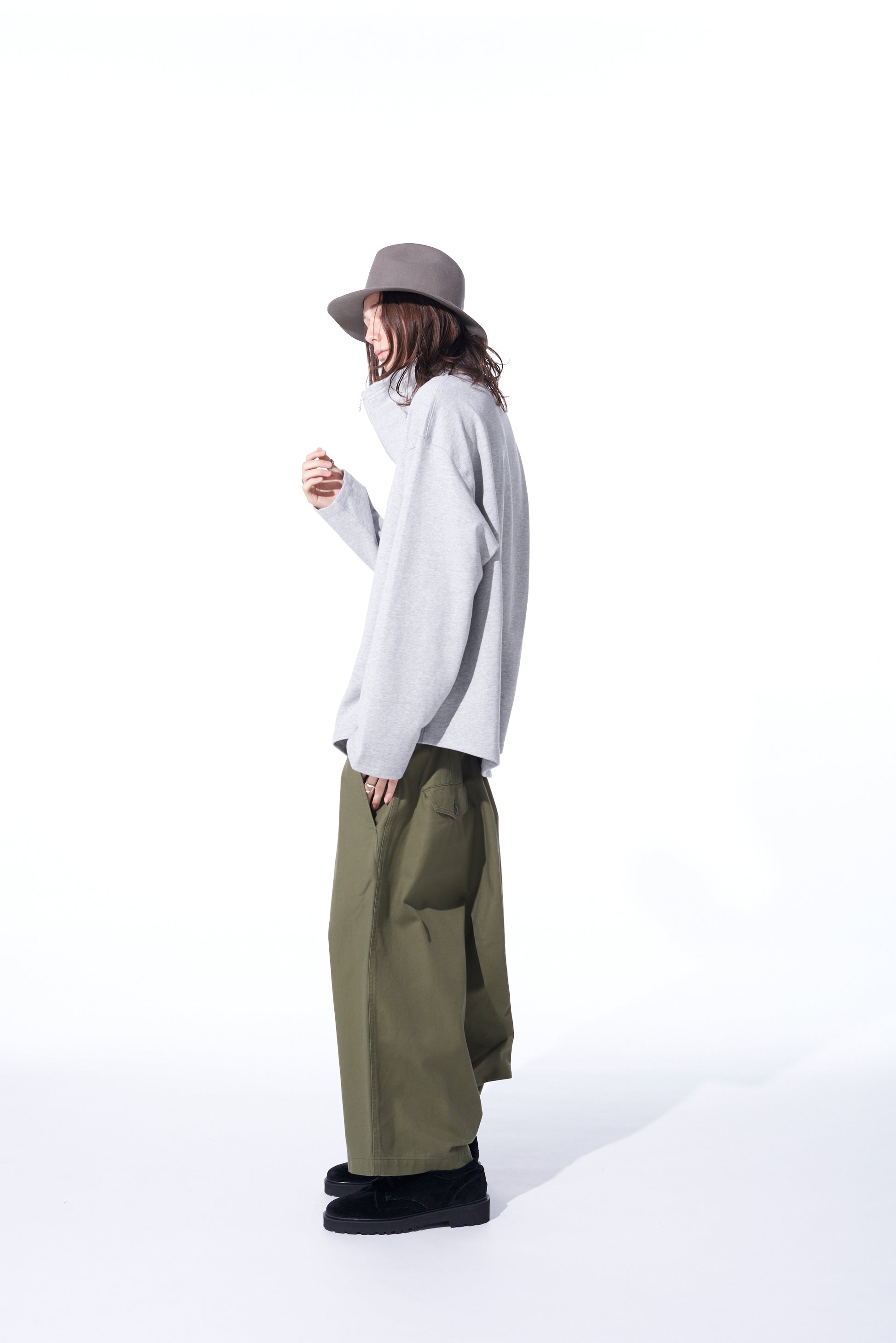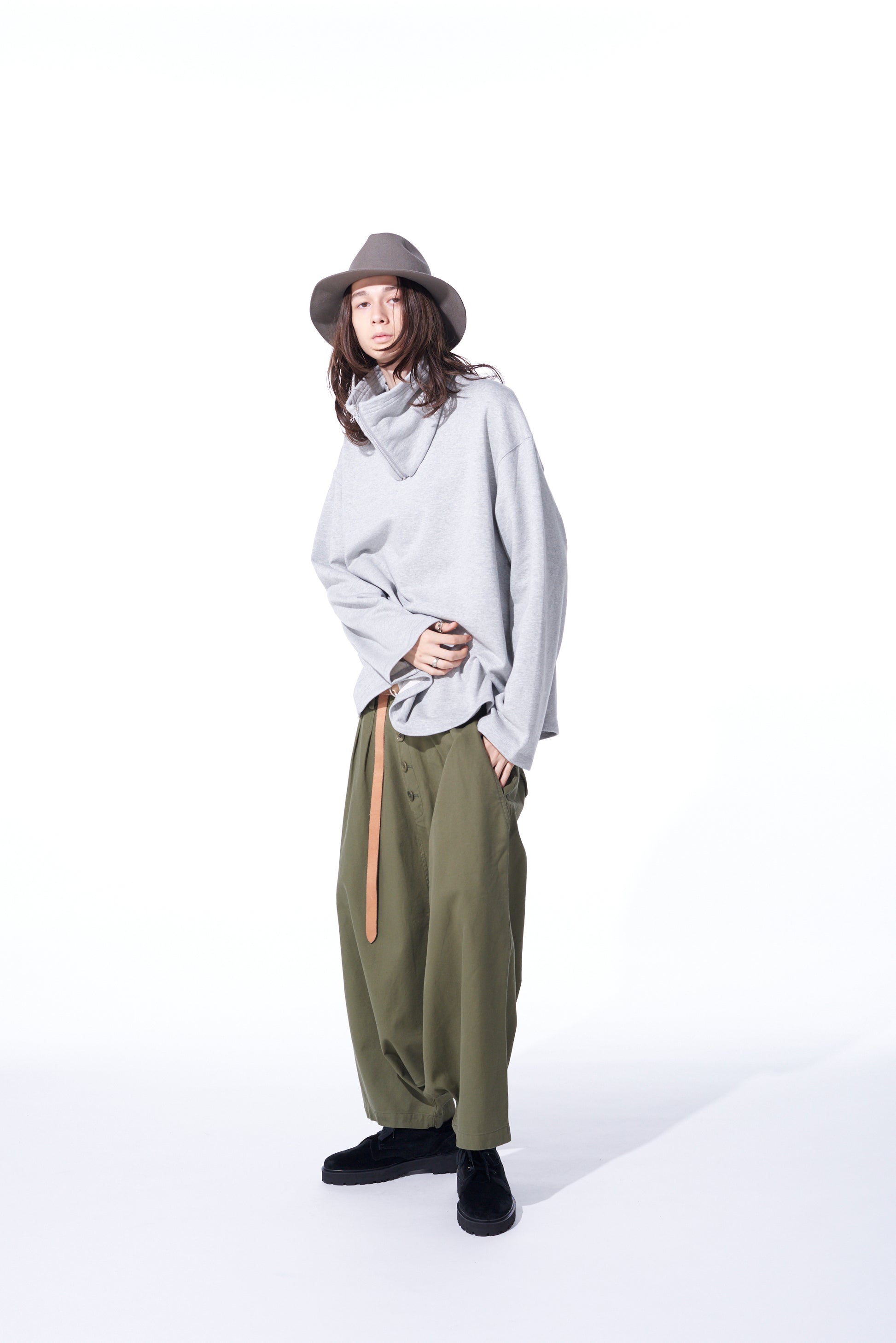 Questi pantaloni sarouel a vita alta spaziosi presentano dettagli con chiusura a bottoni frontale. Utilizzando un filato doppio per una texture e un lucido unici, il tessuto di cotone serge dall'aspetto vintage è flessibile e morbido. Con un'usura durevole, invecchia bene ed è perfetto per l'uso quotidiano. I dettagli in vita risaltano quando sono infilati, e si abbinano bene a top oversize.