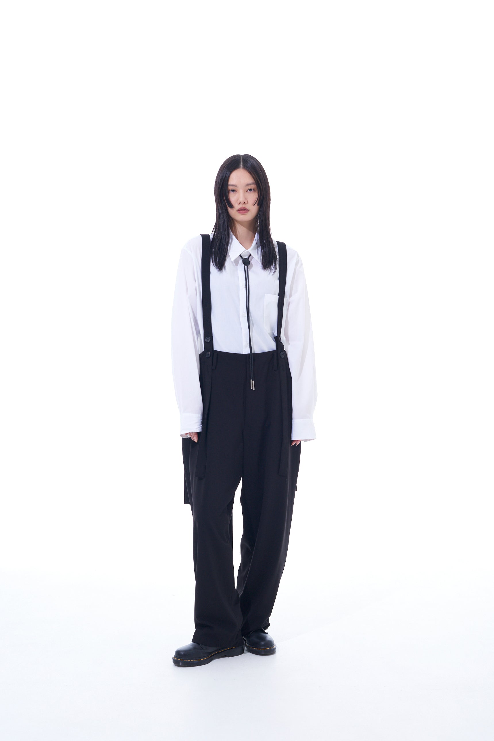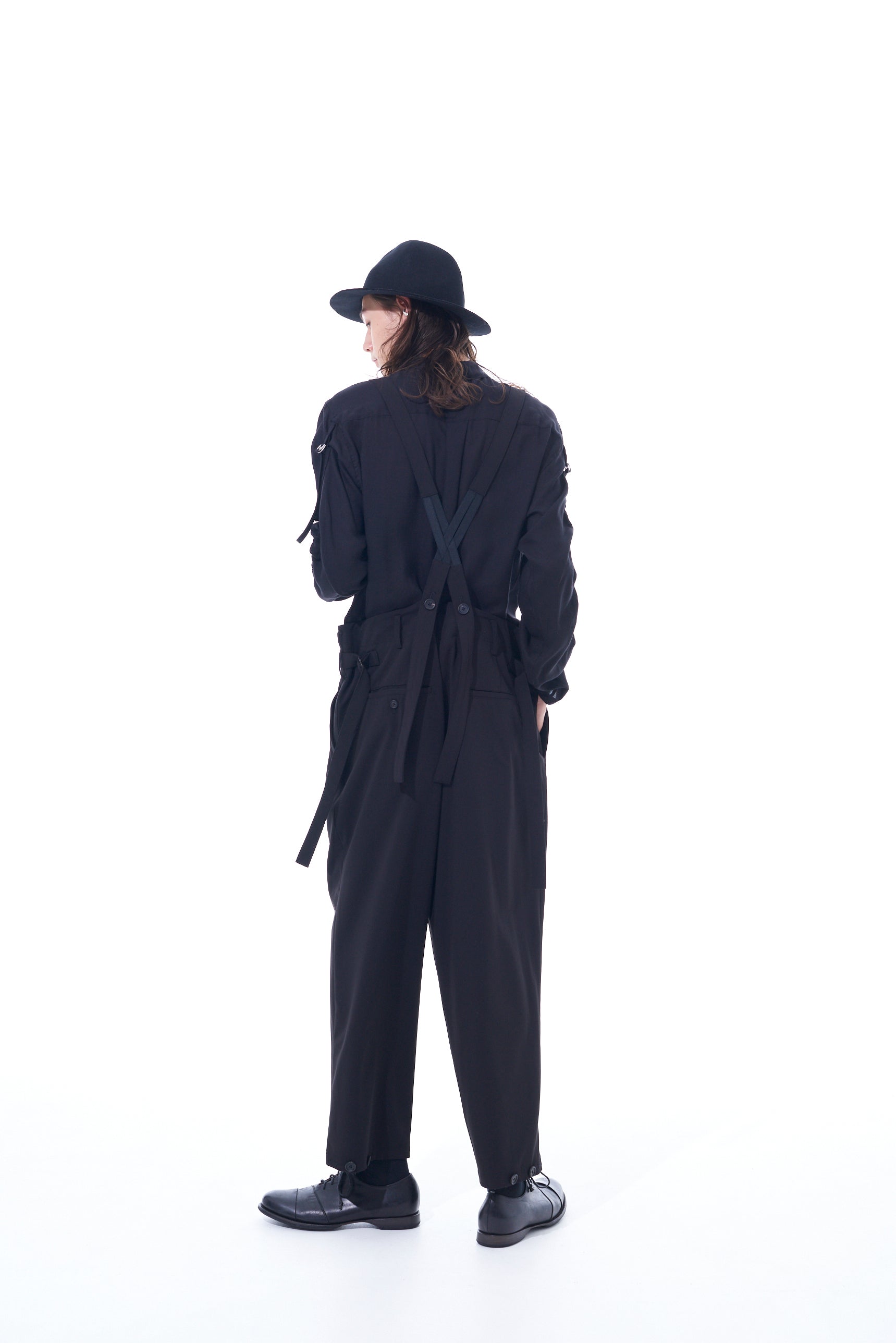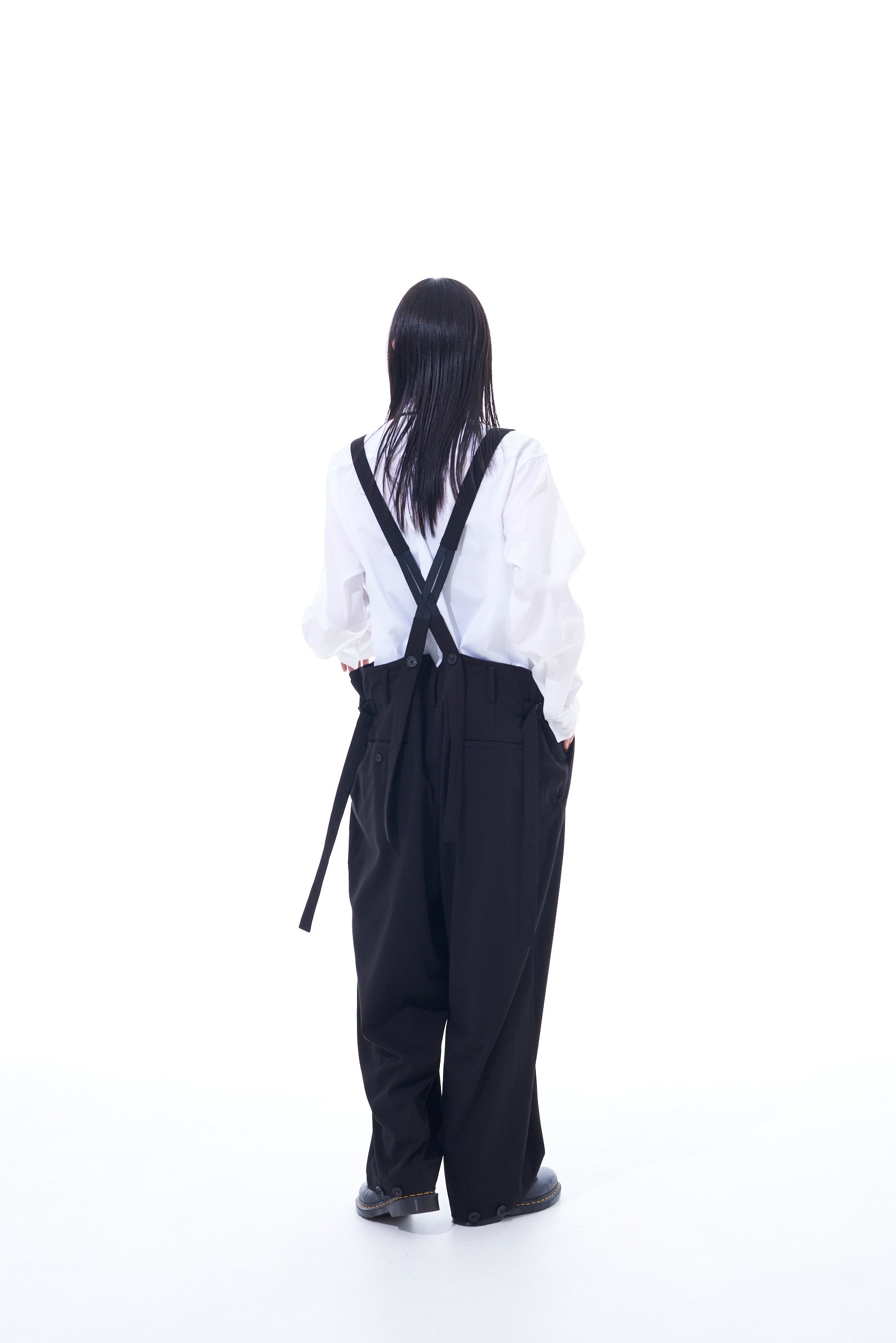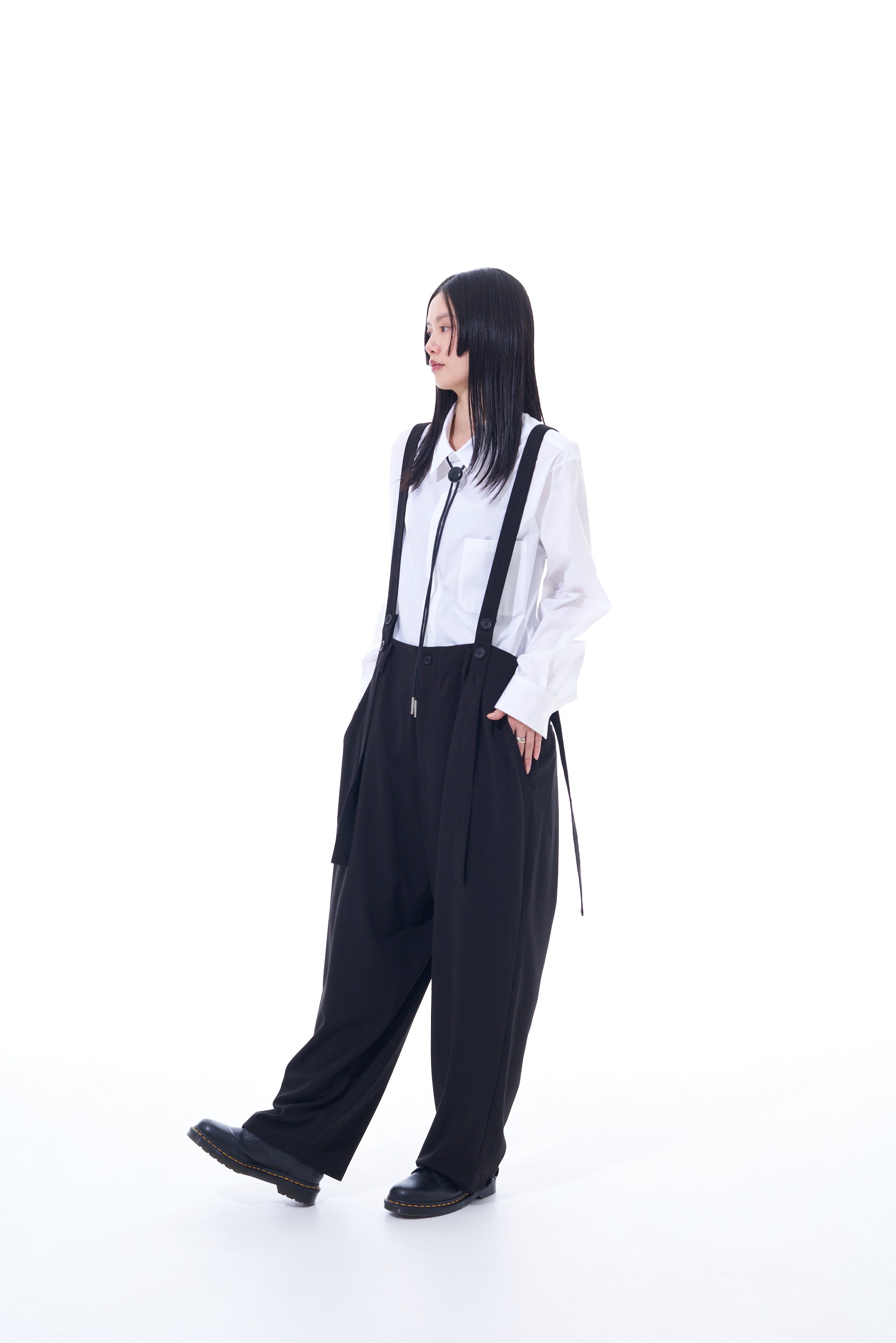 PE/RAYON GABARDINE STRETCH SUSPENDER PANTS WITH HEM BUTTON DETAIL