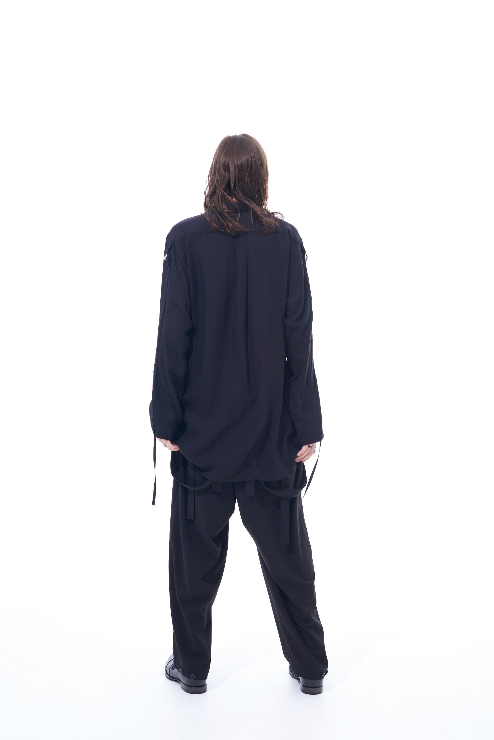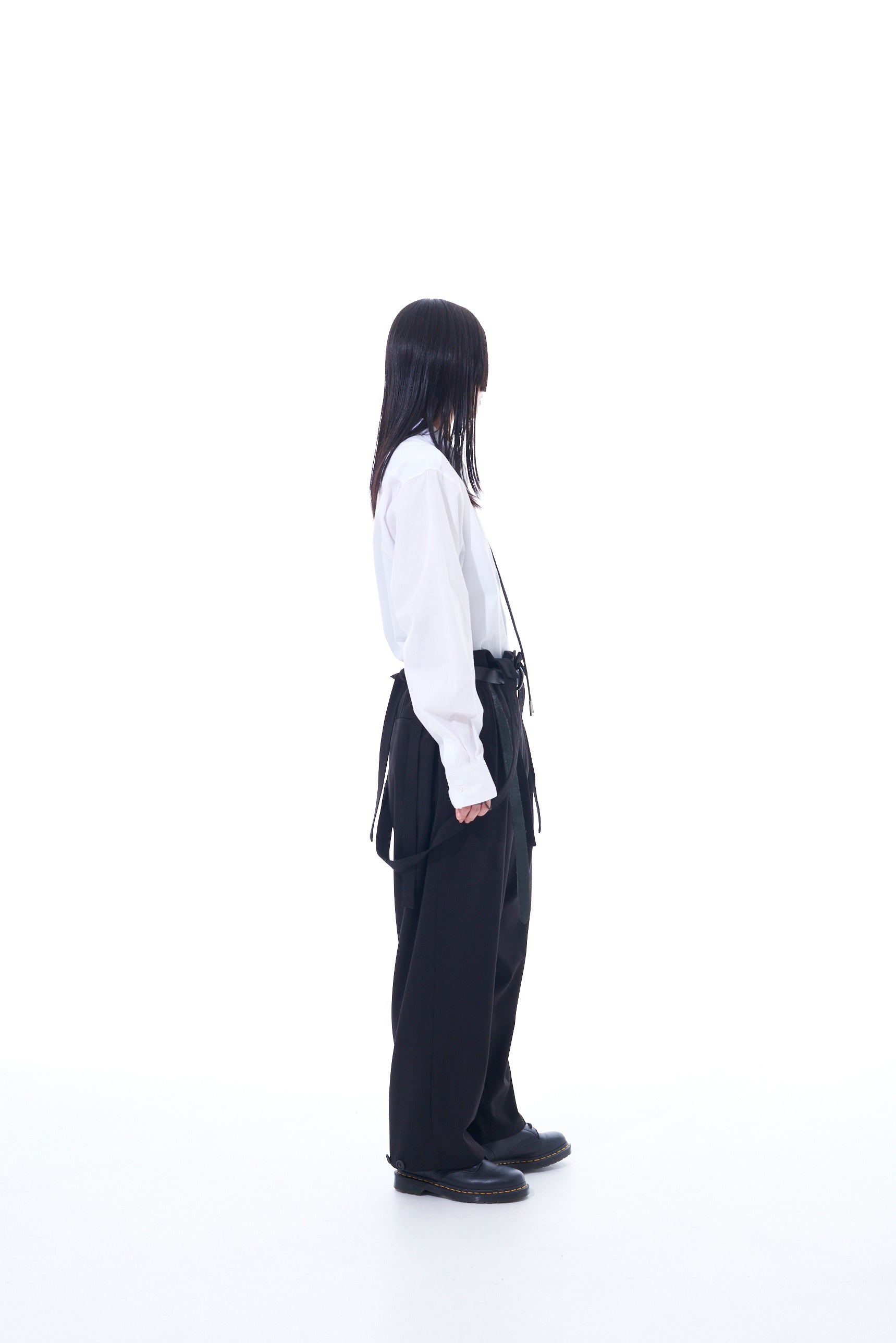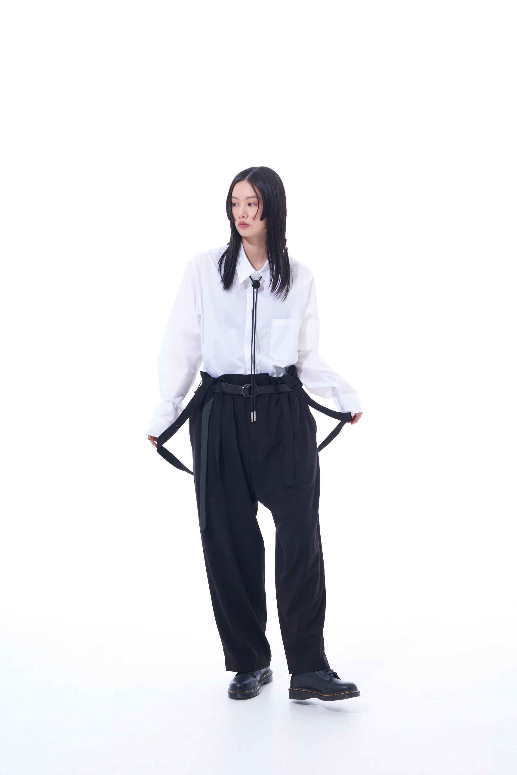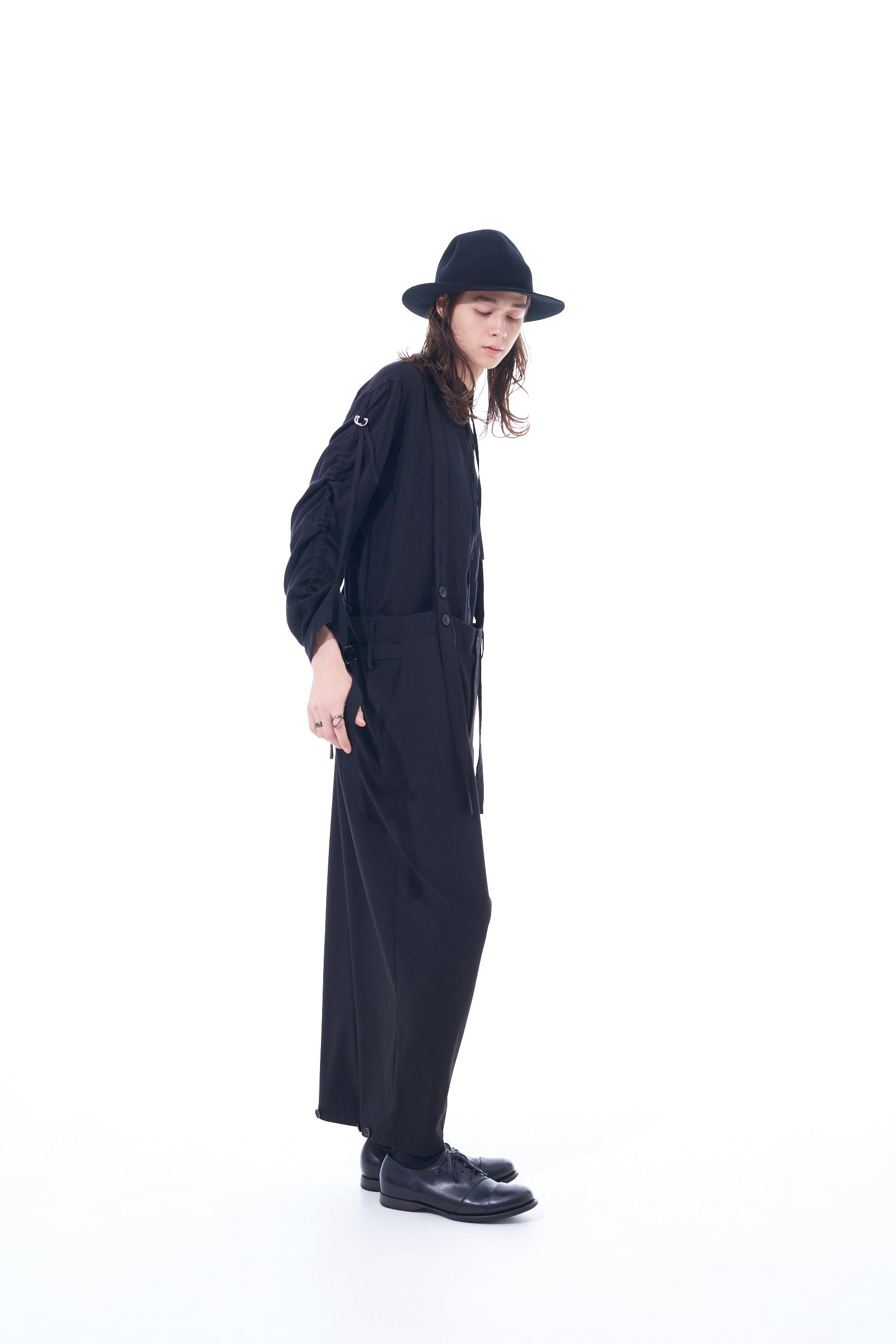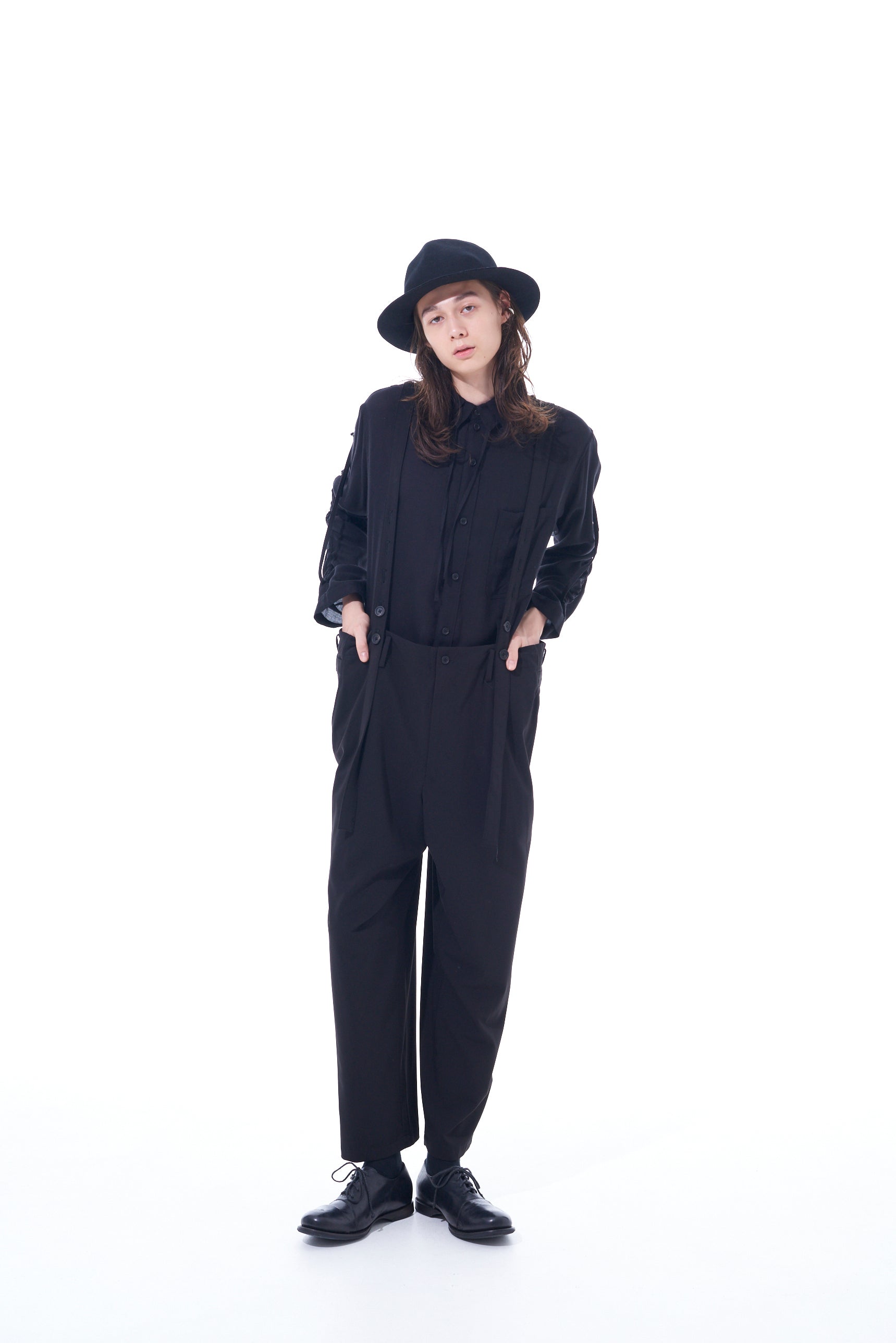 PE/RAYON GABARDINE STRETCH SUSPENDER PANTS WITH HEM BUTTON DETAIL