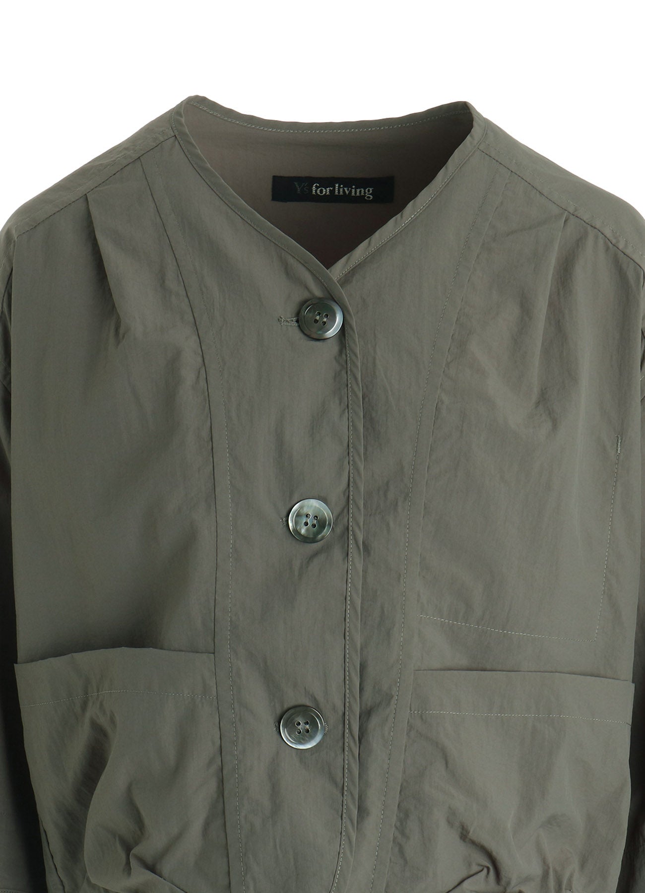 This short jacket features a slightly rounded silhouette, adjustable with a drawstring hem. Made from a lightweight, soft nylon fabric with a washer finish, it offers a comfortable and smooth texture. Perfect for versatile style adjustments, it ensures a light and breezy wear experience.