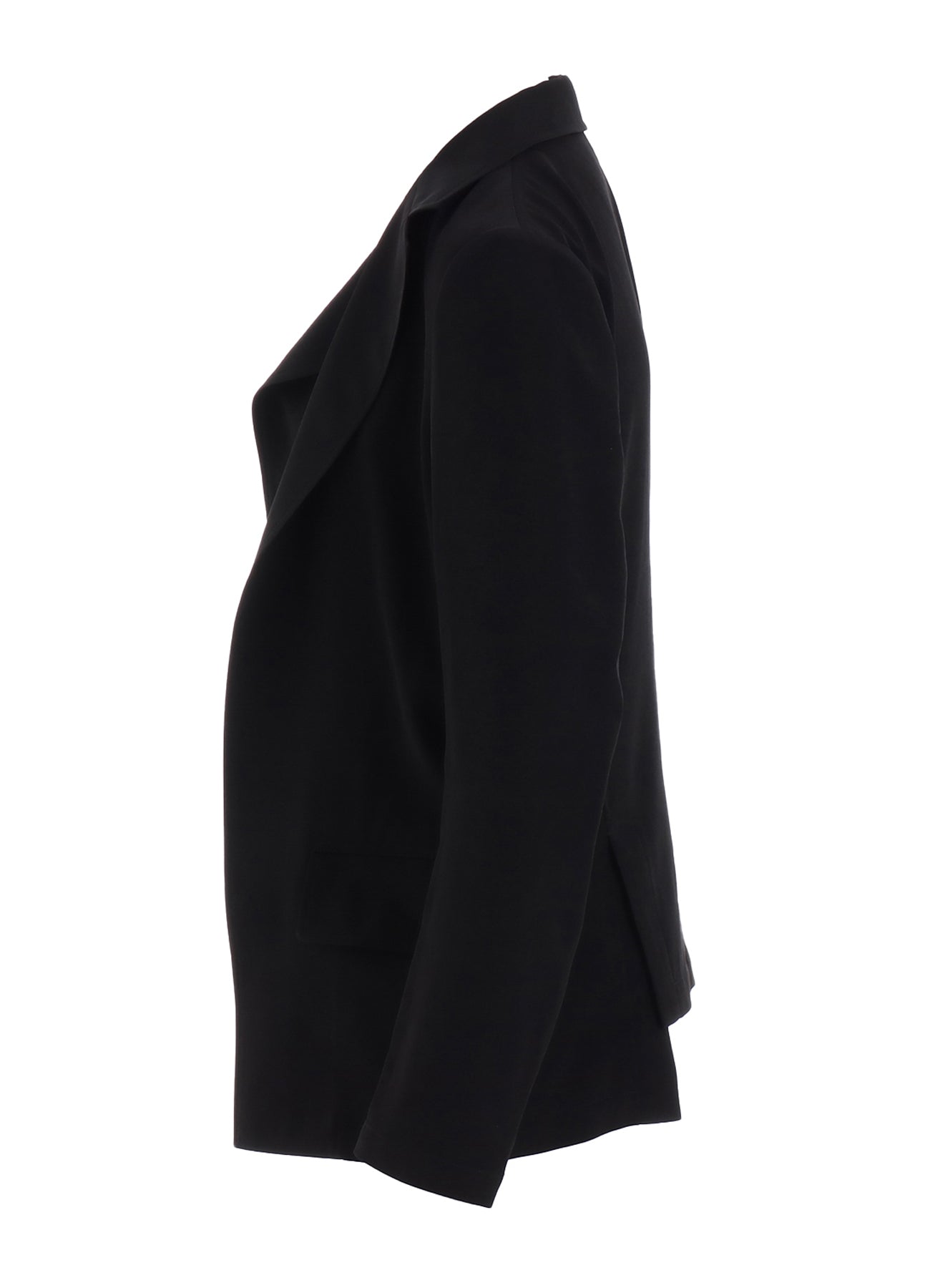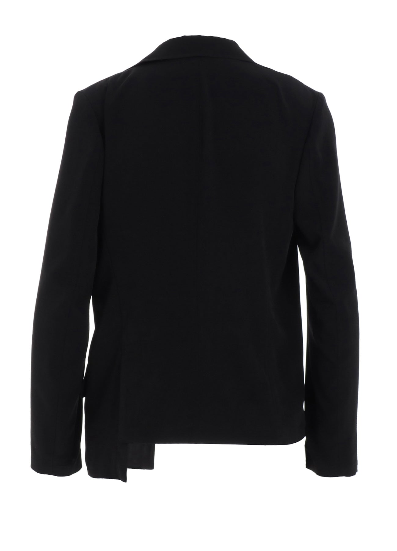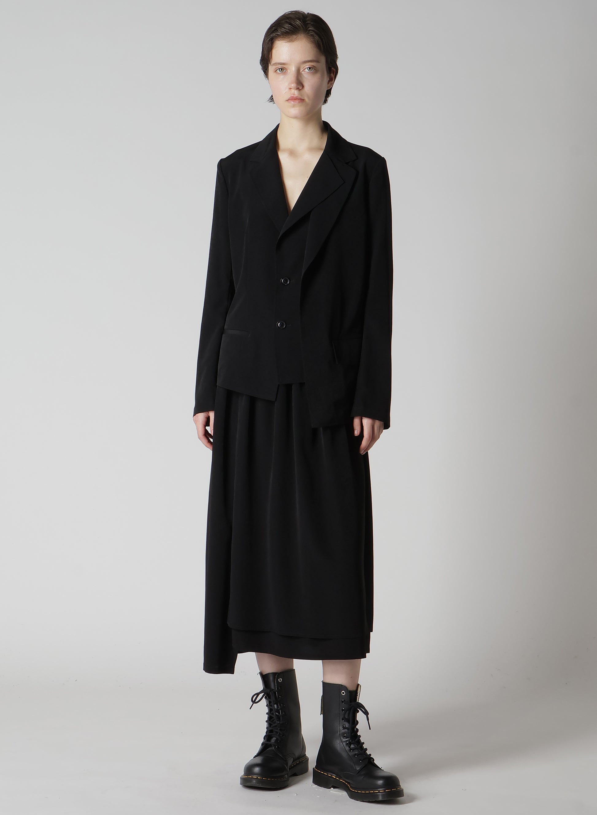 Giacca elegante a strati realizzata in *triacetato/poliestere crepe de Chine*, materiale caratteristico noto per la sua morbida lucentezza e resistenza alle pieghe. Il design asimmetrico con doppio strato sul fronte sinistro combina perfezione classica e dettagli unici di Y's.... per tutte le stagioni.