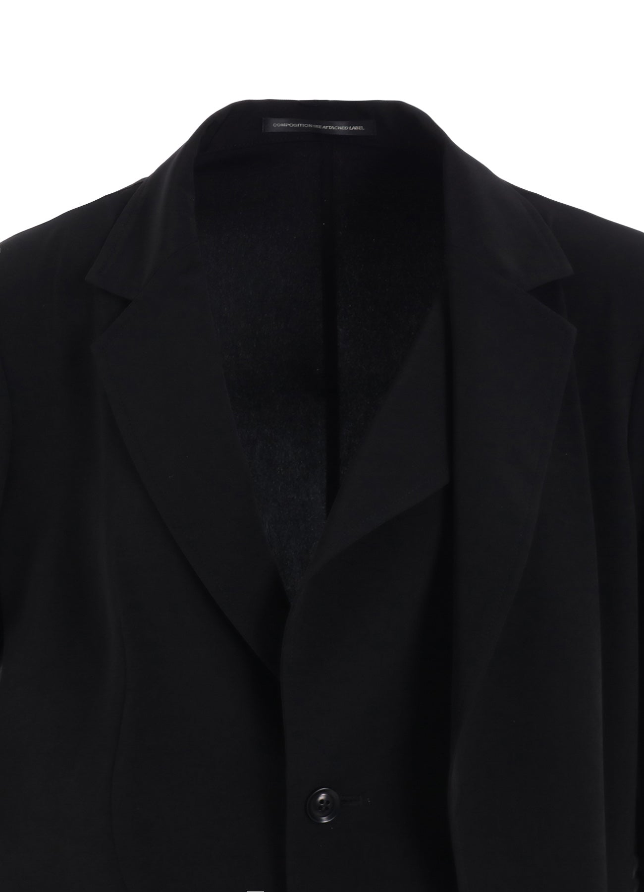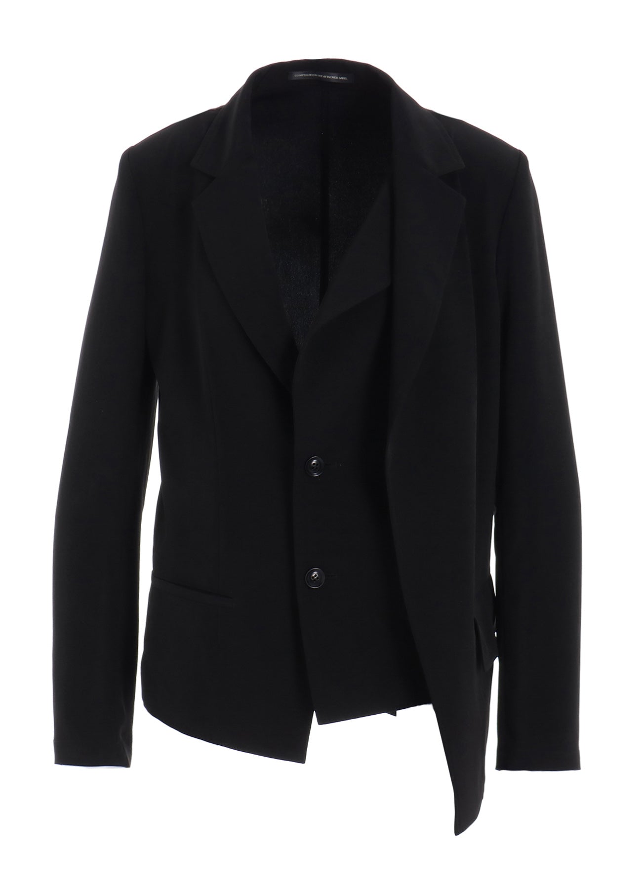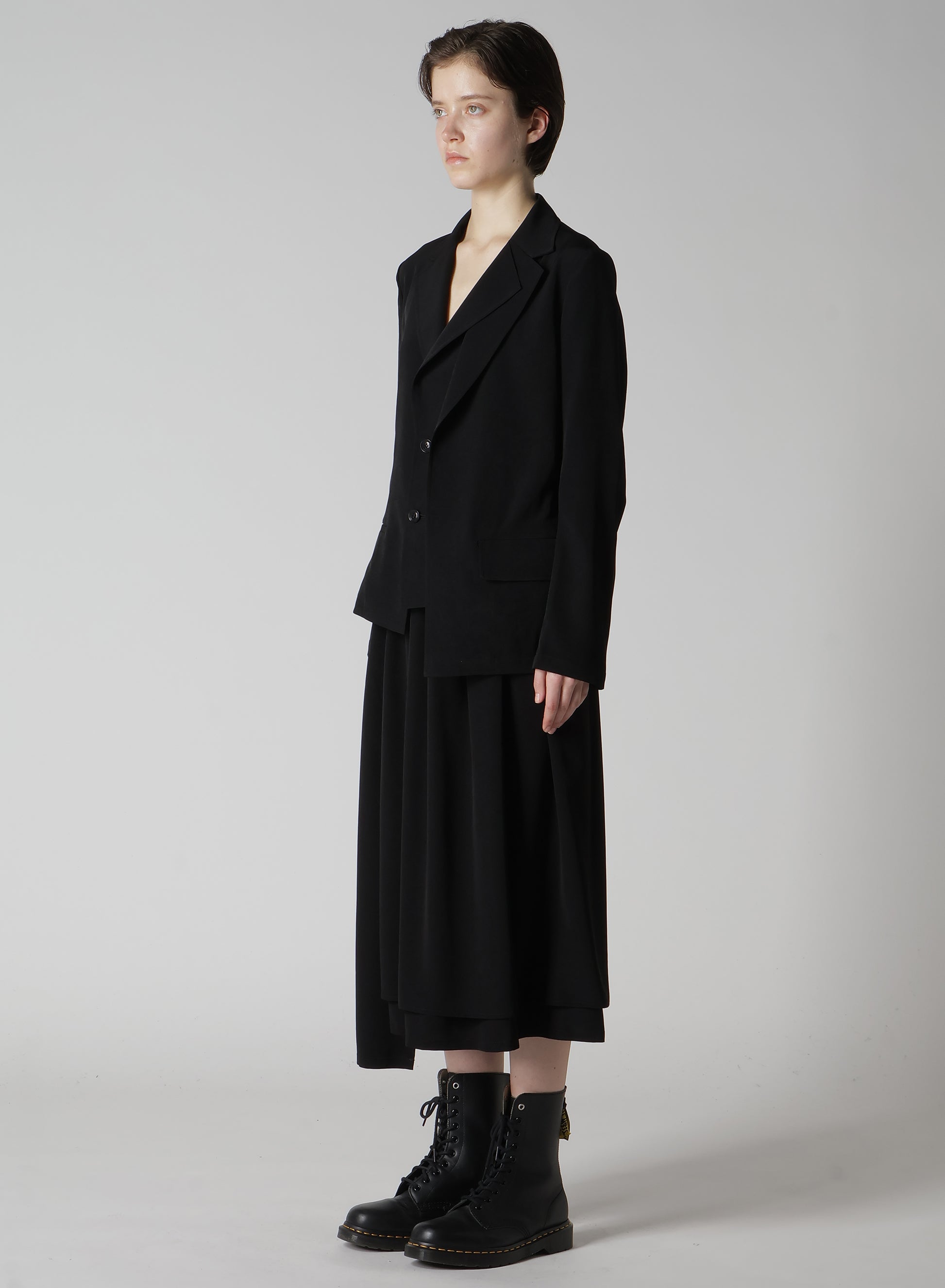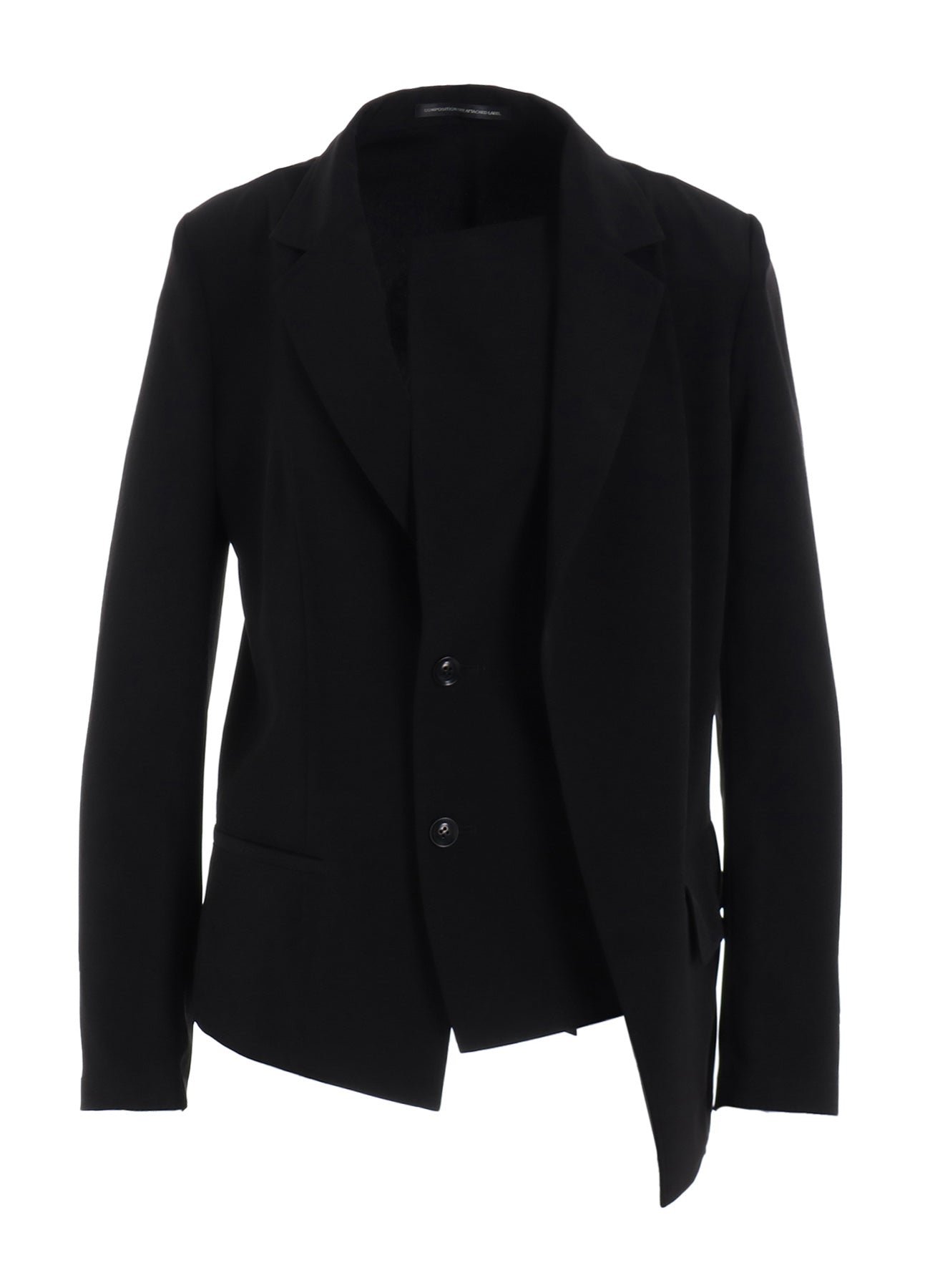 Giacca elegante a strati realizzata in *triacetato/poliestere crepe de Chine*, materiale caratteristico noto per la sua morbida lucentezza e resistenza alle pieghe. Il design asimmetrico con doppio strato sul fronte sinistro combina perfezione classica e dettagli unici di Y's.... per tutte le stagioni.