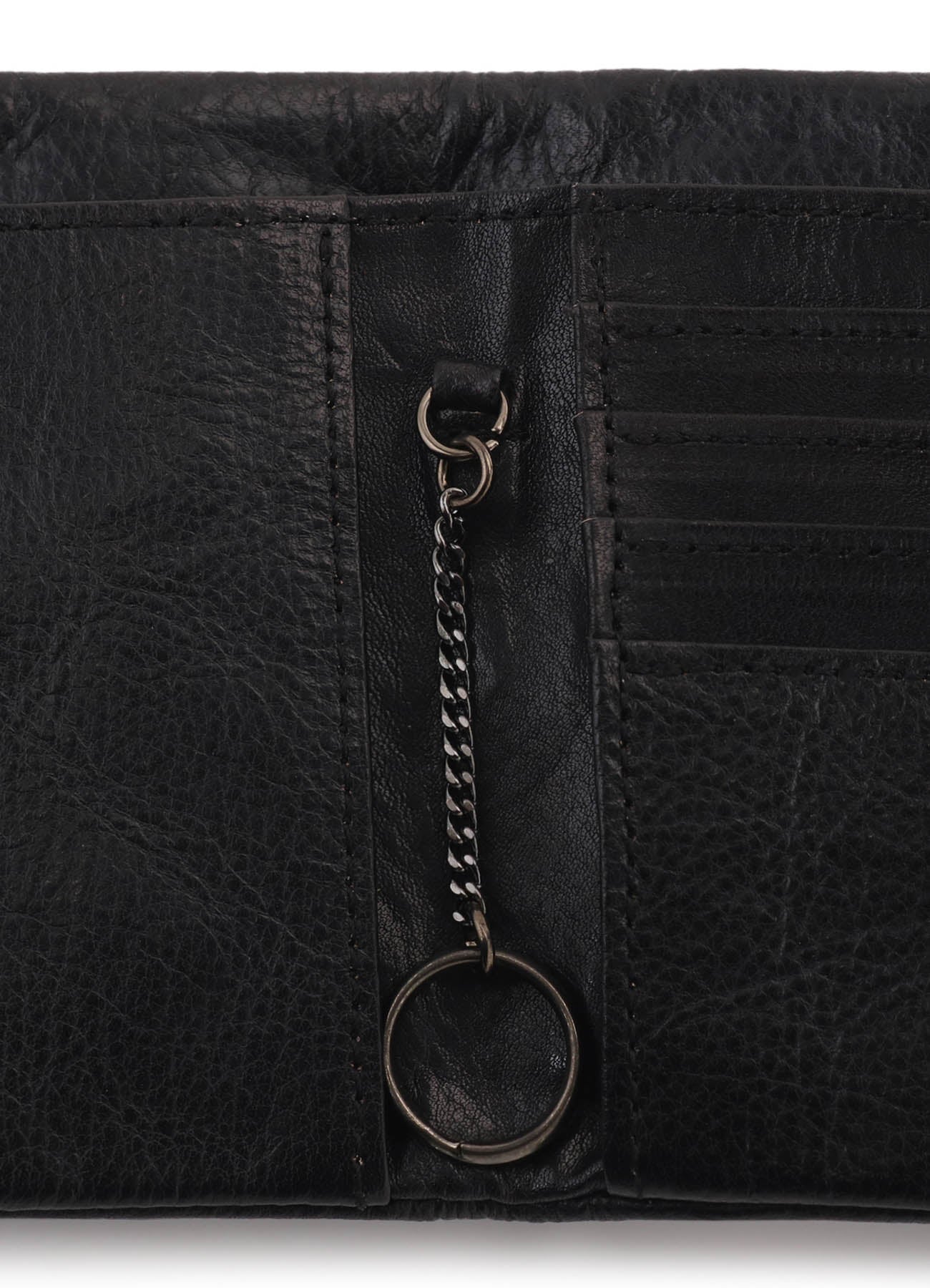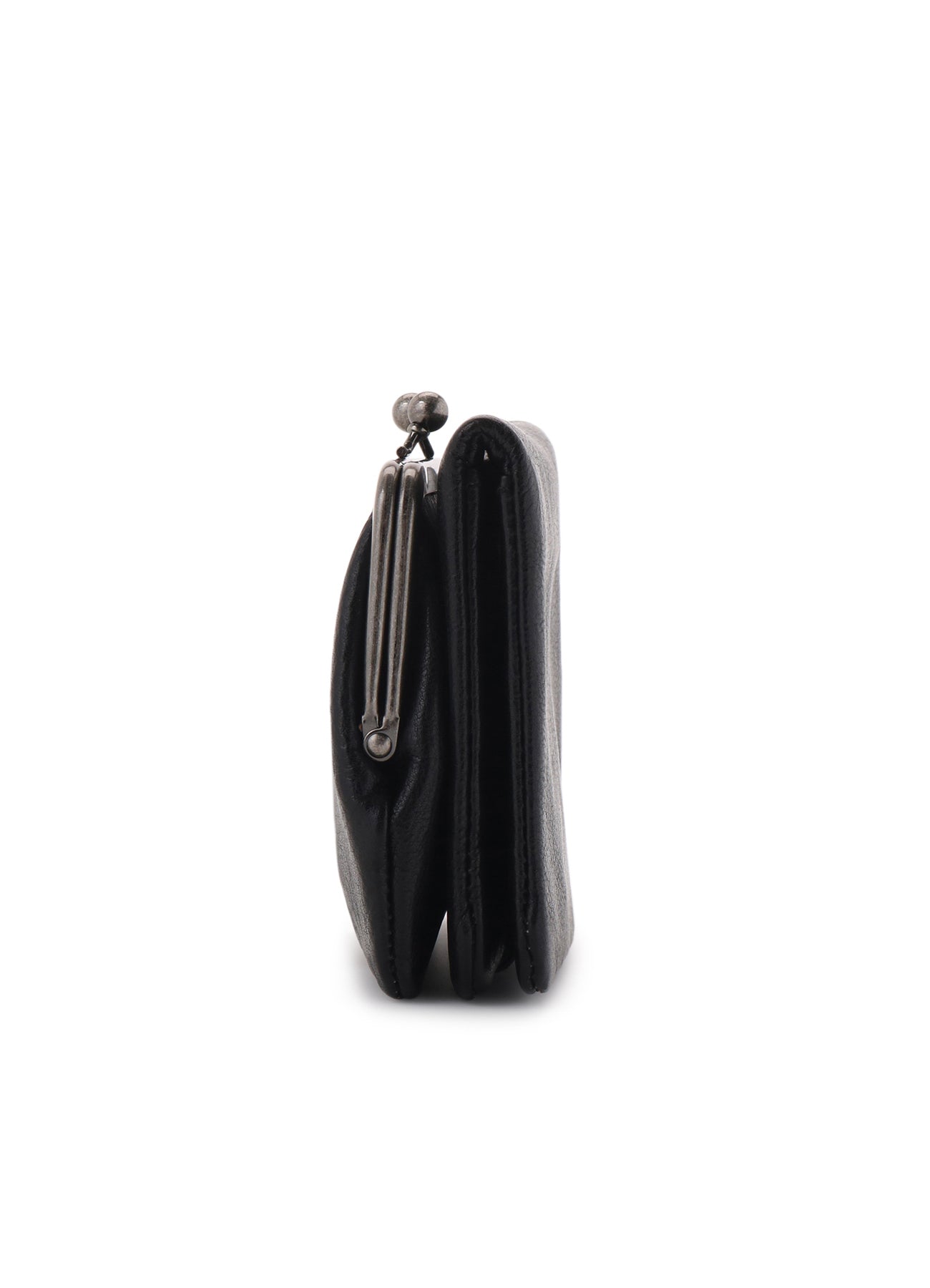 This clasp wallet is crafted from soft leather infused with oil. Finished with a "hill dyeing" technique that colors only the leather's surface, it develops a unique vintage feel with use. A keychain is included inside. Some color fading may occur due to leather's properties; exercise caution when pairing with light clothing.