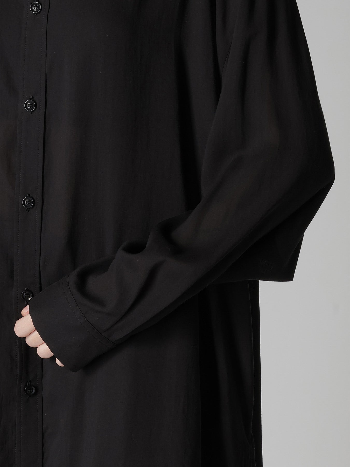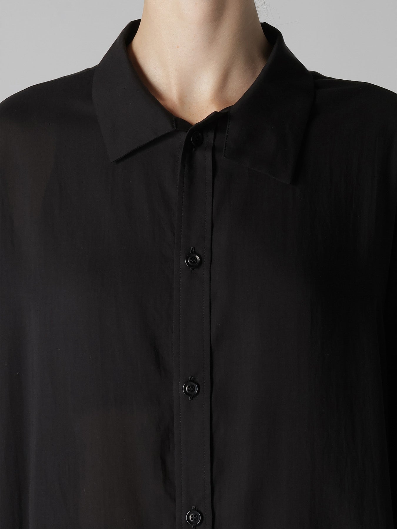 This blouse features exquisite drapery with Cellulose-lawn fabric and an oversized silhouette. Designed asymmetrically with one side longer, it offers a unique and stylish look. Ideal for a chic, modern outfit with a touch of elegance and sophistication.