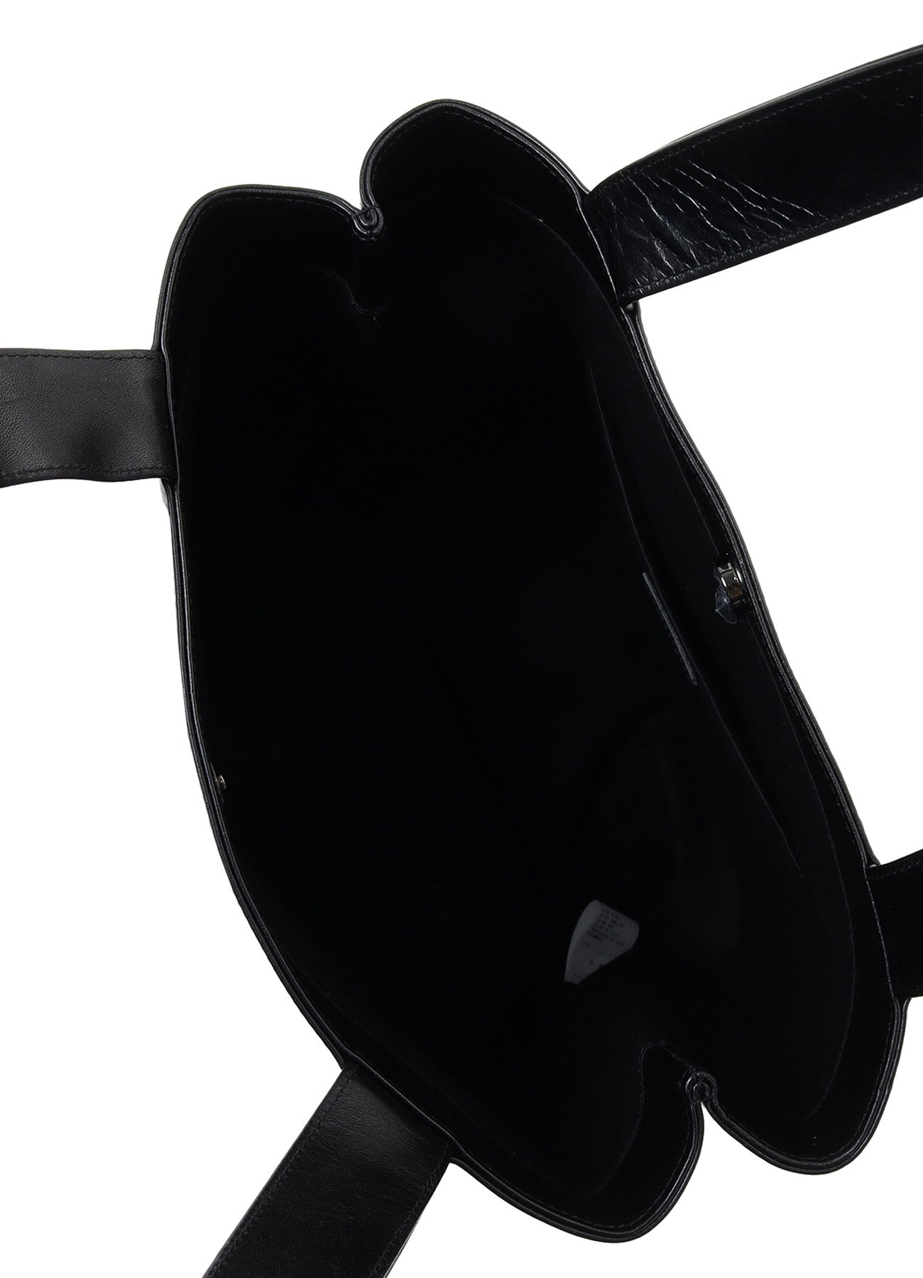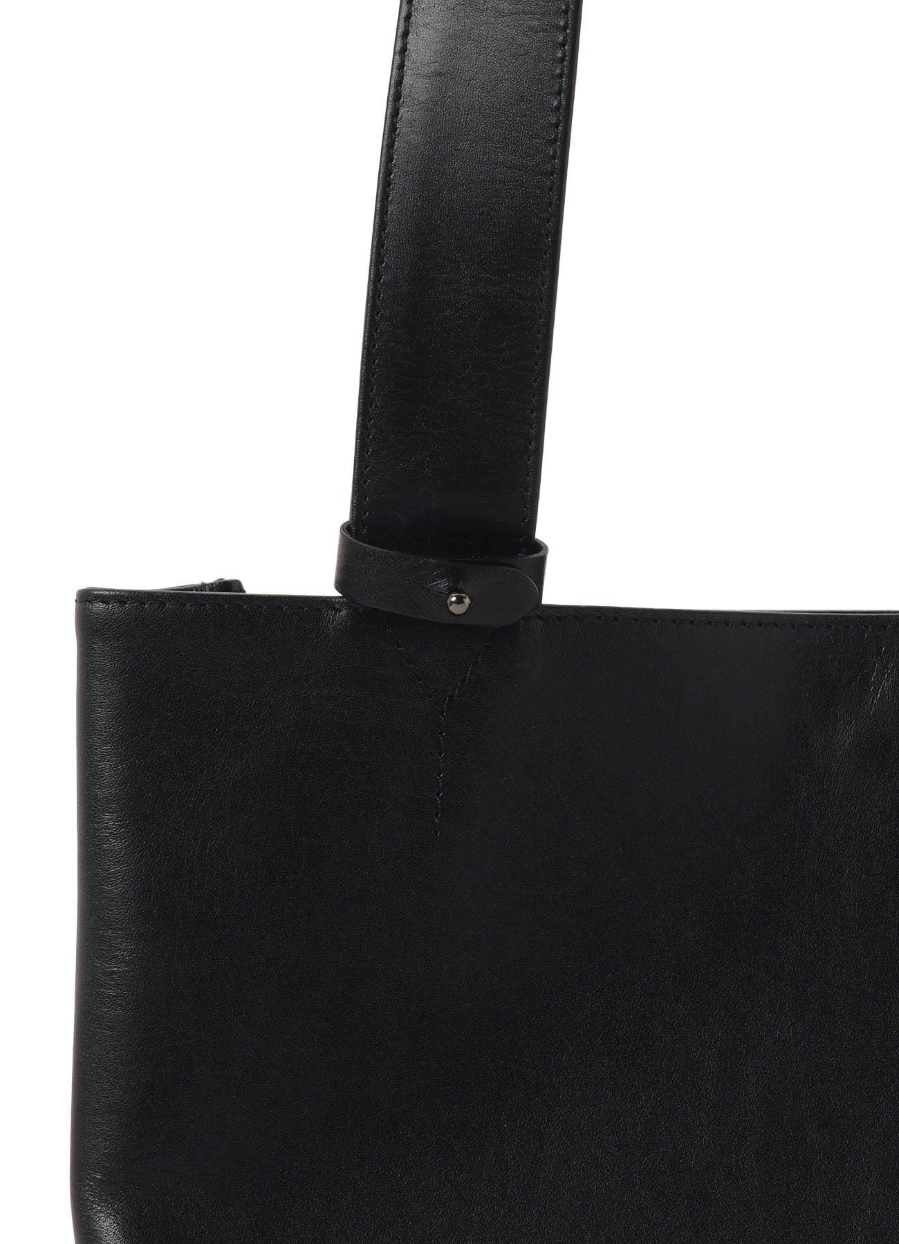 A unique tote bag with an arched leather base, this drawstring design showcases elegant textured leather with a subtly oily feel. Carefully designed handles allow for easy shoulder carrying. Note that some color transfer may occur due to perspiration or friction; exercise caution when pairing with light-colored clothing.